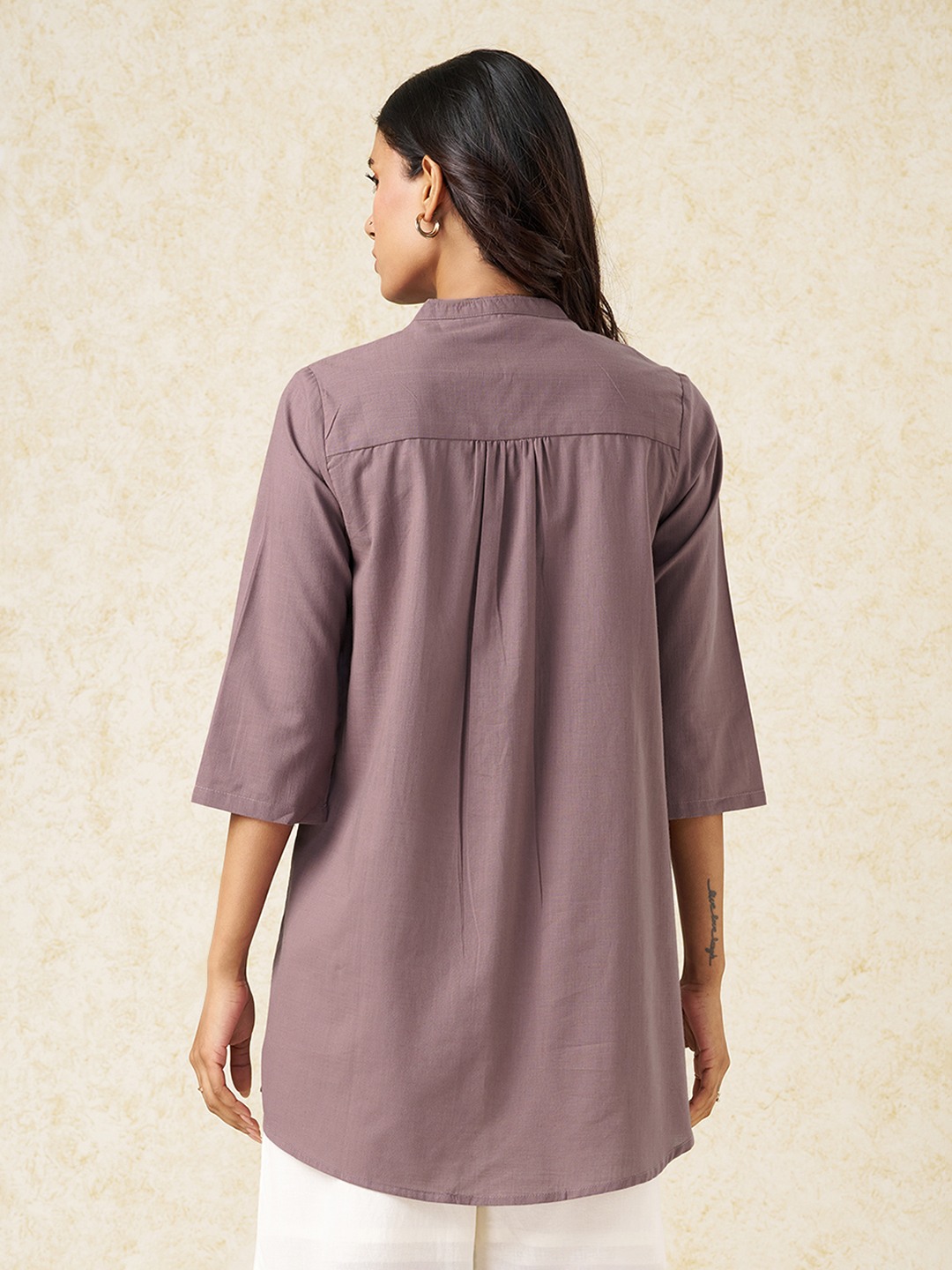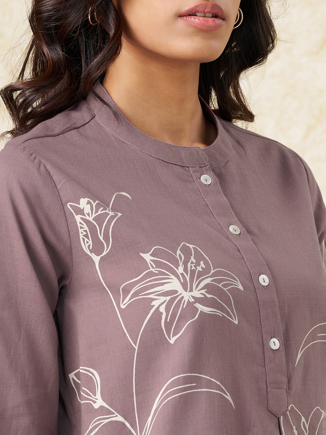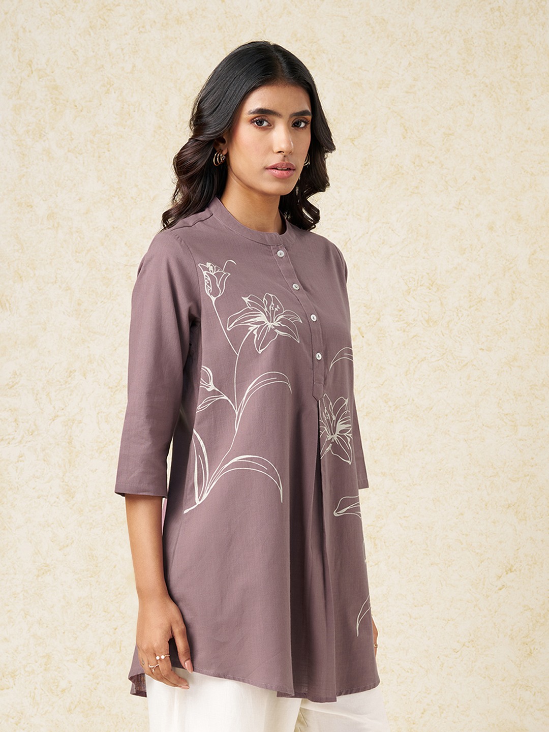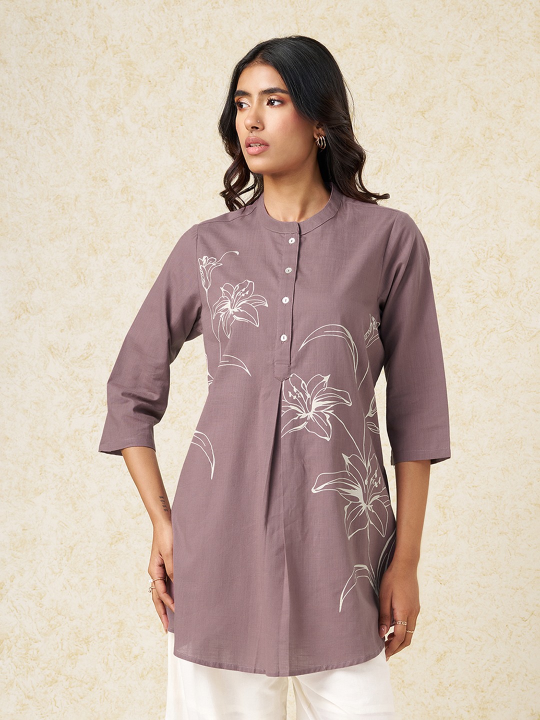 Amplify your festive mood by wearing this tunic. It has a mandarin collar with a button placket, 3/4 sleeves and floral placement print. Crafted from premium fabric for improved comfort and enhanced breathability.