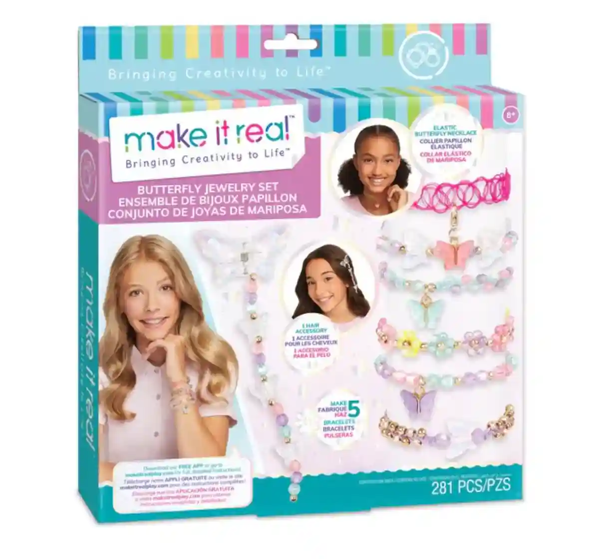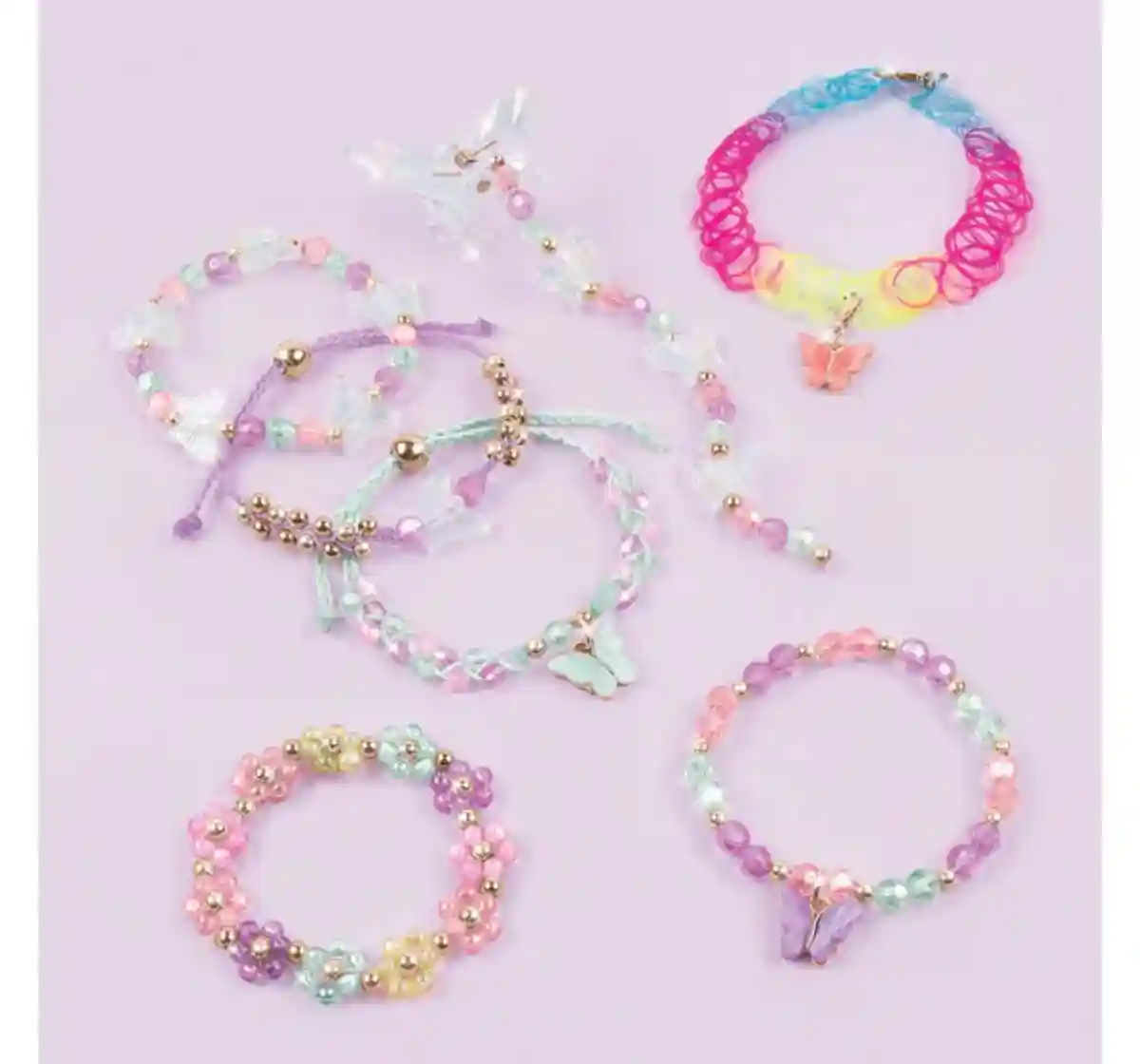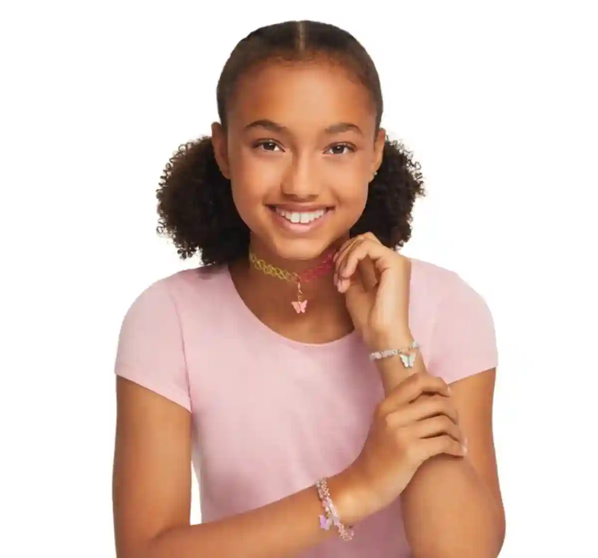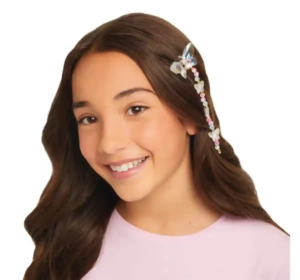 Feel super fly with this butterfly jewellery kit! This DIY butterfly jewellery kit offers a fun and creative activity for tweens! Choose from an assortment of delightful beads and charms to make 5 bracelets and 1 trendy elastic fitted necklace, and a beaded hair clip. The beautiful butterfly hair clip will complete the look with a touch of fluttering flair! Perfect for any occasion, this jewelry kit offers a rewarding activity for tweens to enjoy with loved ones or solo. Comes with a PlayTray to organize beads, anchor bracelets, and hold smartphones for accessing digital instructions.