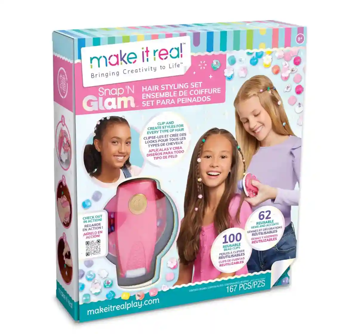 Make It Real DIY Toys Set - Snap n' Glam Hair Styling Set, Multicolor, 8Y+