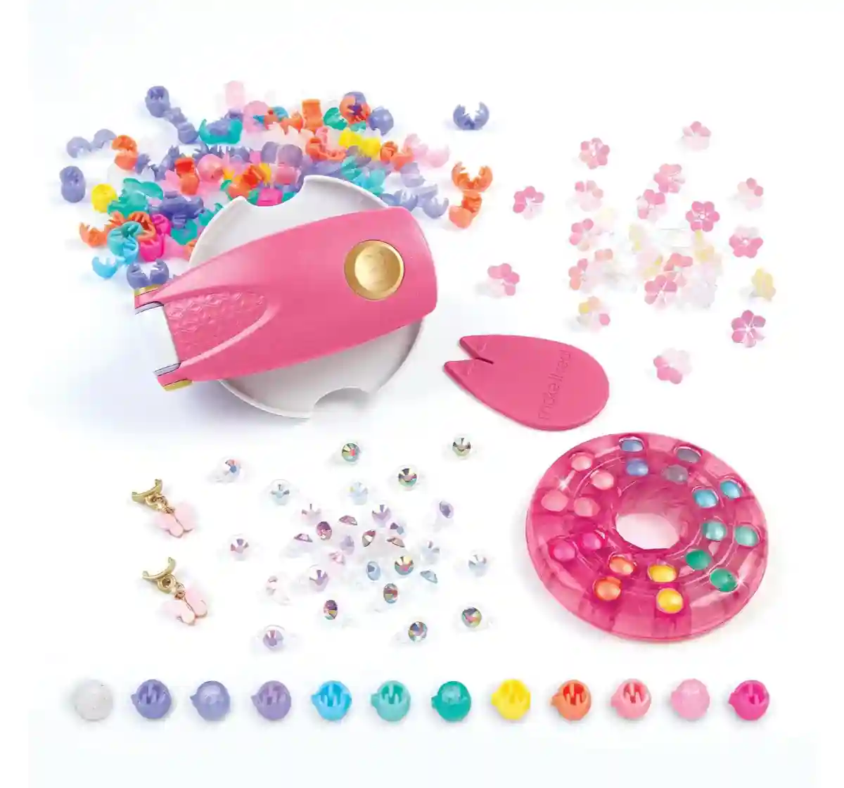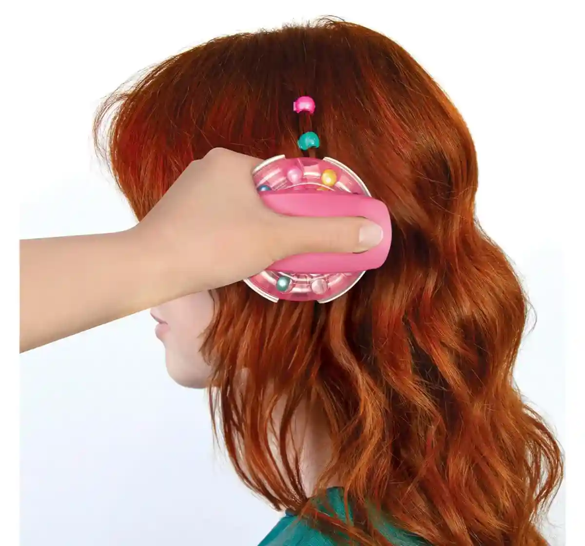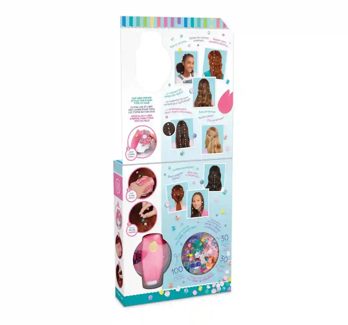 Clip and create styles for every type of hair! Using the included 100 bead clips with butterfly, gem, and flower accents, young fashionistas can create looks that express their unique styles in three simple steps: Load, clip, style! Load the cartridge with the desired bead clips, then clip onto hair with ease. All bead clips and accents are easy to remove and reusable. Includes a measuring tool to make ensure easy application. Use as accents or connect locks of hair together for more elaborate styles, the possibilities are endless! This makes a great gift idea for stylish tweens, for any occasion!