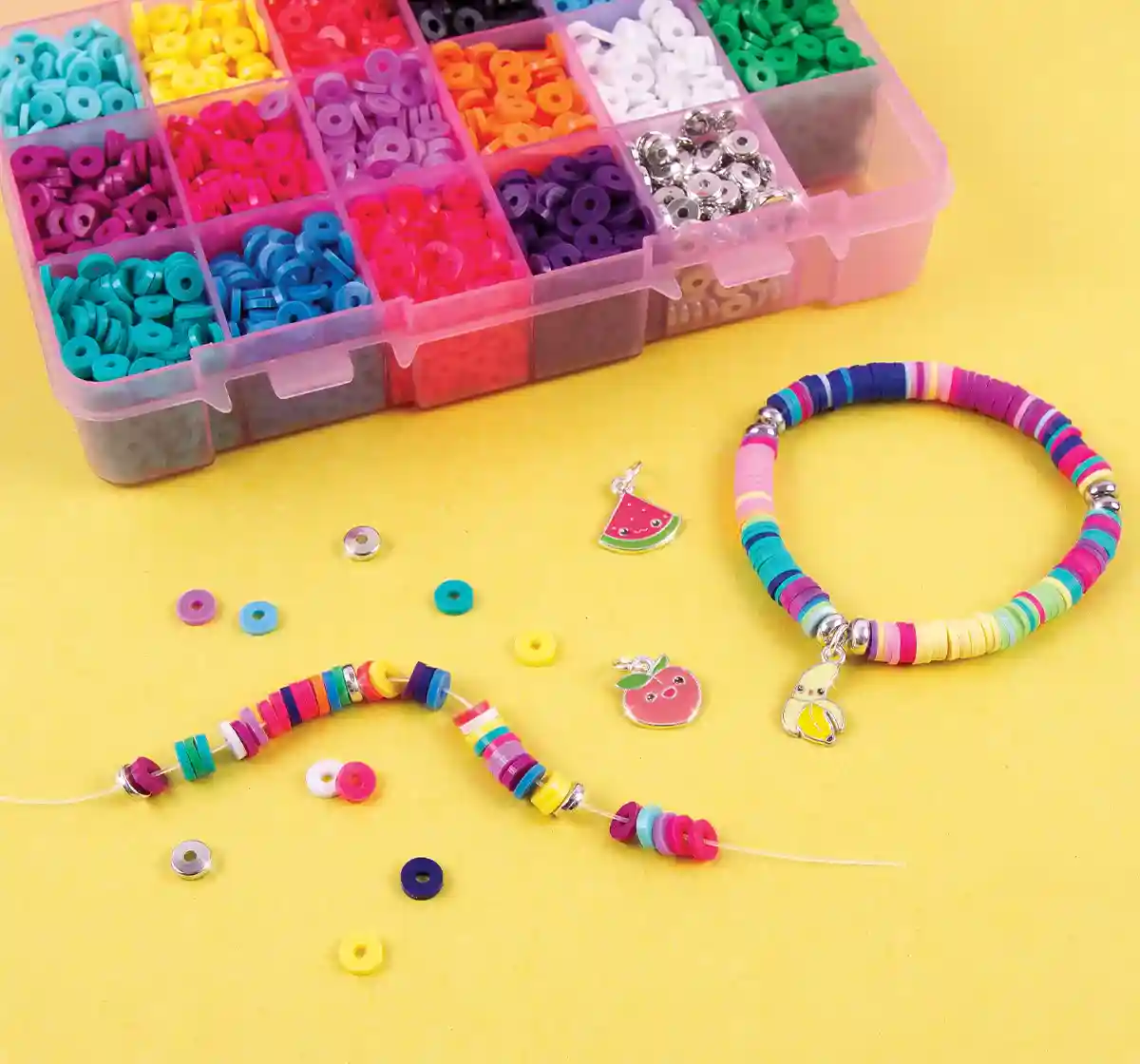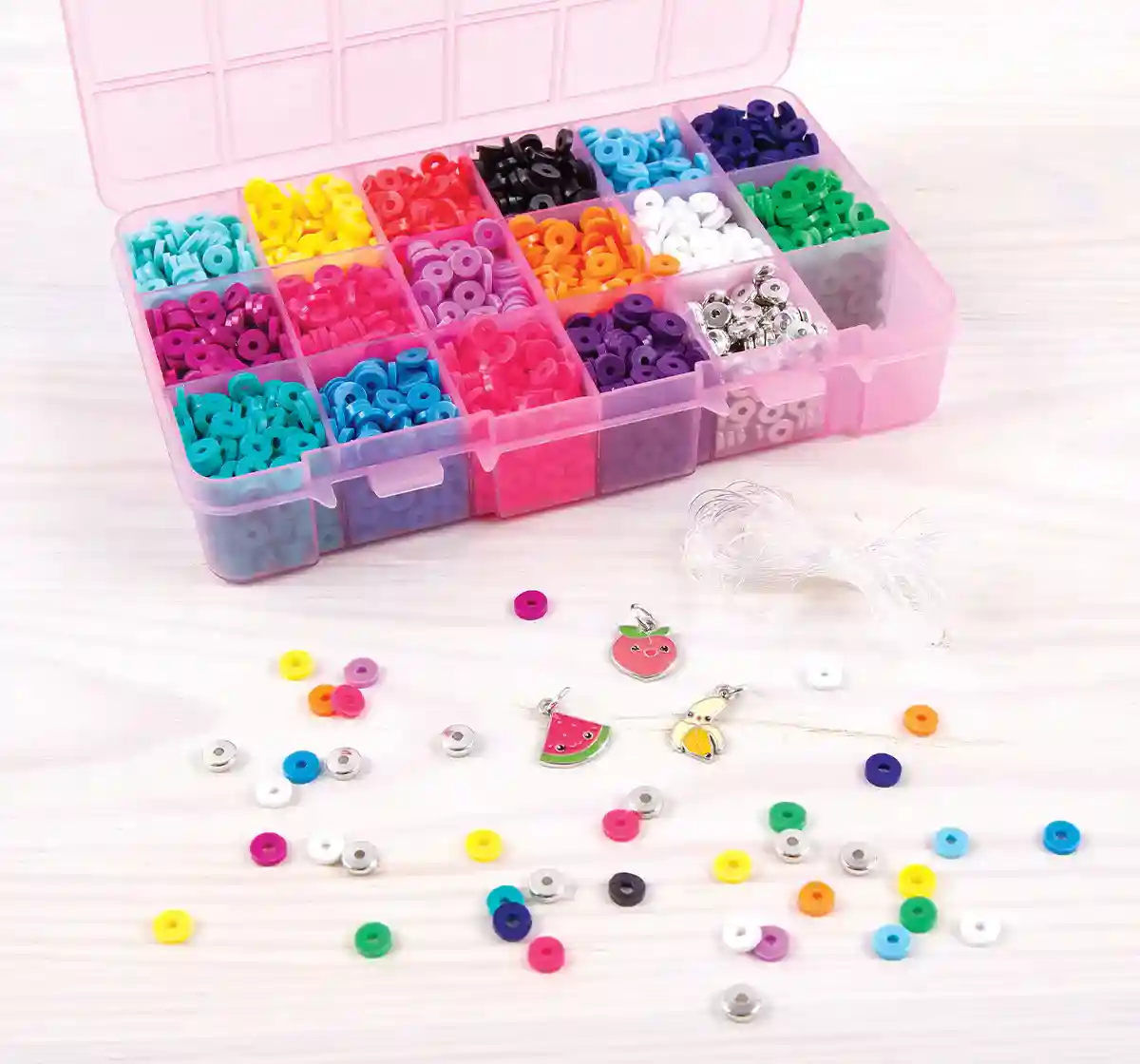 Mix, match and create hundreds of heishi beaded pieces while staying perfectly organized with this sturdy storage case and 3400 beads. Ages 8+.