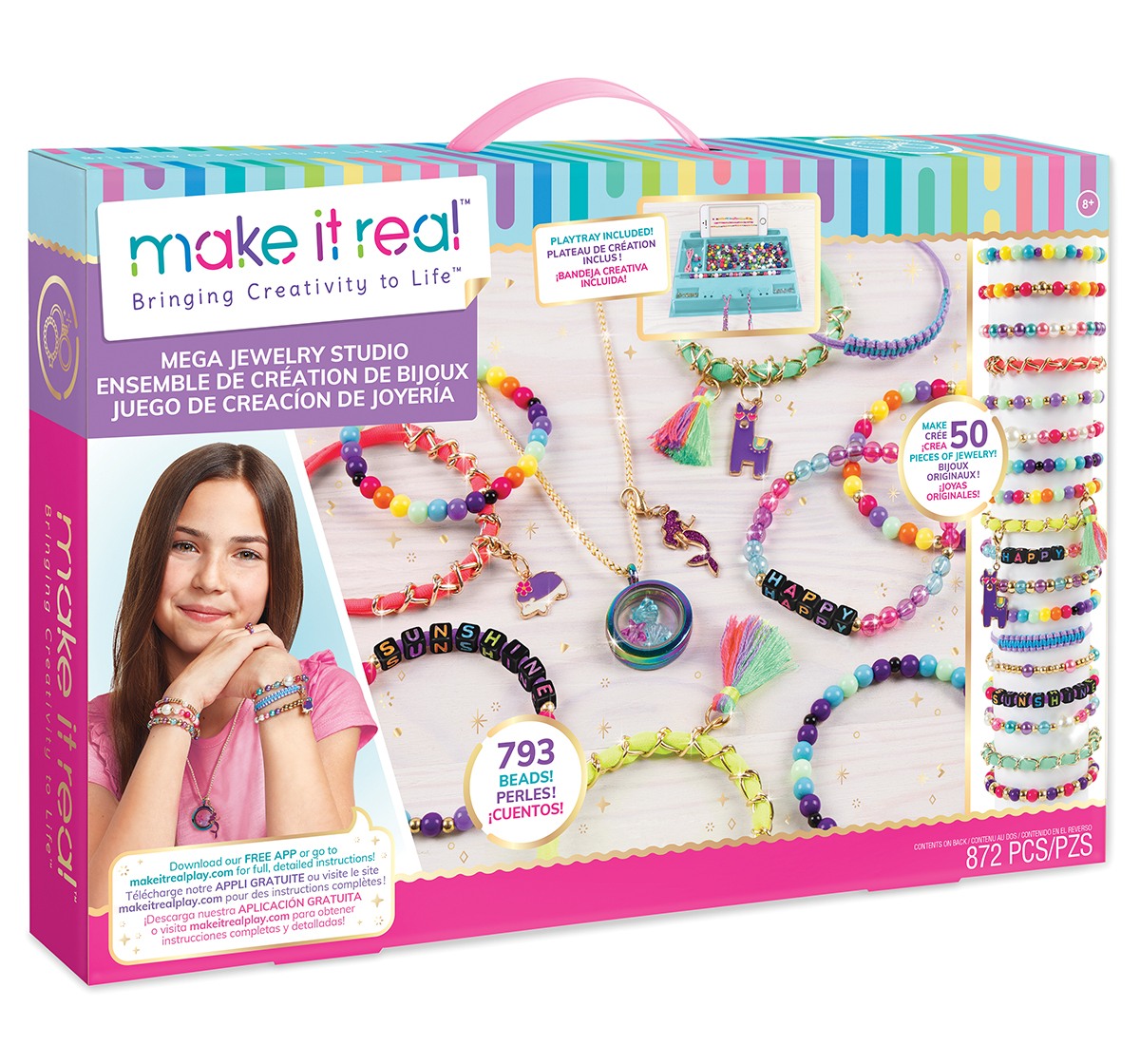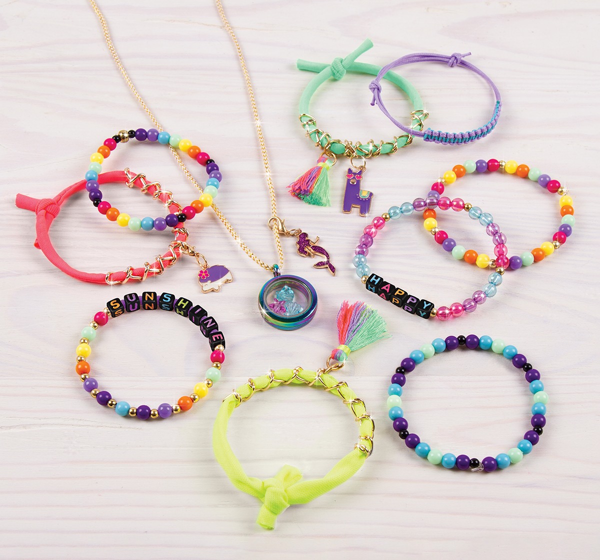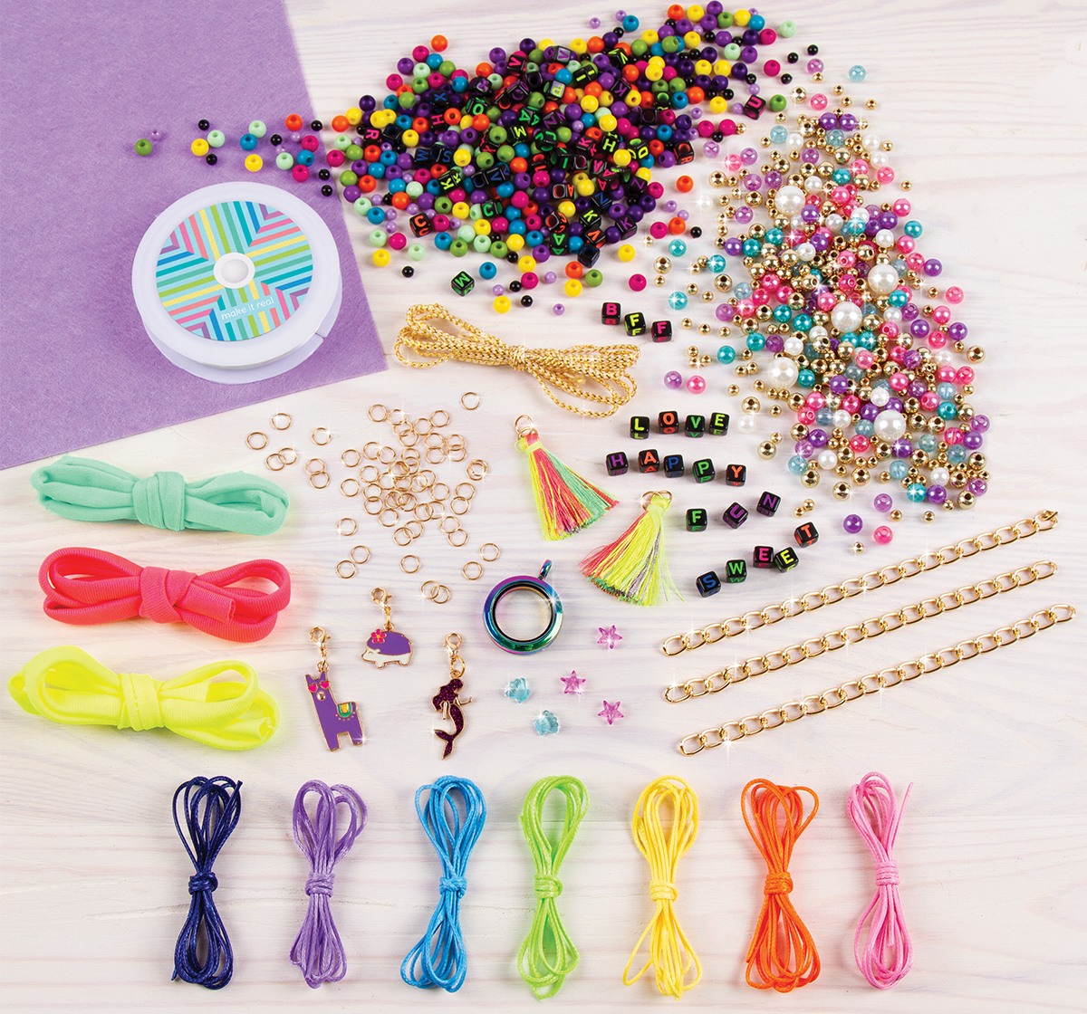 This DIY tween jewelry-making kit teaches young creators how to make 50 unique jewelry pieces that reflect their personal style with vibrant beads, gems, colorful cord, charms and tassels. Ages 8+.
