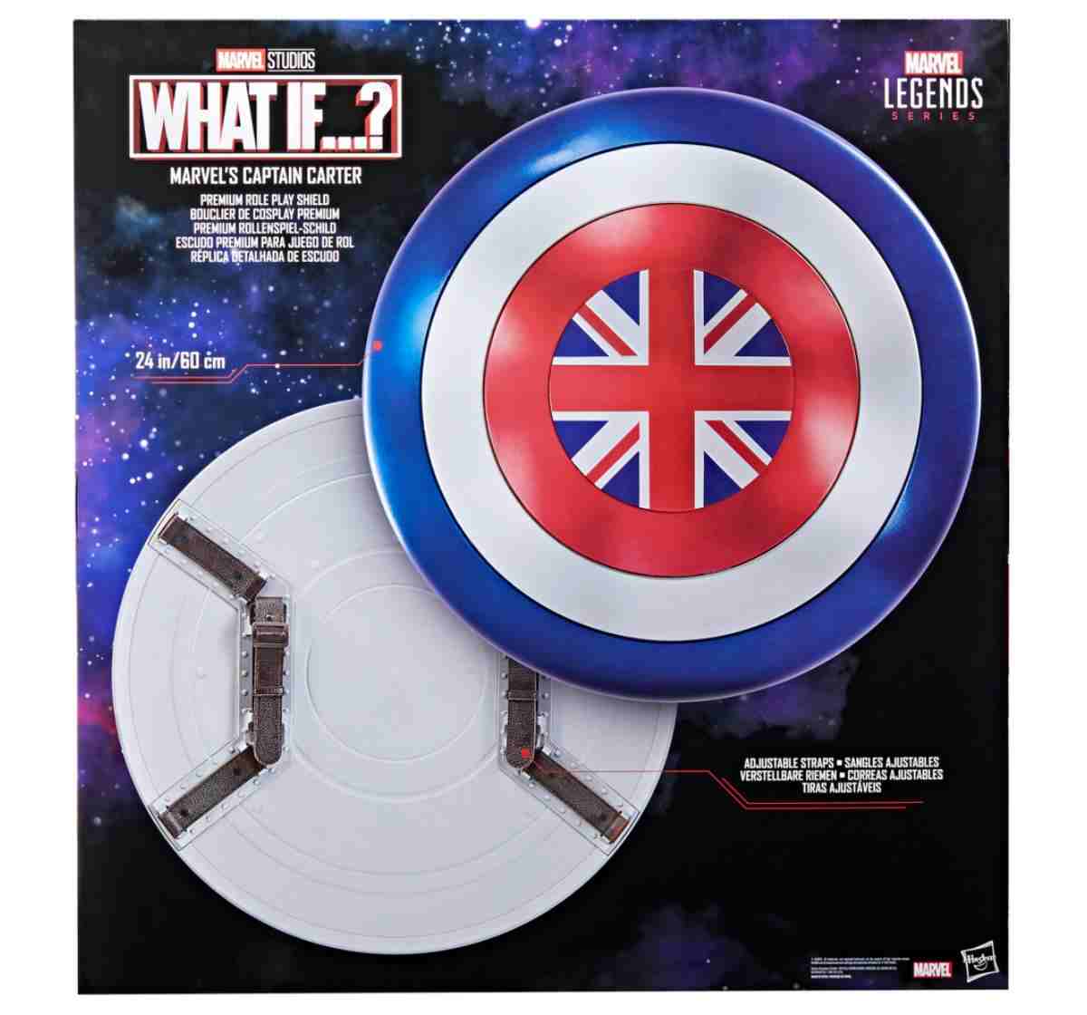 In this universe, Steve Rogers is sidelined during Project Rebirth, leaving Peggy Carter to receive the Super-Soldier Serum and become Captain Carter: the world’s first Super-Soldier. Marvel Legends proudly presents this 1:1 scale reproduction of the Marvel’s Captain Carter Shield as it appears throughout the Marvel Cinematic Universe. With series-accurate sculpting and detailing across the shield, this is the next essential Marvel Legends Roleplay item for your Marvel gear collection. Additional items each sold separately. Subject to availability. Copyright 2023 MARVEL. Hasbro and all related terms are trademarks of Hasbro.