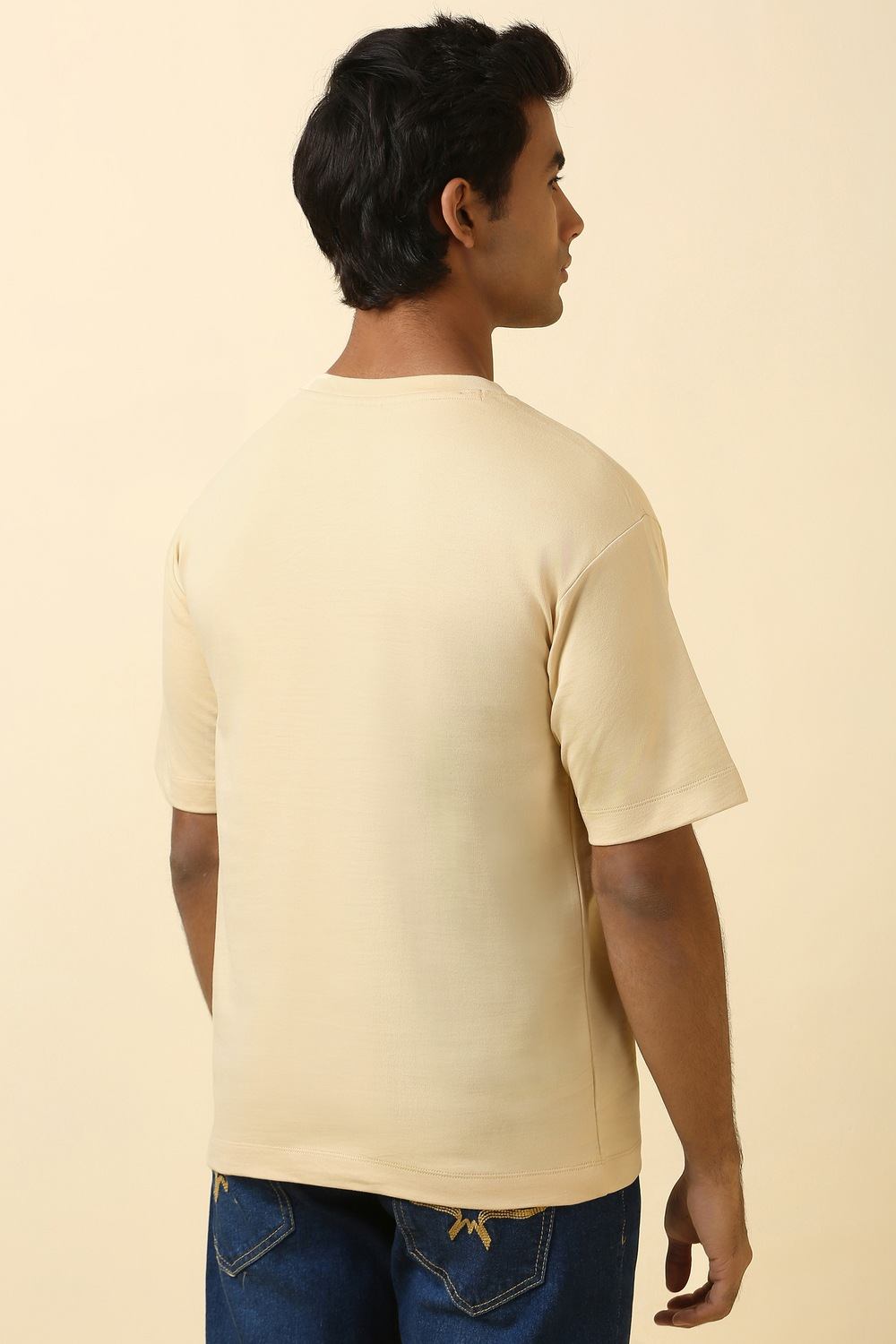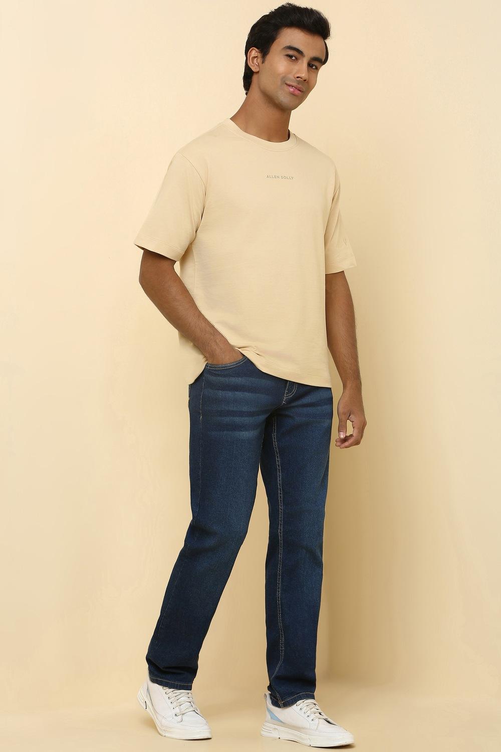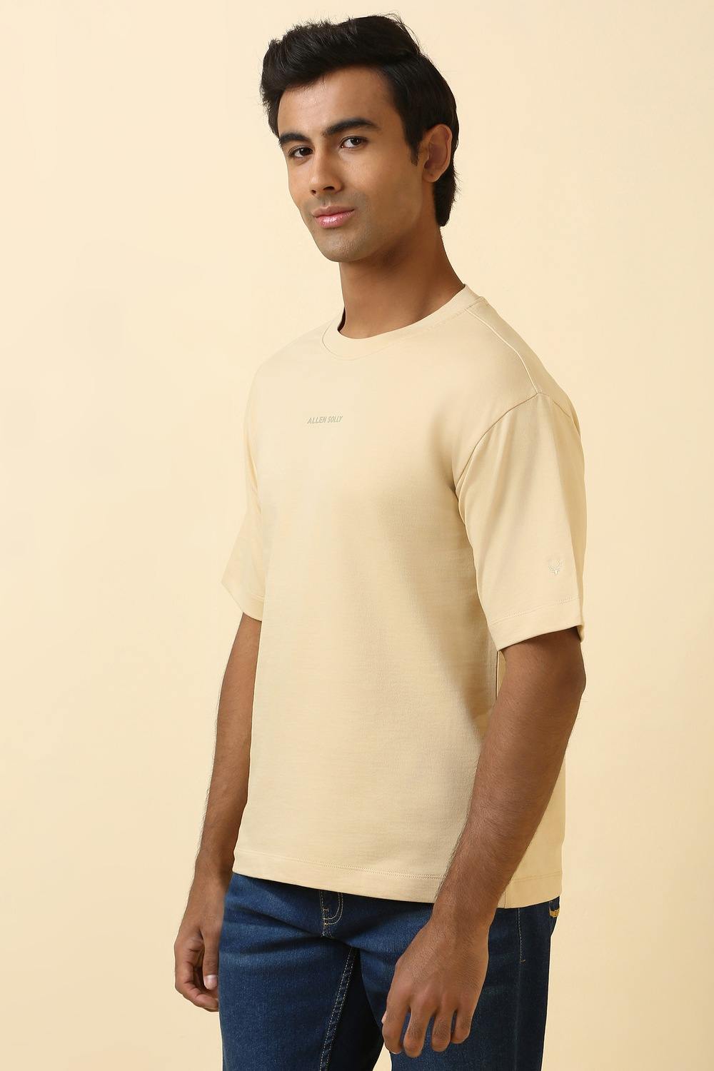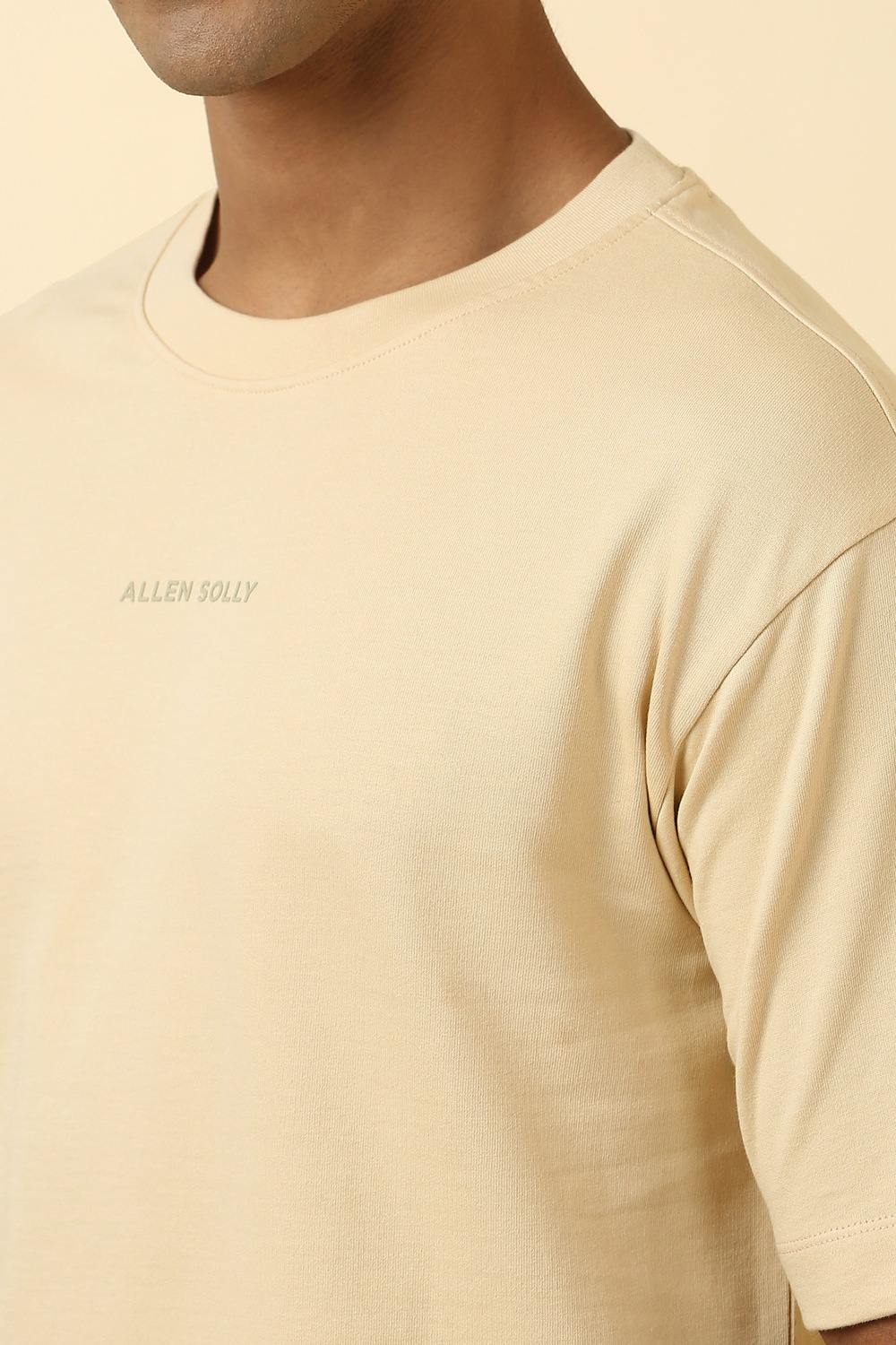 Elevate your casual wardrobe with the Allen Solly beige t-shirt. Crafted from soft cotton, this solid crew neck design offers ultimate comfort and style for everyday wear. Its versatile hue pairs effortlessly with a variety of ensembles, ensuring you always look sharp and put-together. Embrace a relaxed yet refined vibe that's perfect for any casual outing. Make this essential piece a staple in your collection.