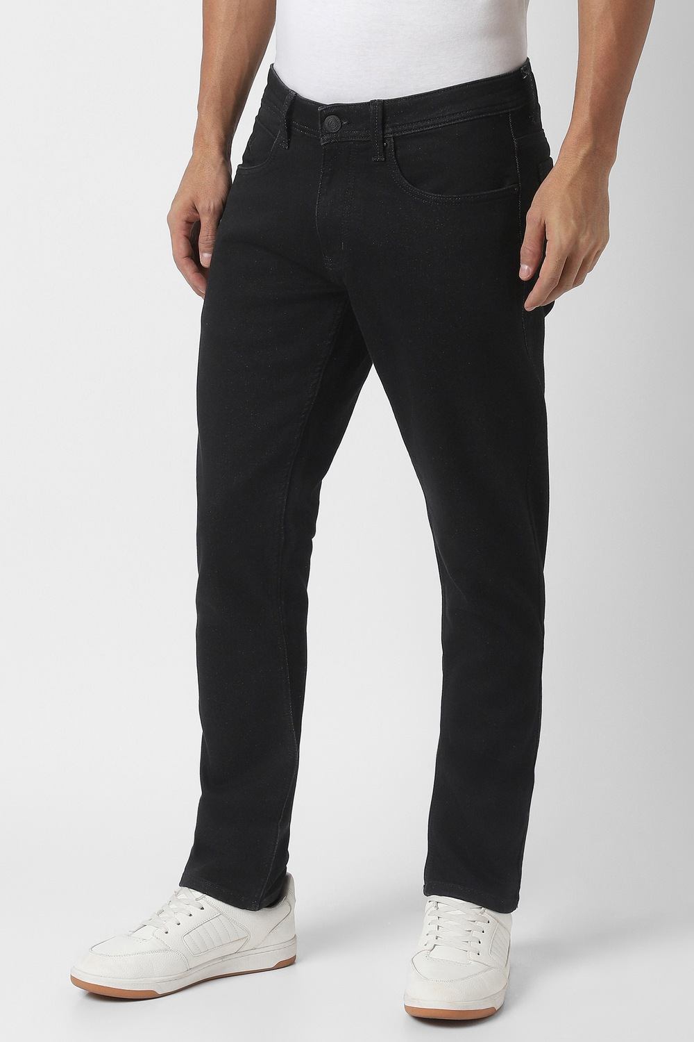 Crafted for the modern man, these Peter England jeans in a classic black hue are the perfect addition to your casual wardrobe. The dark wash enhances versatility, making them ideal for various settings. With a blend of cotton, polyester, and elastane, they provide both comfort and stretch for a flattering fit. Elevate your style effortlessly with these jeans that combine practicality and contemporary fashion.