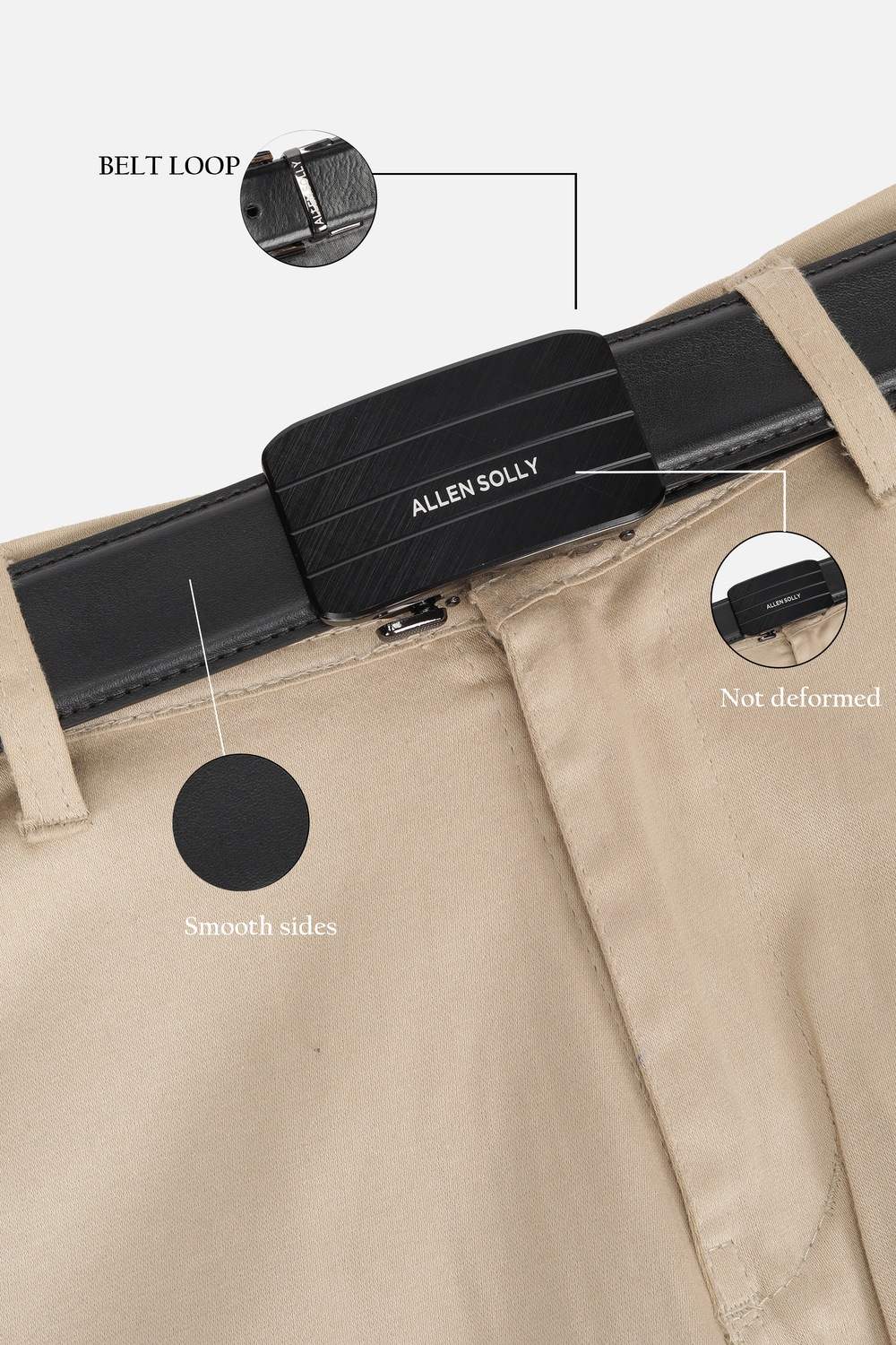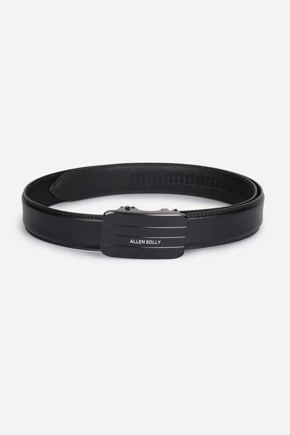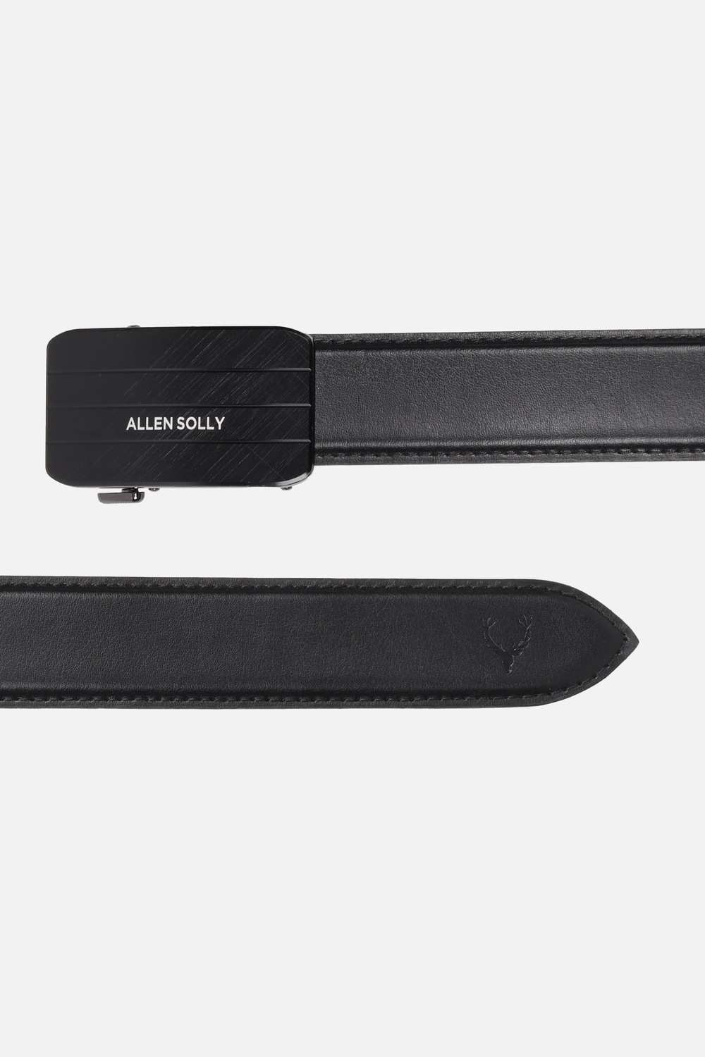 Presented in a sleek design, this black leather belt from Allen Solly enhances formal attire with its luxurious appeal. Meticulously constructed, it offers lasting durability while effortlessly complementing both tailored suits and smart-casual ensembles. The solid pattern exudes refinement, making it an ideal choice for distinguished occasions. Elevate your essentials with this statement accessory that embodies style and sophistication, ideally suited for the modern gentleman who values quality and timeless design.