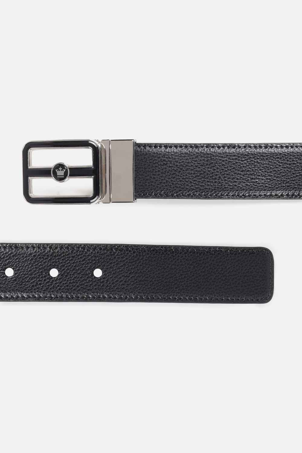 Elevate your formal ensemble with the Louis Philippe textured leather belt. This sophisticated accessory effortlessly adds a touch of elegance to your outfit, making it ideal for any formal occasion. With its durable construction and refined texture, it offers a stylish yet practical solution for your wardrobe. The classic black color ensures versatility, pairing seamlessly with a variety of trousers. Complete your look and enjoy the finesse this belt brings to your style.