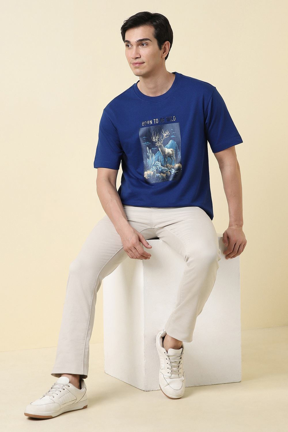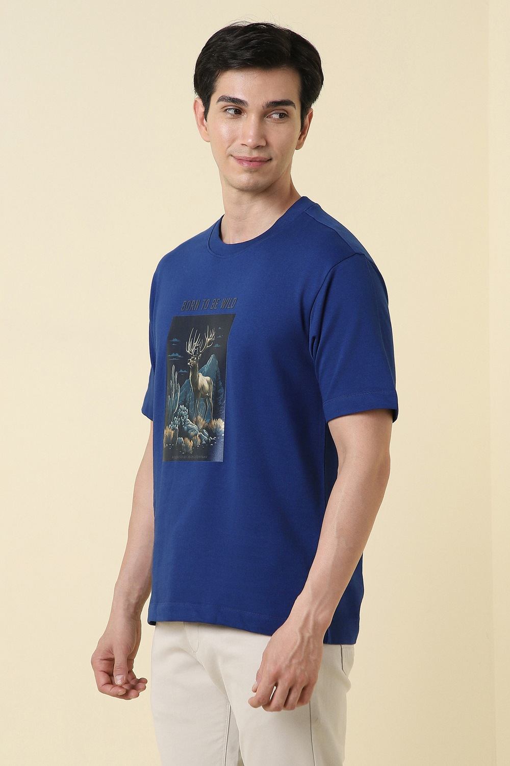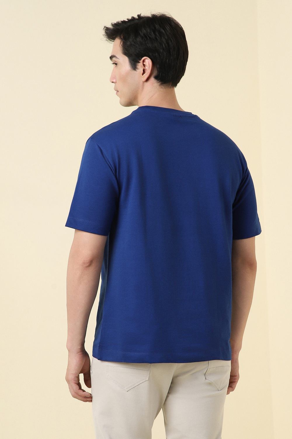 Elevate your casual wardrobe with this Allen Solly blue graphic print t-shirt. Crafted from soft cotton, it ensures comfort and breathability for all-day wear. The crew neckline adds to its versatility, making it a perfect choice for laid-back outings. Embrace a stylish look that pairs well with your favorite jeans or shorts, defining effortless casual elegance. Discover how this t-shirt can enhance your everyday style.