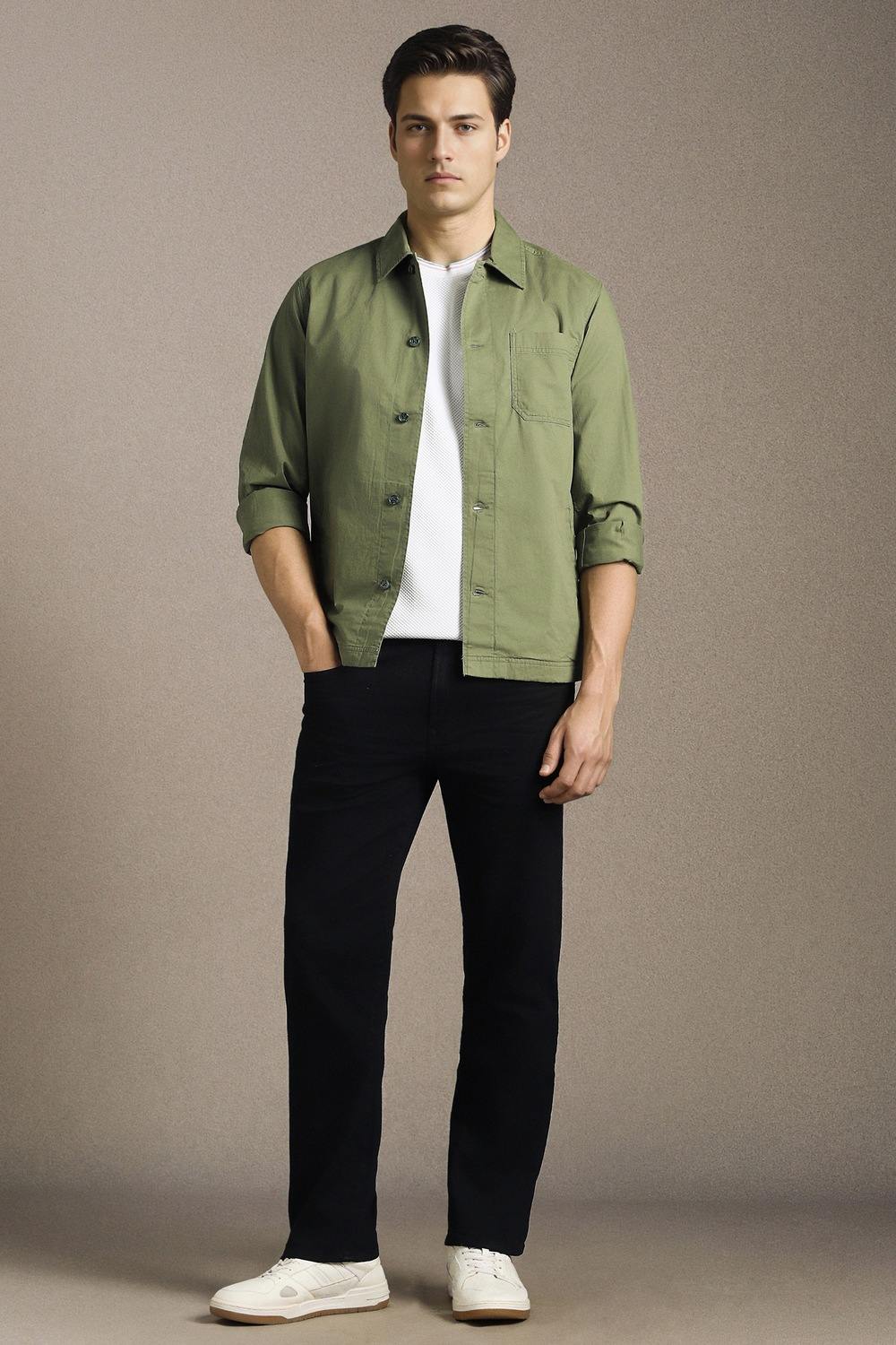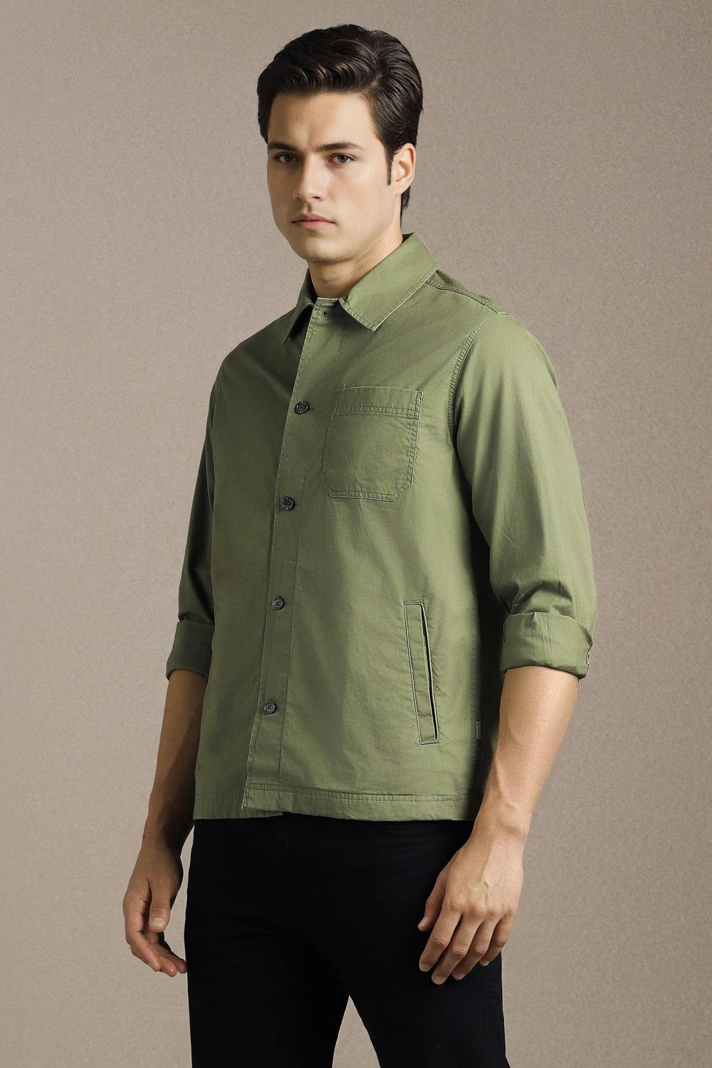 Sophisticated style meets modern comfort in this olive shacket from Louis Philippe. Meticulously constructed from a premium cotton and spandex blend, this piece offers remarkable ease for casual gatherings. Its solid pattern exudes understated elegance, effortlessly transitioning from day to night. Ideal for layering, this versatile addition enriches your wardrobe while ensuring you make a lasting impression. Embrace effortless charm with this stylish staple that embodies casual luxury.