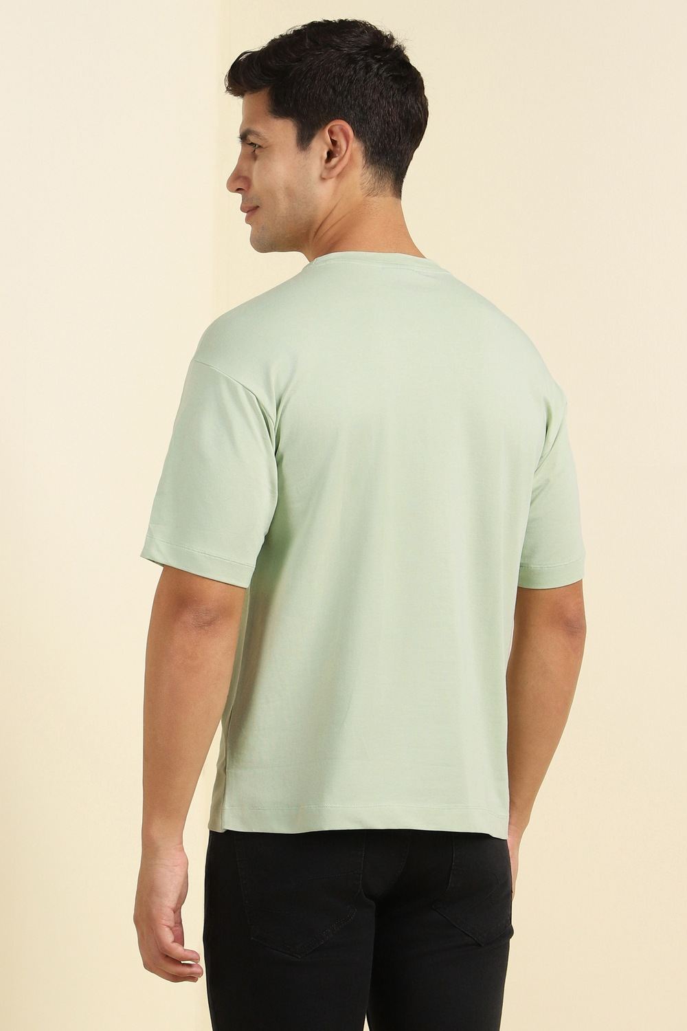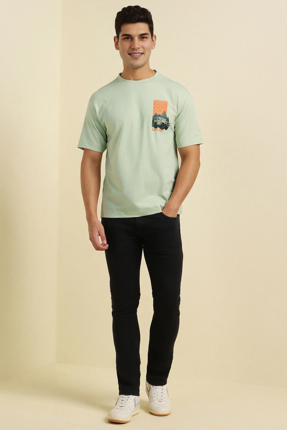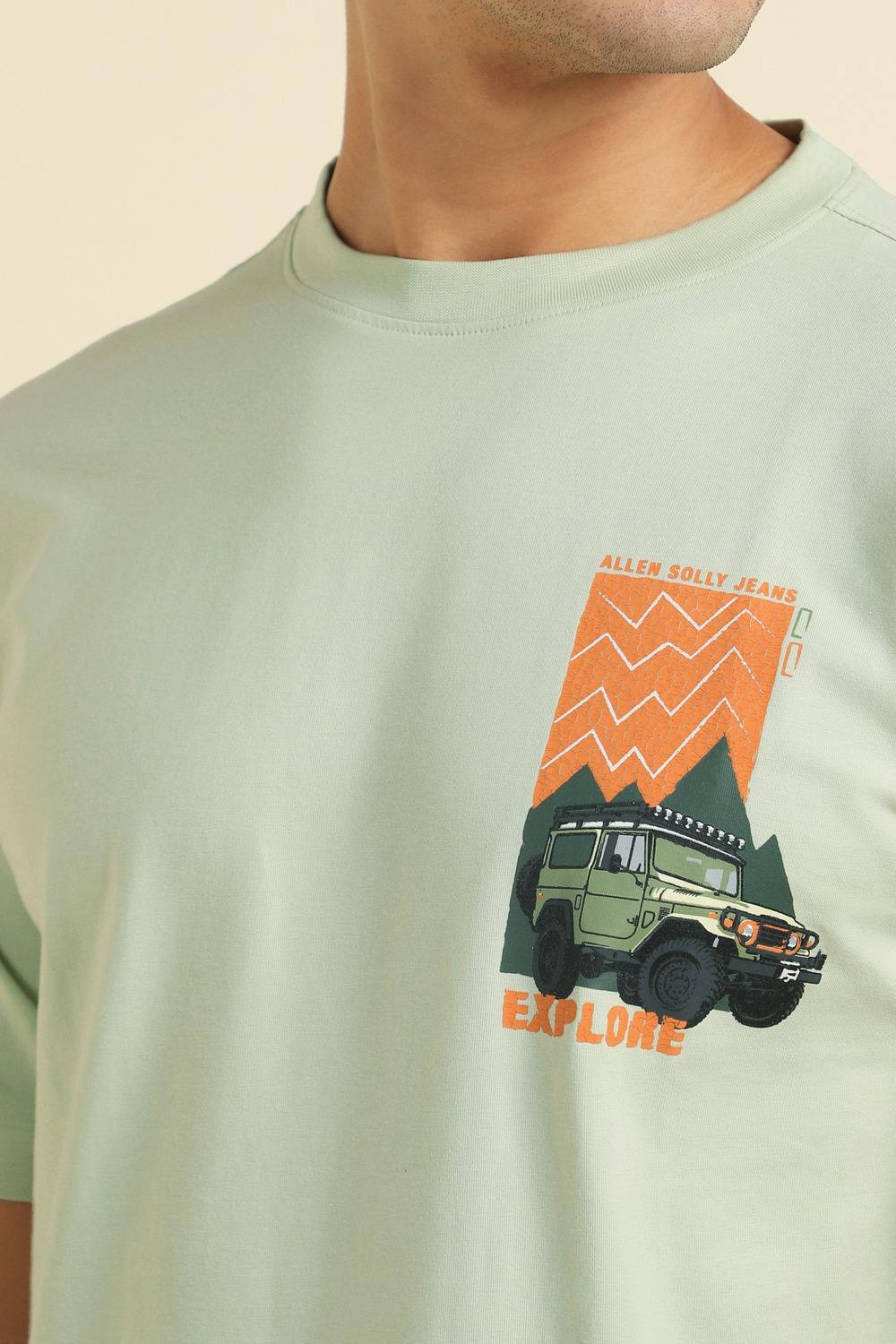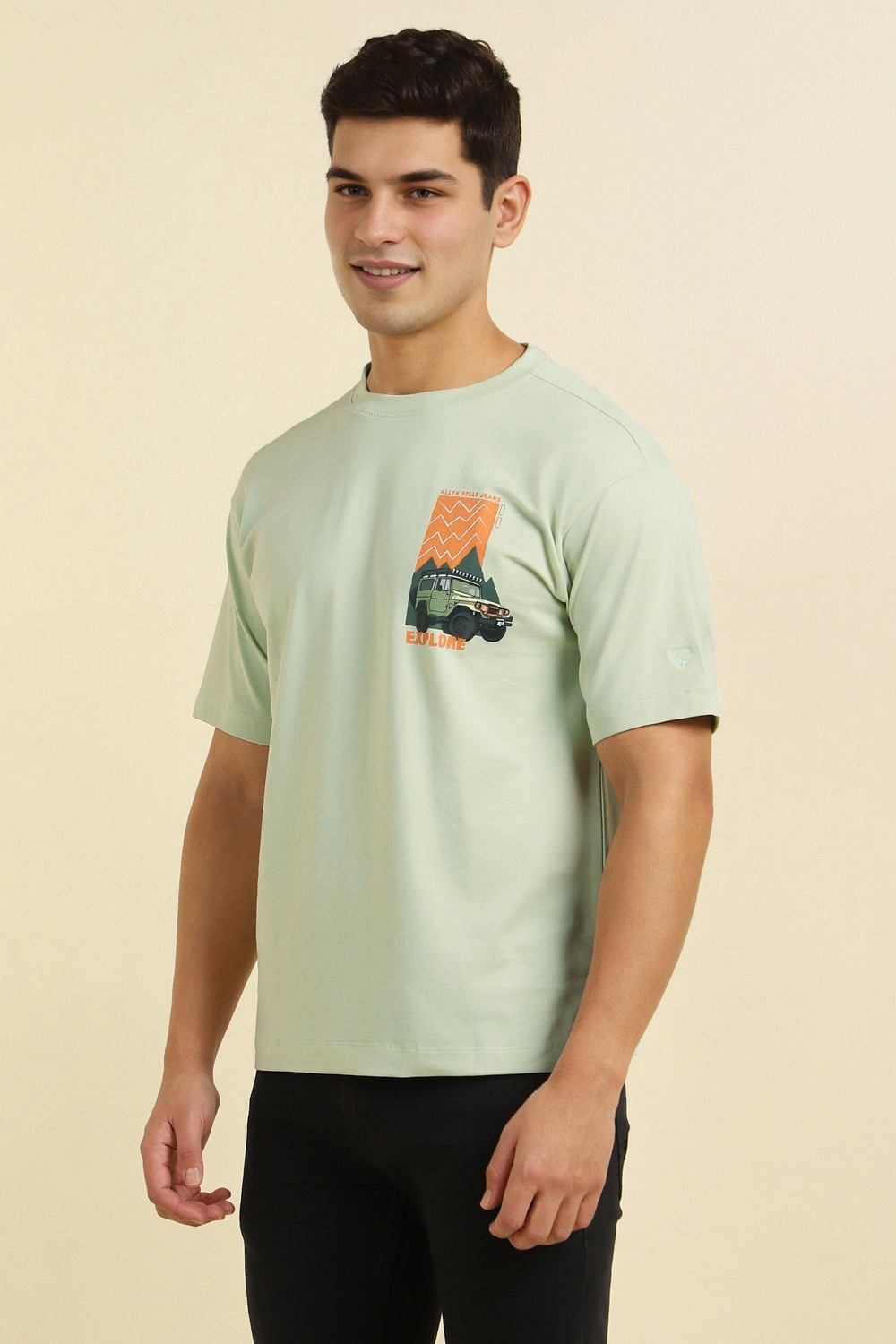 This Allen Solly oversized fit t-shirt in a vibrant green features a striking graphic print that adds a modern touch to your casual wardrobe. Crafted from a soft blend of cotton and spandex, it ensures breathability and flexibility for all-day comfort. The crew neckline and half sleeves enhance its laid-back style, making it a perfect choice for relaxed outings. Embrace effortless style with this distinctive t-shirt that complements your unique personality.