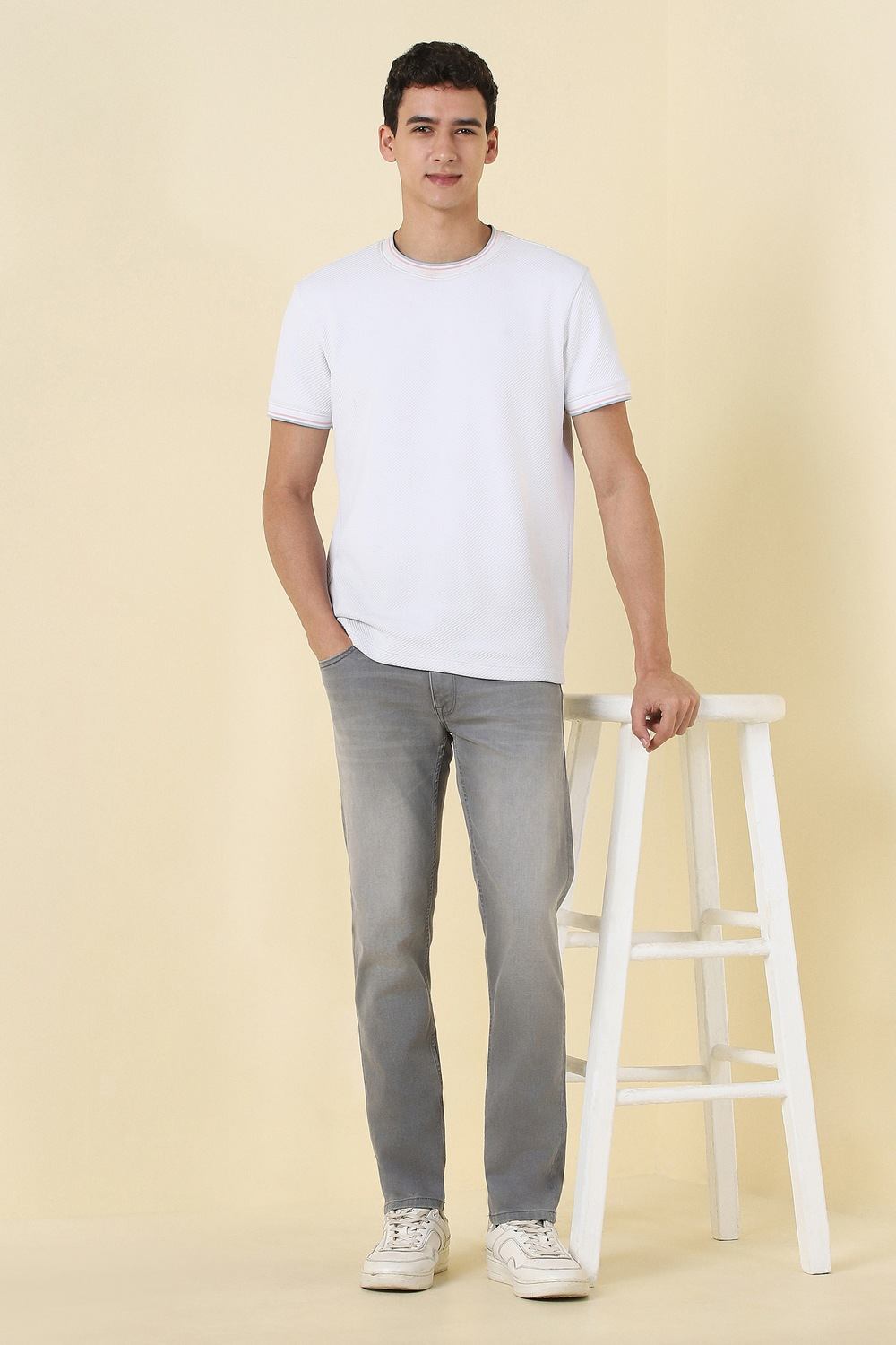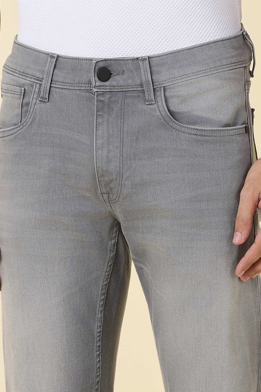 Elevate your casual wardrobe with the Allen Solly grey jeans. Crafted from a premium blend of cotton, polyester, and spandex, these solid jeans offer exceptional comfort and a flattering fit. The light wash adds a modern touch, making them perfect for relaxed outings. With their versatile design, you can effortlessly pair them with any top for a stylish look that stands out. Embrace comfort without compromising on style.