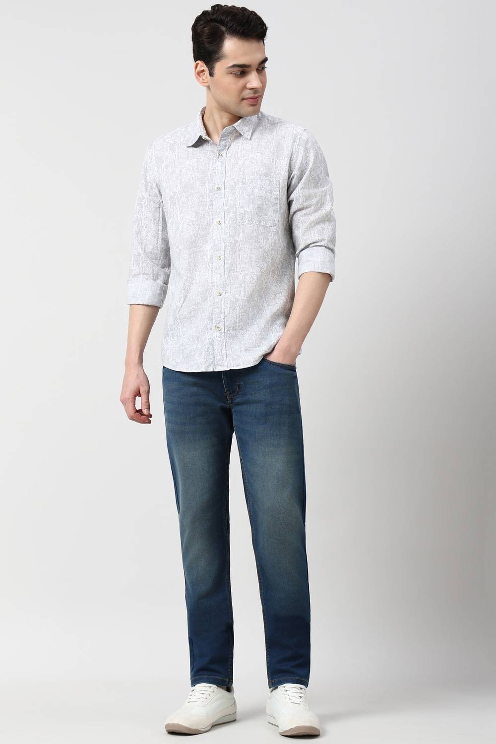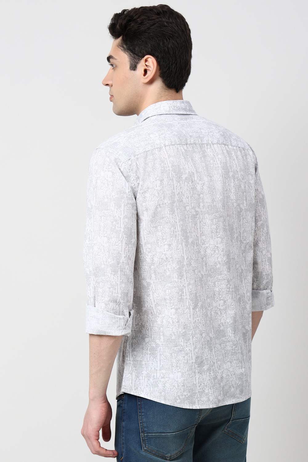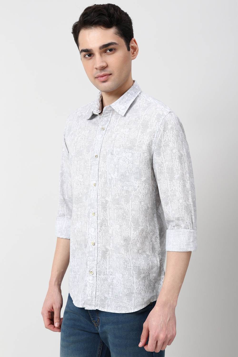 This Peter England full sleeves casual shirt in a sophisticated grey features a stylish print that effortlessly combines comfort and contemporary design. Crafted from breathable cotton, it is perfect for casual outings and laid-back gatherings. The long sleeves provide versatility, making it a staple for any wardrobe. Elevate your everyday look with this chic shirt that speaks to your unique sense of style.