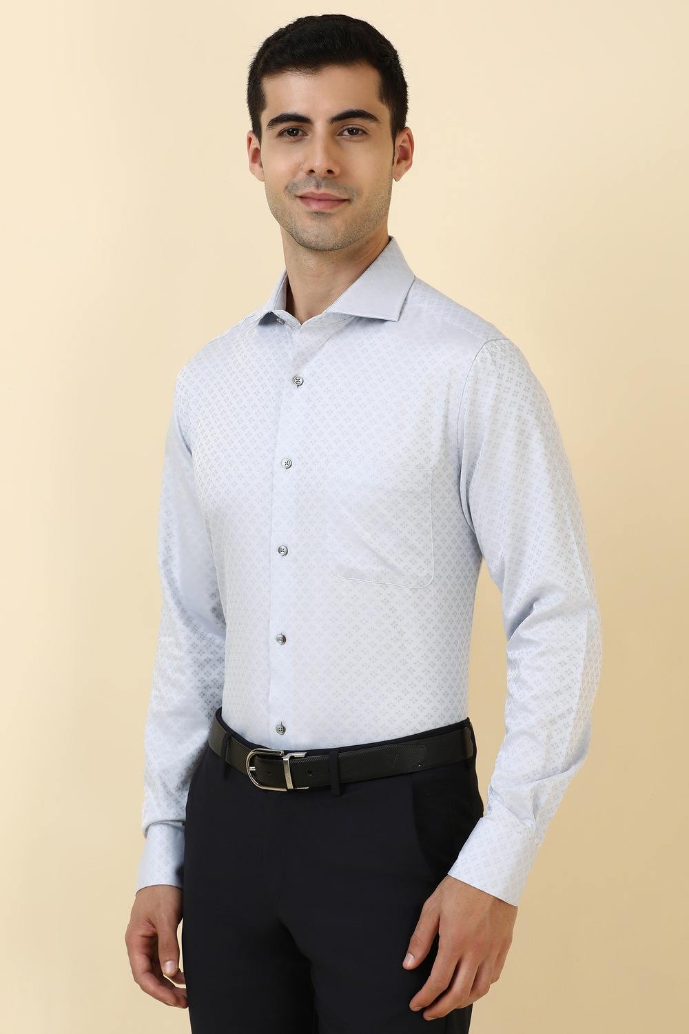 Elevate your formal wardrobe with the Allen Solly Sport grey textured shirt. Crafted from premium cotton, this shirt offers a sophisticated look, making it ideal for professional settings. Its refined texture adds depth, ensuring you stand out with elegance. Designed for ultimate comfort, this shirt seamlessly blends style with functionality, making it a must-have for the modern man. Embrace a polished appearance that enhances your confidence at any formal occasion.