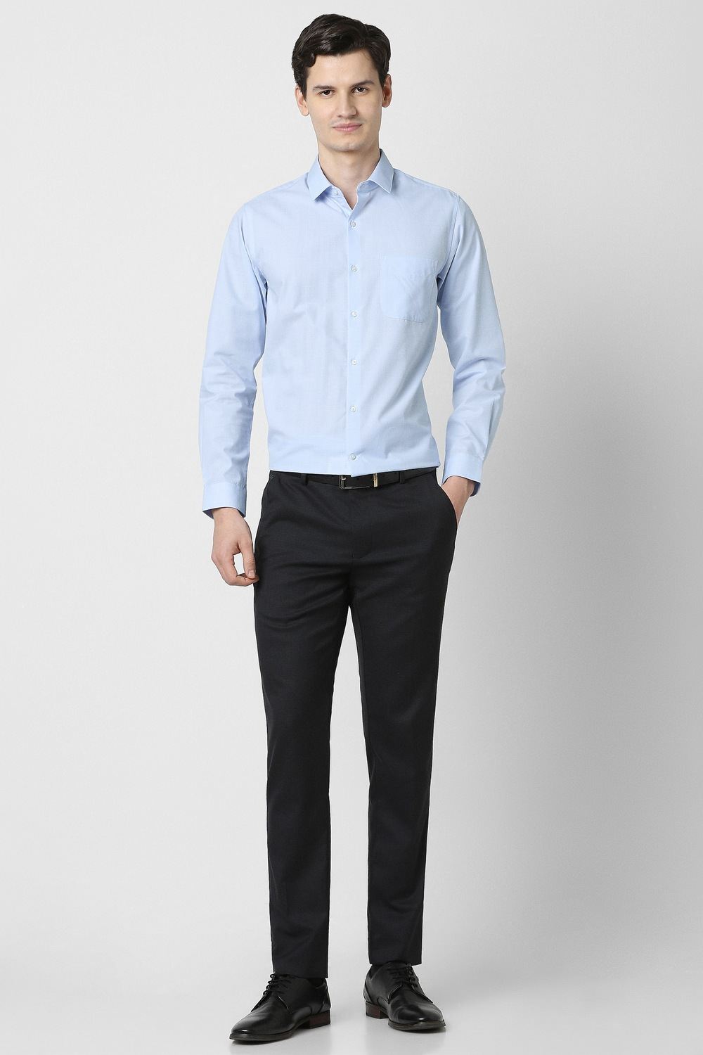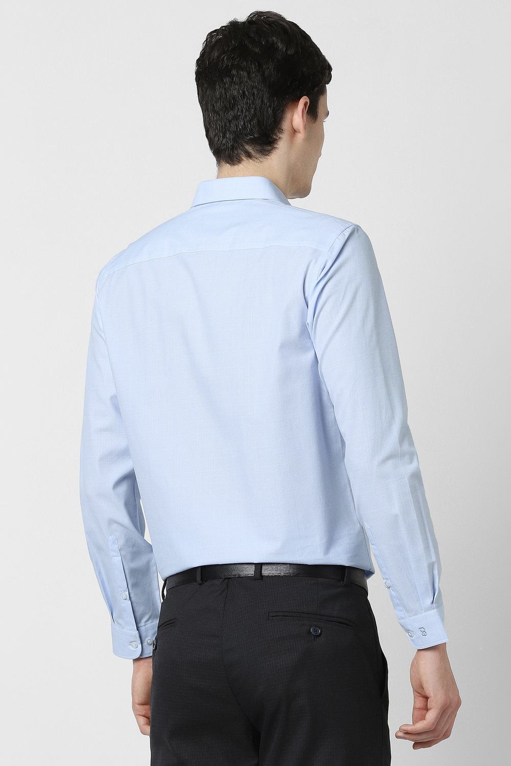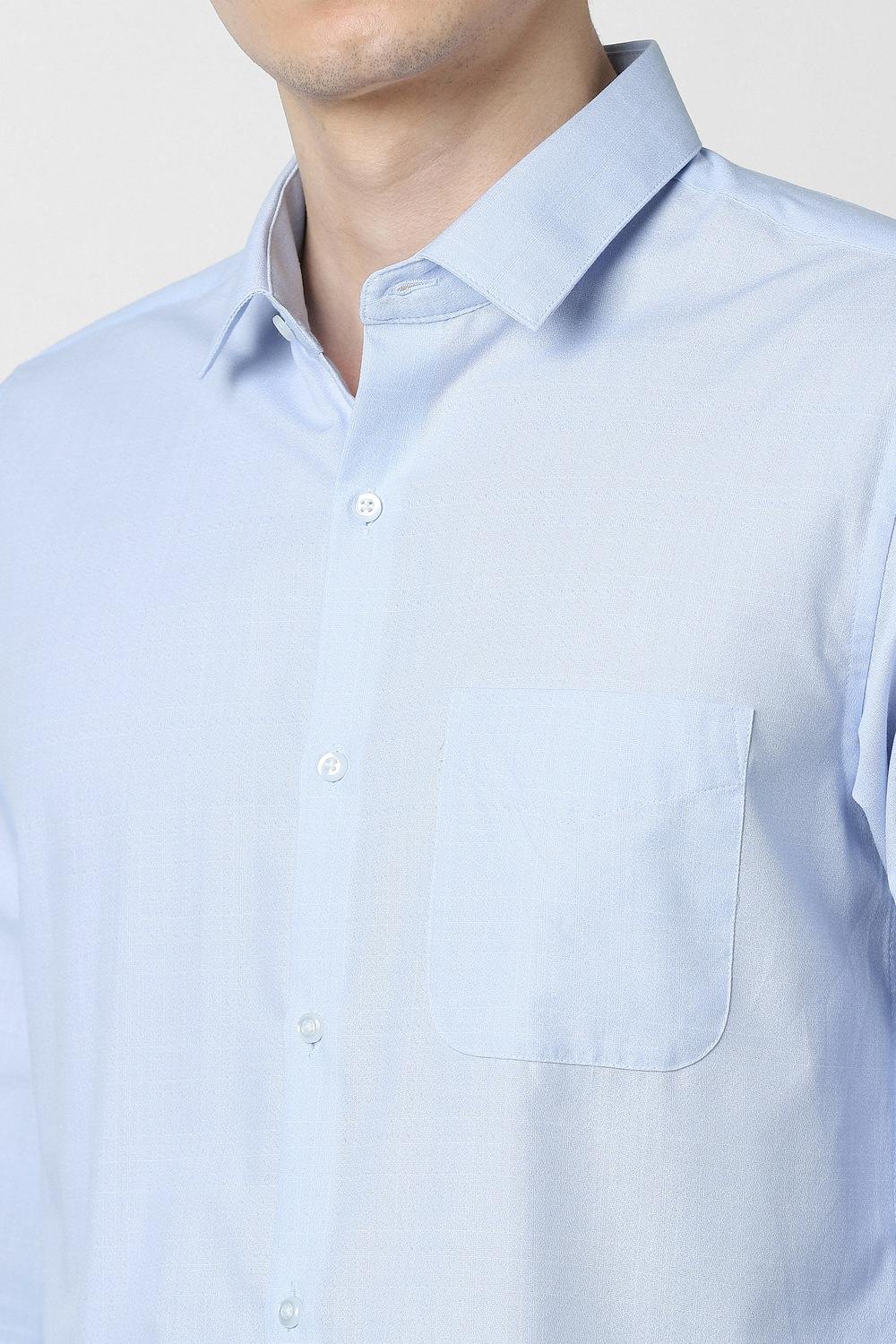 Elevate your formal wardrobe with this Peter England full sleeves formal shirt in a refined light blue shade. Crafted from a premium blend of cotton and polyester, it delivers both comfort and a tailored slim fit, making it ideal for professional settings. The solid pattern enhances versatility, while the full sleeves provide a polished look. Embrace sophistication effortlessly with this essential piece that complements your style with grace.