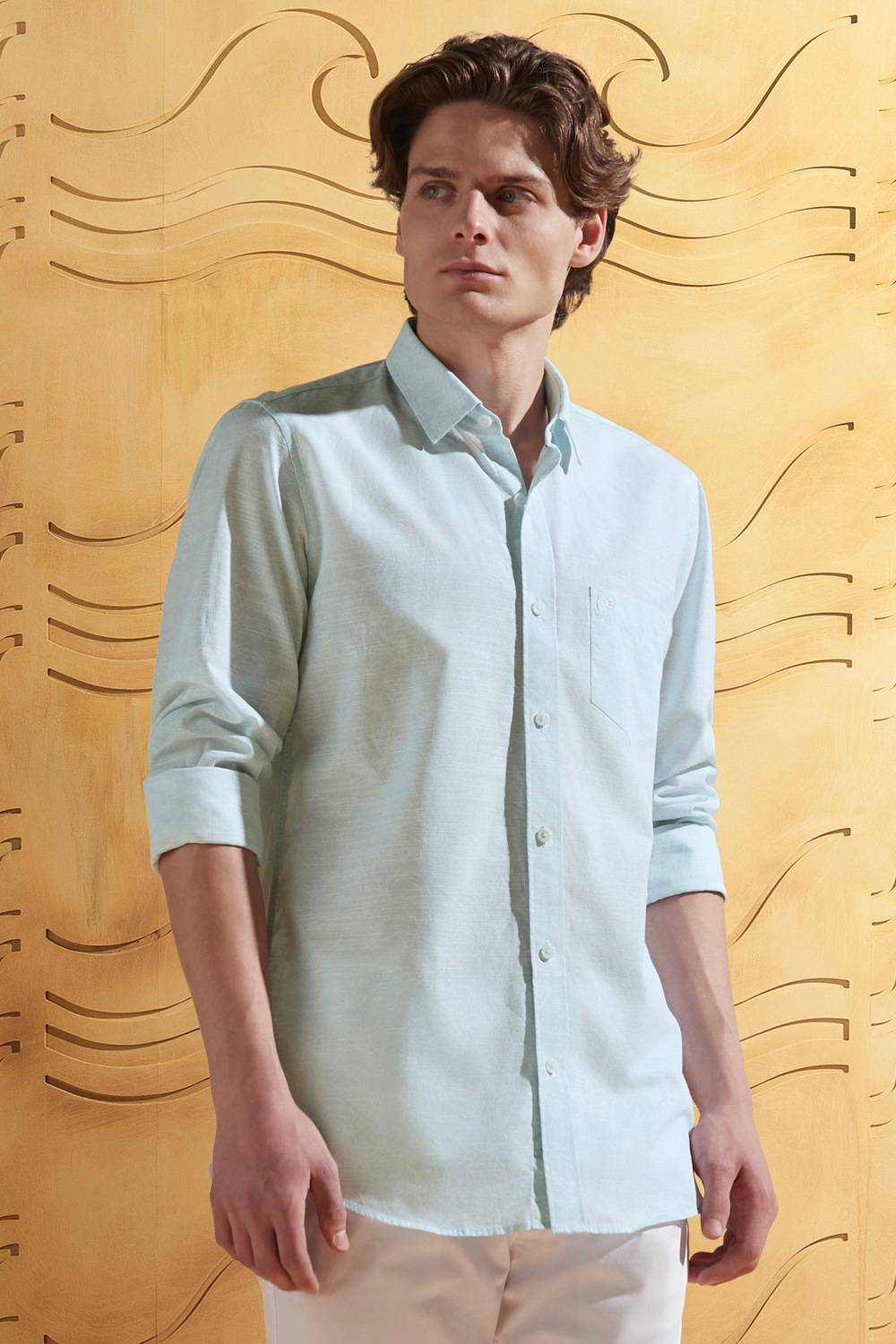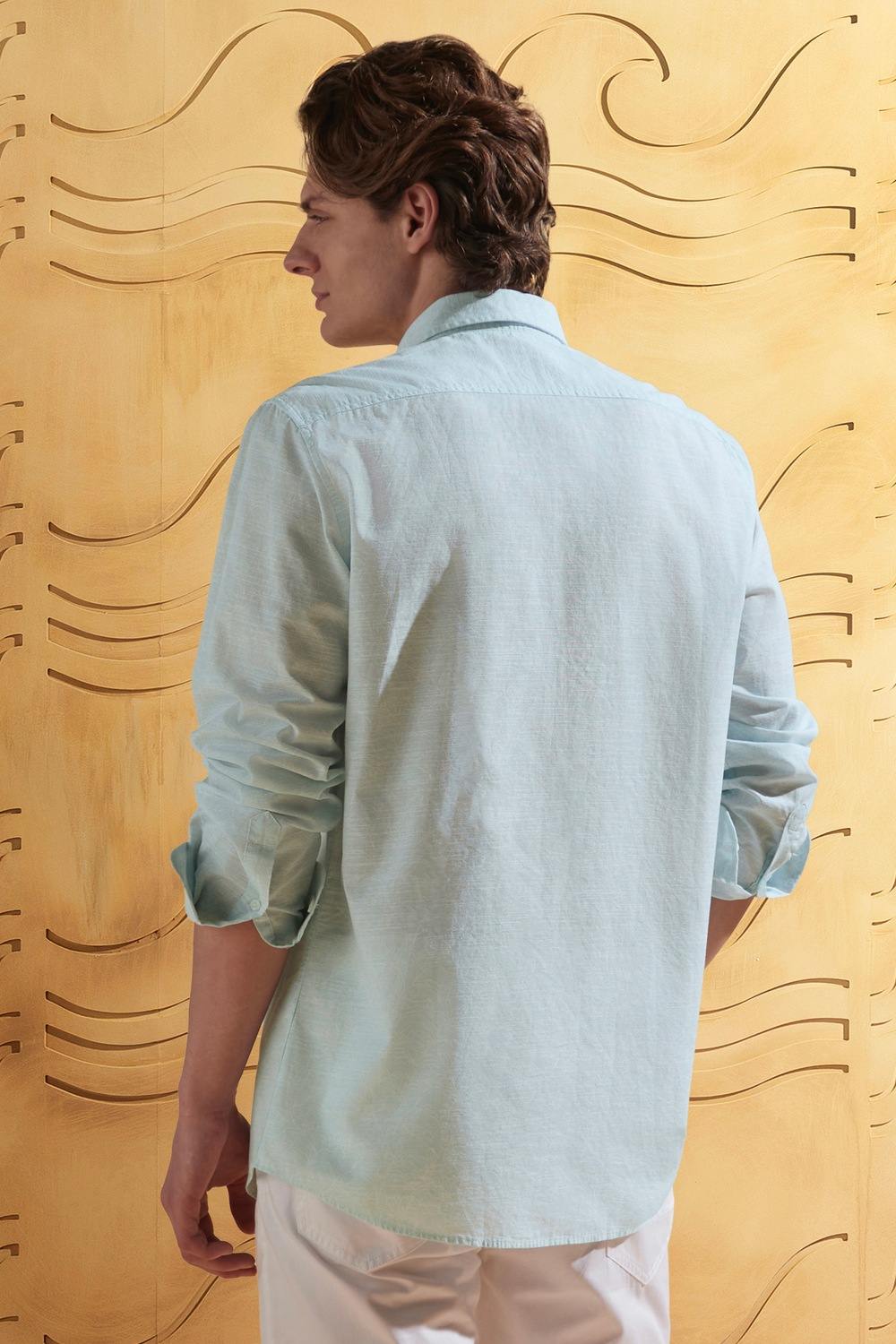 A fresh light blue full sleeves casual shirt from Peter England Casuals brings an effortless charm to your daily attire. Expertly crafted from breathable cotton, it ensures all-day ease while the lively print infuses personality into your ensemble. Perfect for casual outings, this piece promises both style and comfort, making it a wardrobe staple for the modern man seeking versatility in his fashion choices. Elevate your casual look effortlessly with this refined shirt.