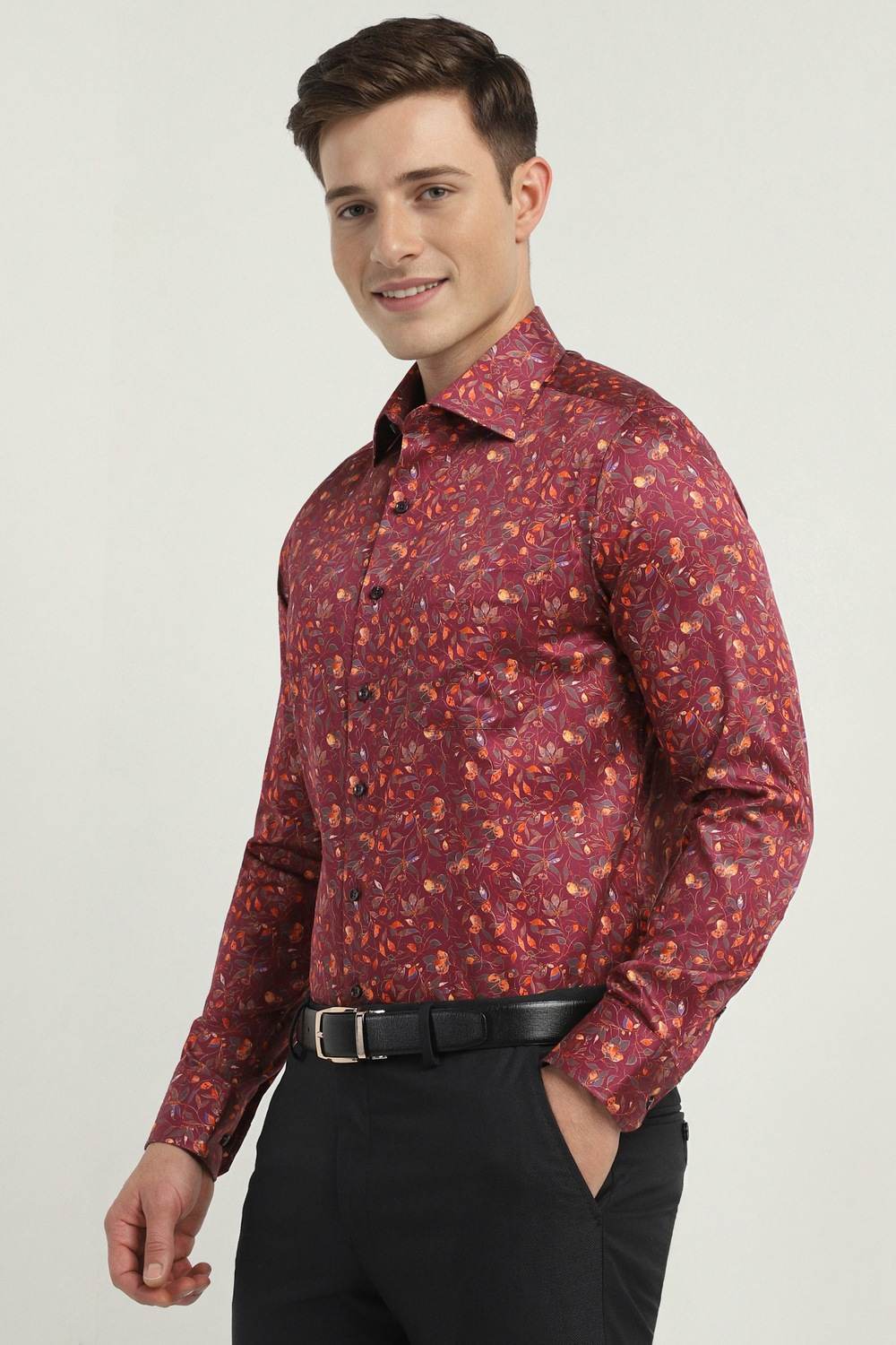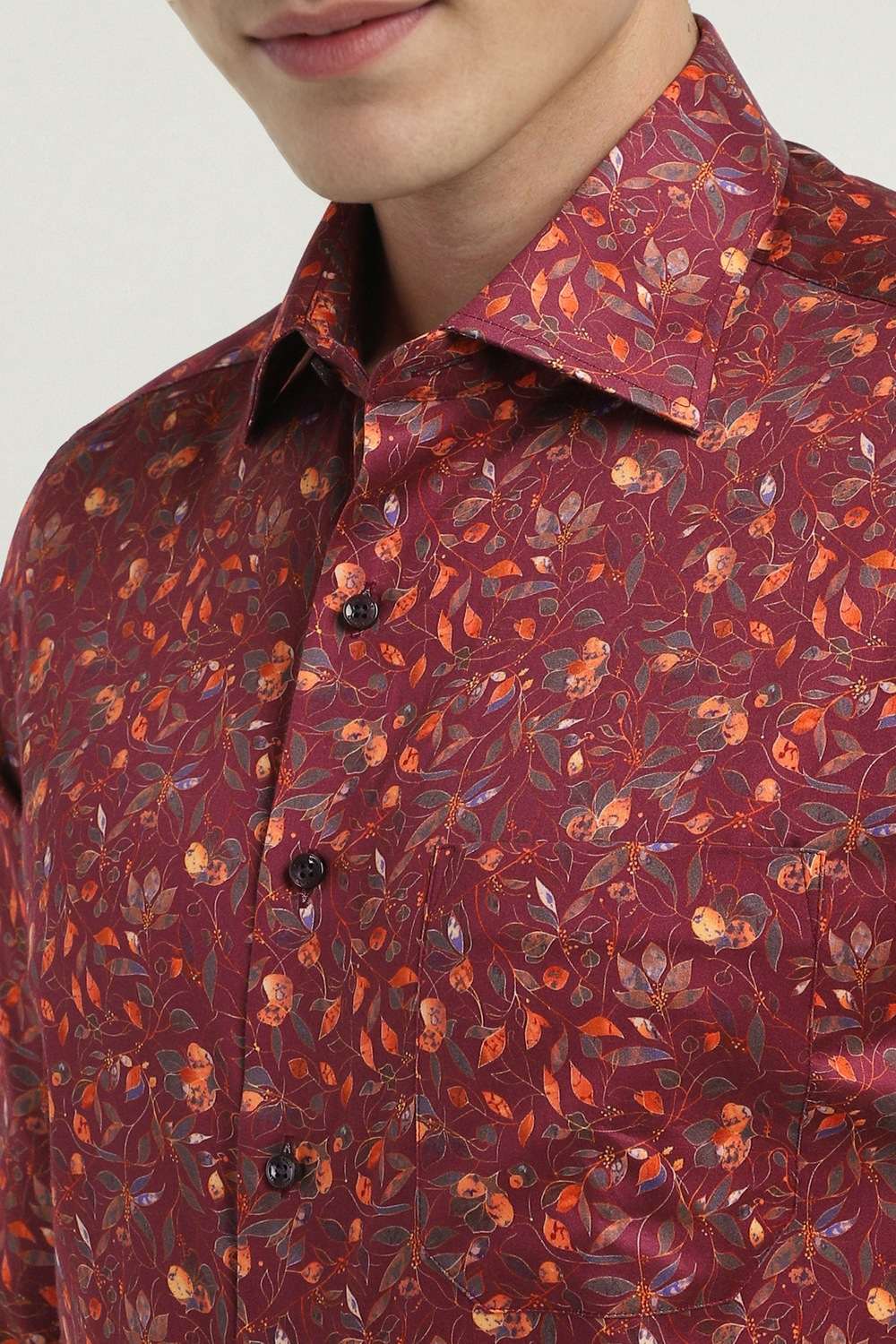 Elevate your formal wardrobe with the Allen Solly Sport maroon shirt. Crafted from premium cotton, it showcases a stylish printed design and a slim fit that flatters every silhouette. The full sleeves enhance both comfort and sophistication, making it ideal for formal events. This shirt seamlessly combines elegance and modern style, ensuring you stand out. Experience the perfect blend of quality and fashion with this versatile piece.