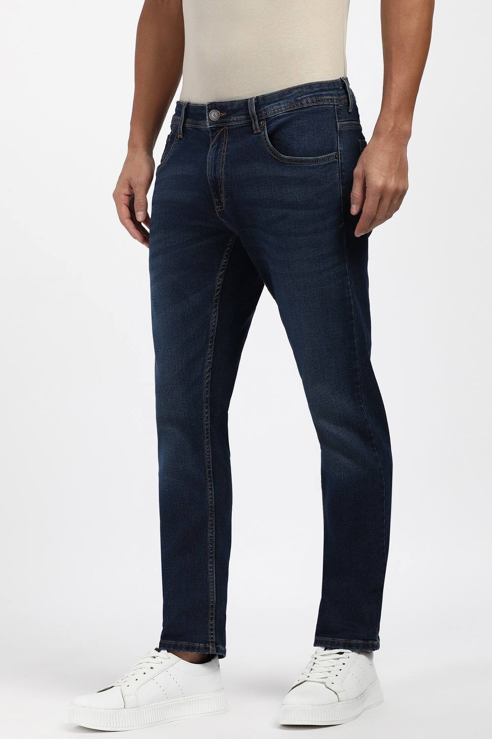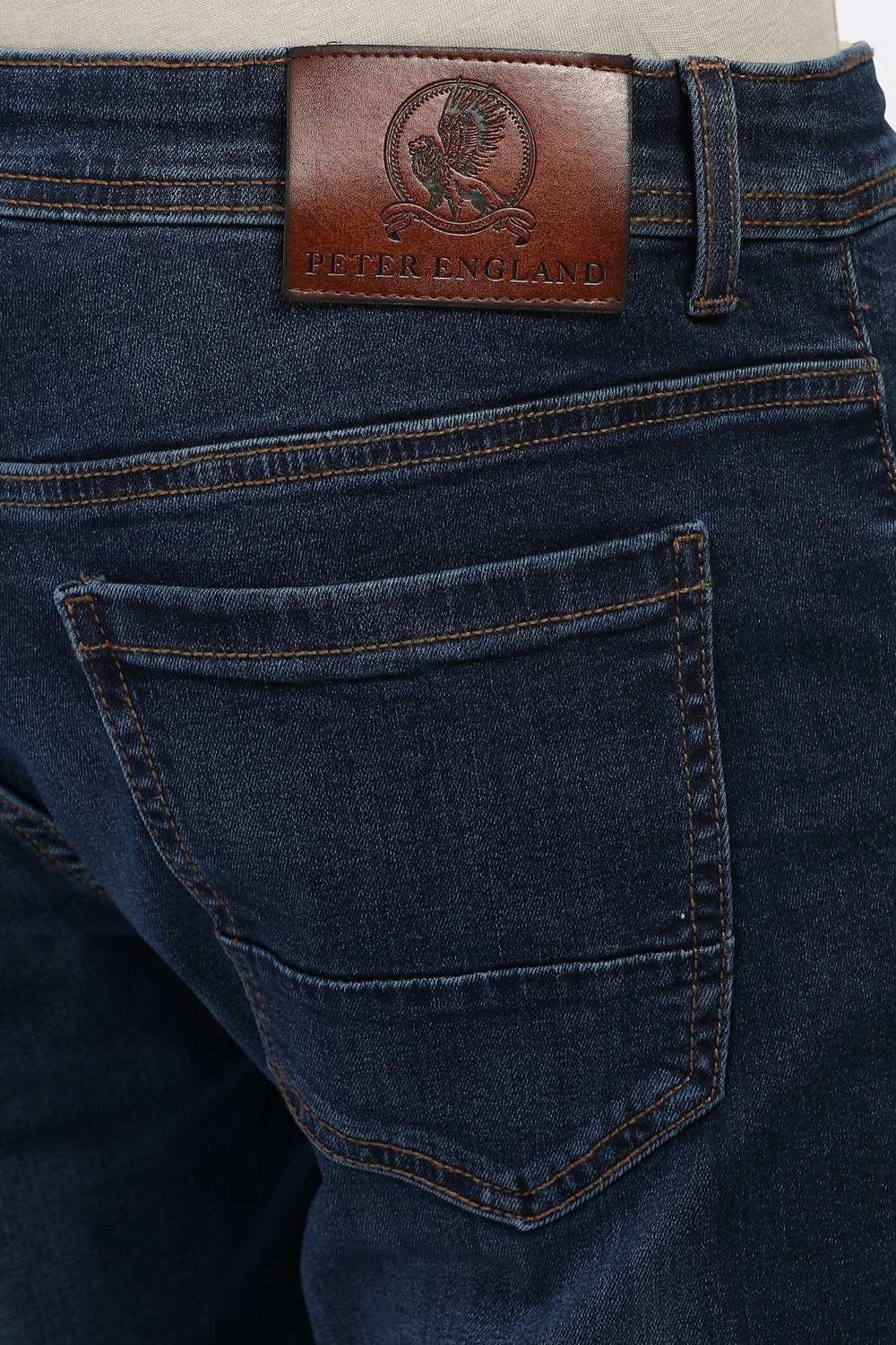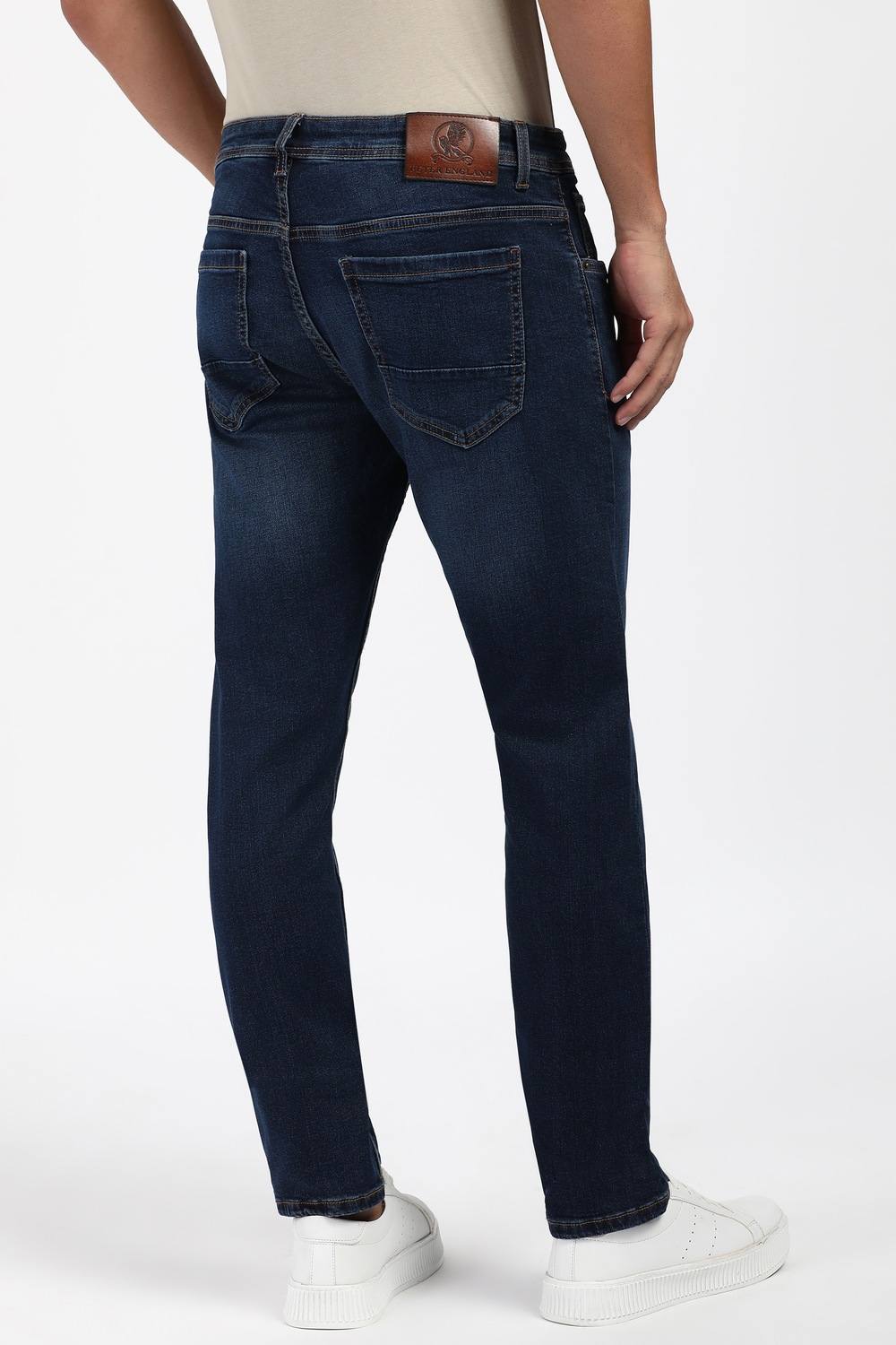 Elevate your casual wardrobe with these Peter England jeans in a stylish navy hue. Crafted from a comfortable blend of cotton and spandex, they offer a perfect balance of flexibility and durability. The mid wash enhances their relaxed appeal, making them ideal for everyday wear. With a modern fit that effortlessly complements your silhouette, these jeans are a must-have for a stylish yet comfortable look.