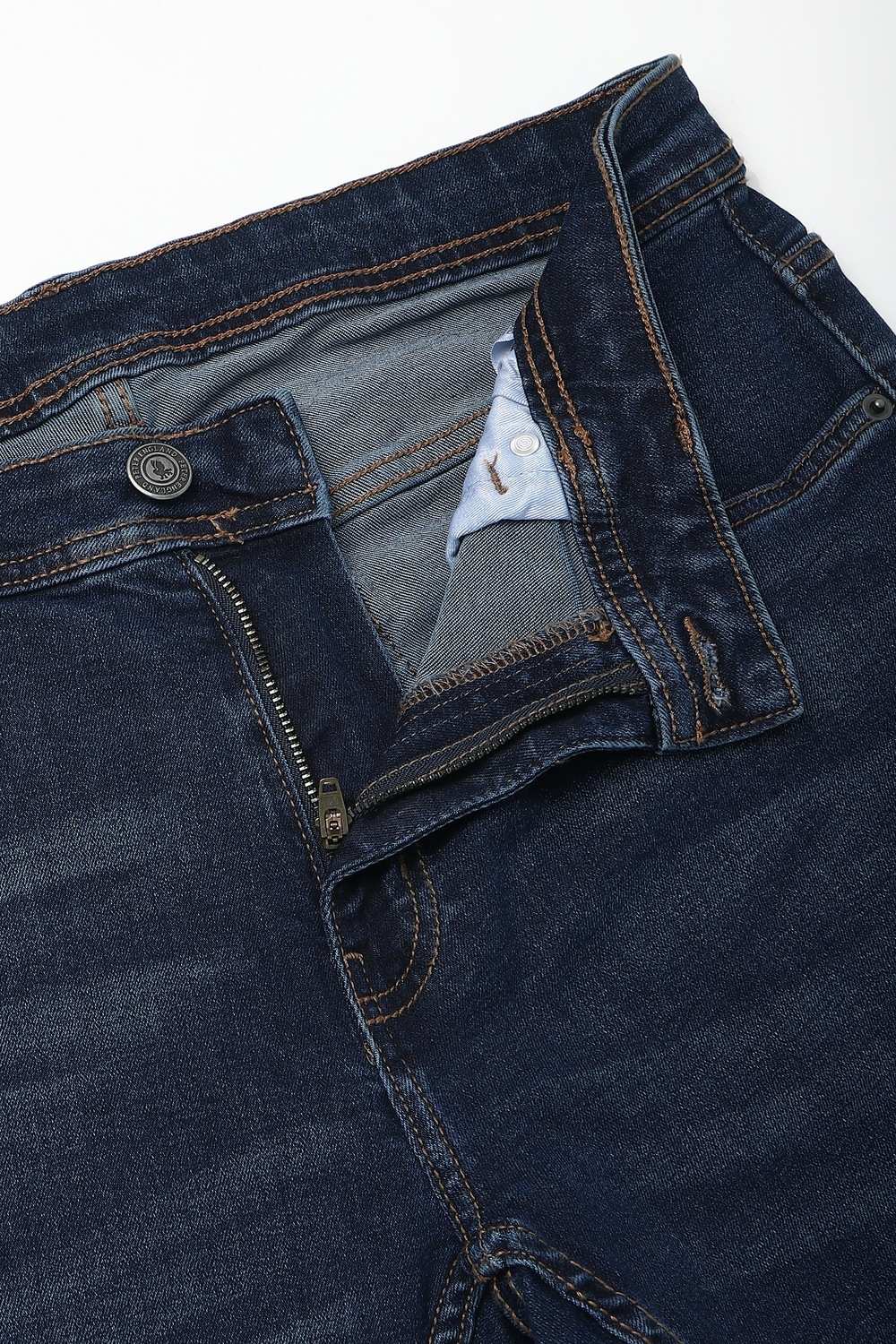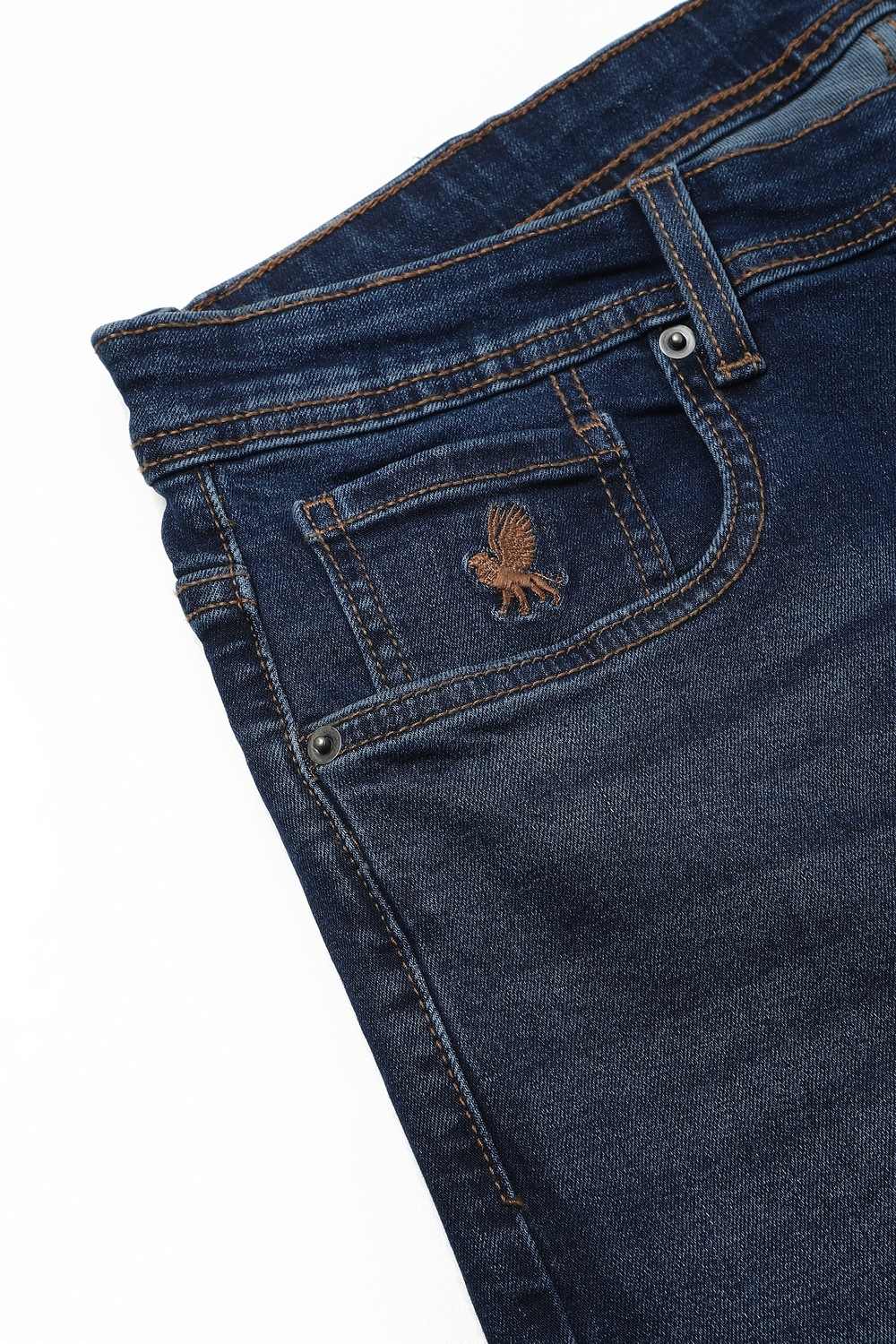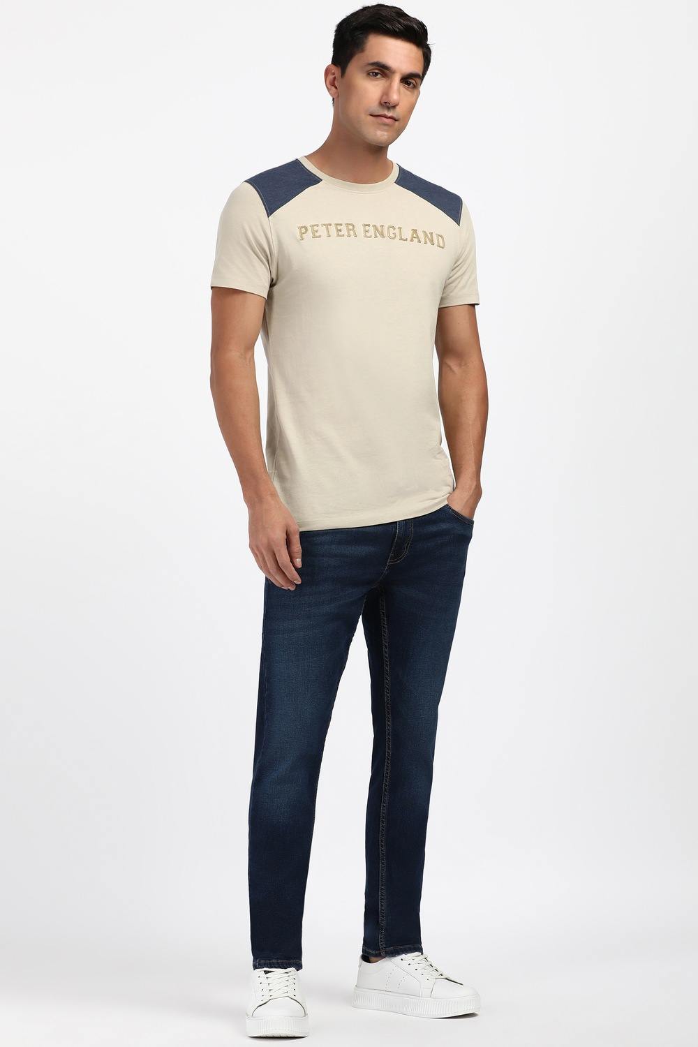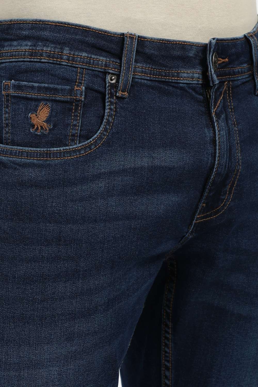 Elevate your casual wardrobe with these Peter England jeans in a stylish navy hue. Crafted from a comfortable blend of cotton and spandex, they offer a perfect balance of flexibility and durability. The mid wash enhances their relaxed appeal, making them ideal for everyday wear. With a modern fit that effortlessly complements your silhouette, these jeans are a must-have for a stylish yet comfortable look.