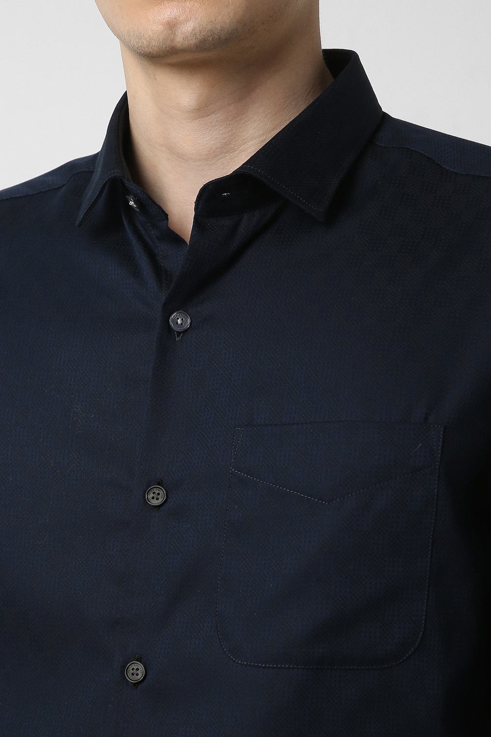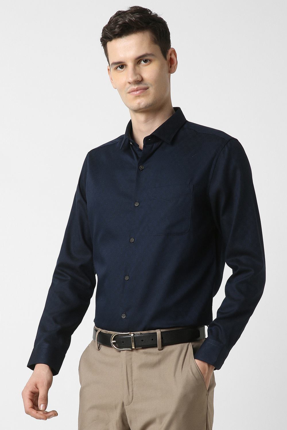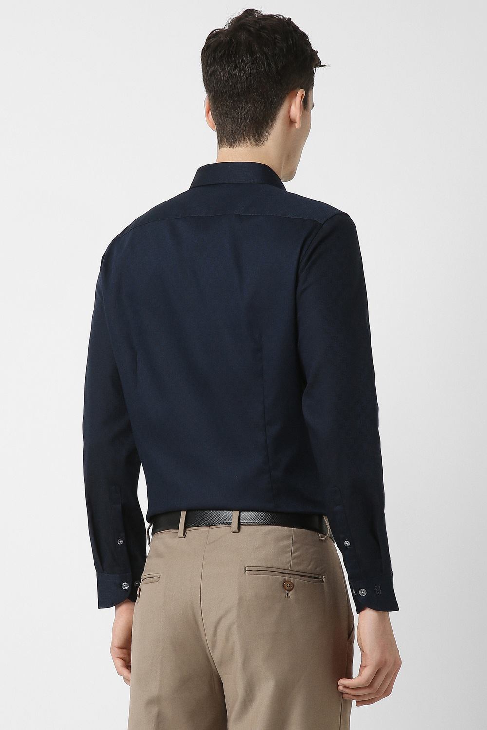 Elevate your formal wardrobe with the Peter England Elite full sleeves formal shirt in navy. Crafted from premium cotton, this slim fit shirt features a sophisticated textured pattern that ensures a refined look for any formal occasion. The full sleeves add an air of elegance, making it a perfect choice for business meetings or evening events. Experience the blend of comfort and style that enhances your sophisticated persona effortlessly.
