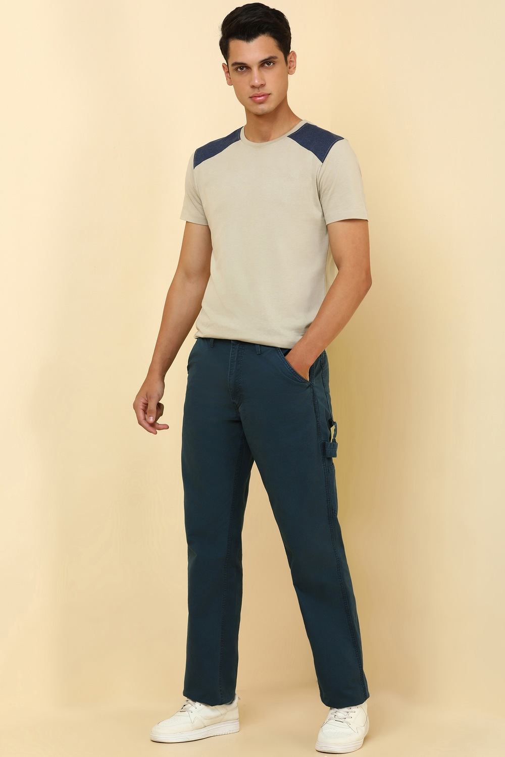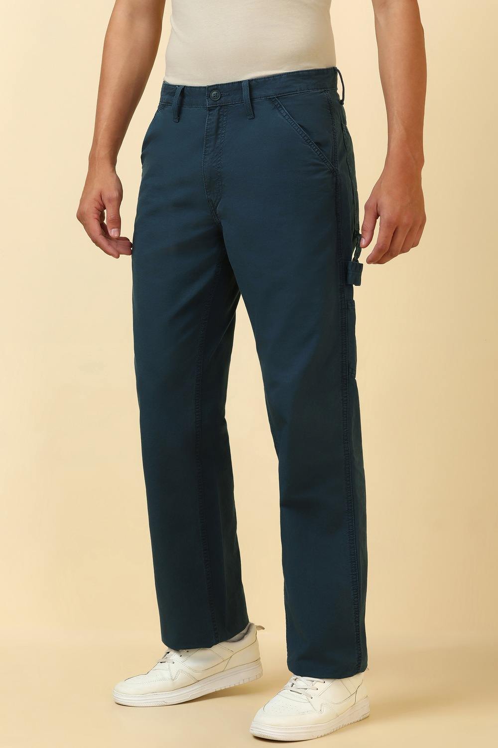 Crafted from soft cotton, these Allen Solly navy trousers offer a stylish yet comfortable fit, perfect for casual outings. Their solid color ensures versatility, allowing easy pairing with various tops. Designed for the modern man, these trousers seamlessly blend elegance and practicality, making them an essential addition to any wardrobe. Experience the allure of refined casual wear that complements your lifestyle effortlessly.
