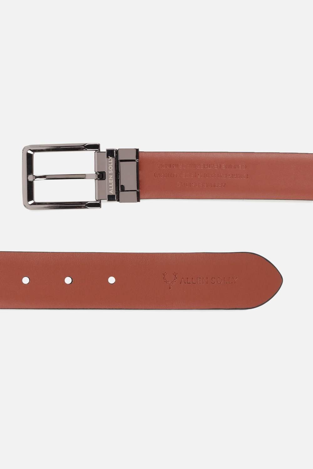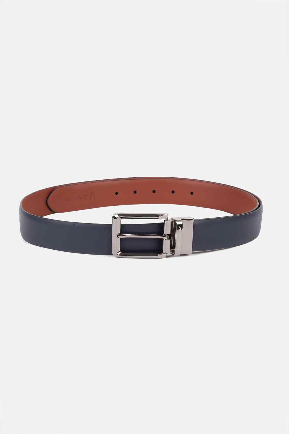 Elevate your formal wear with the Allen Solly navy leather belt. Crafted from premium leather, this solid-colored accessory offers a sophisticated finish to any outfit. The sleek design ensures versatility, making it perfect for both business and evening events. Its durable construction guarantees longevity while delivering unparalleled style. Complete your look with this essential belt that exudes elegance and class, elevating your wardrobe effortlessly.