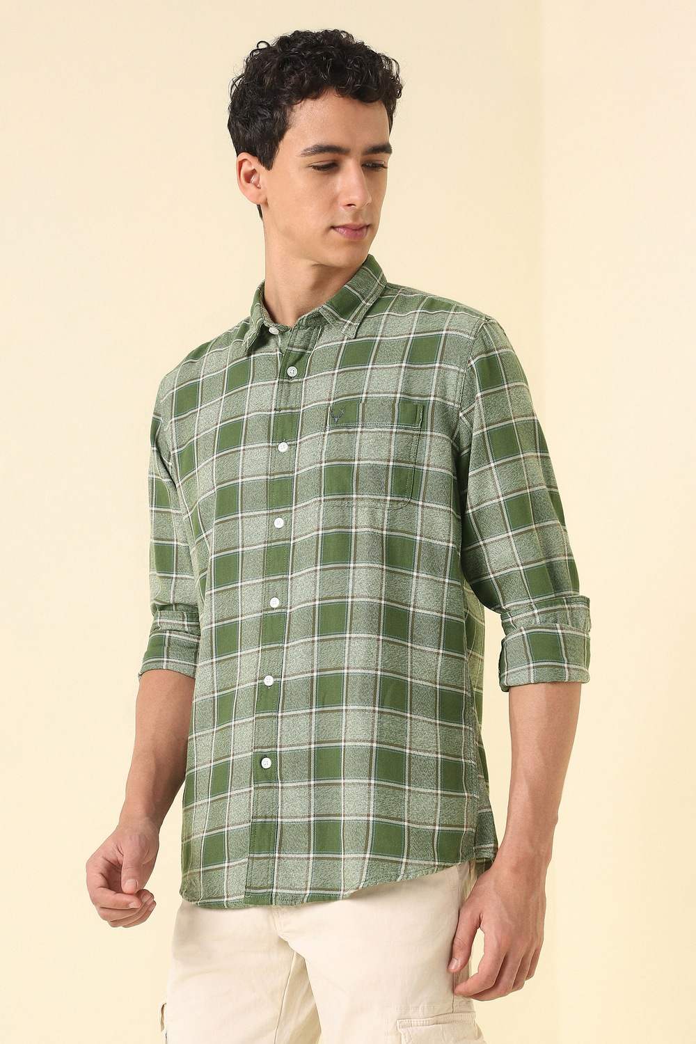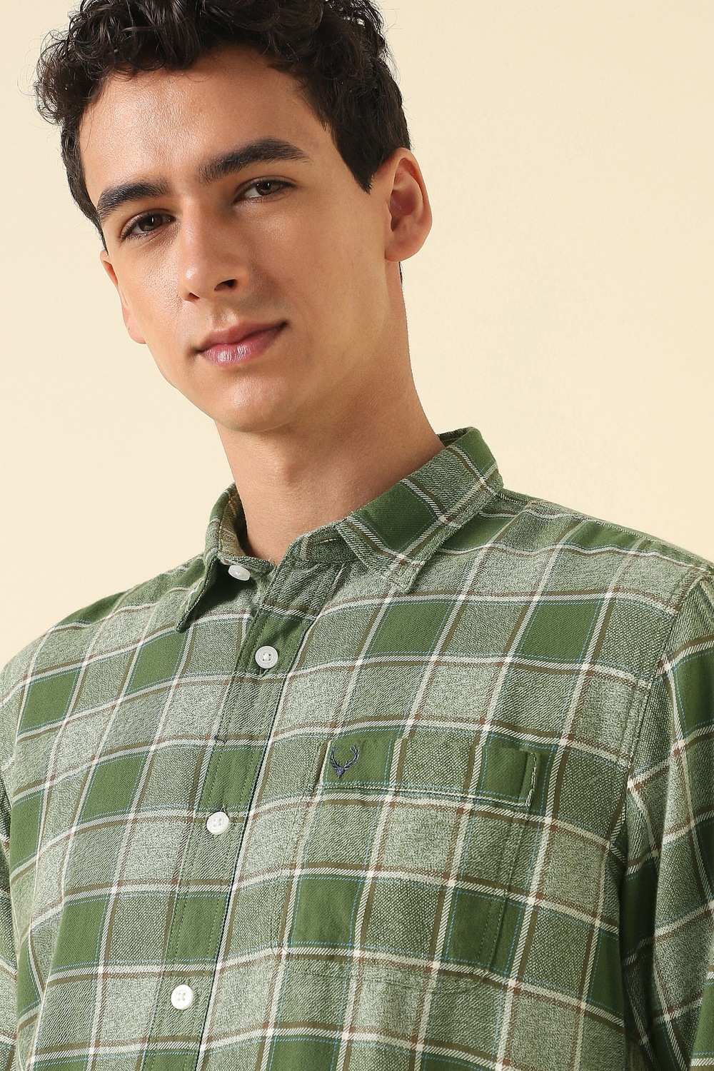 Embrace casual sophistication with the Allen Solly check shirt in a rich olive shade. Crafted from breathable cotton, this shirt ensures comfort throughout the day while adding a stylish element to your wardrobe. The timeless check pattern offers versatility, making it perfect for any casual occasion. Elevate your everyday style with this essential piece that seamlessly blends comfort and chic elegance. Discover how this shirt becomes a staple in your collection.