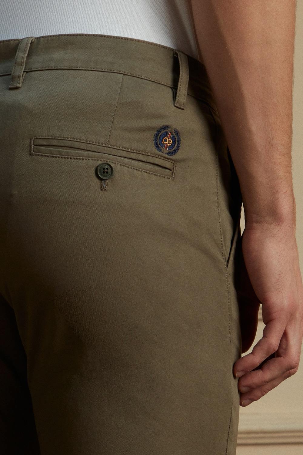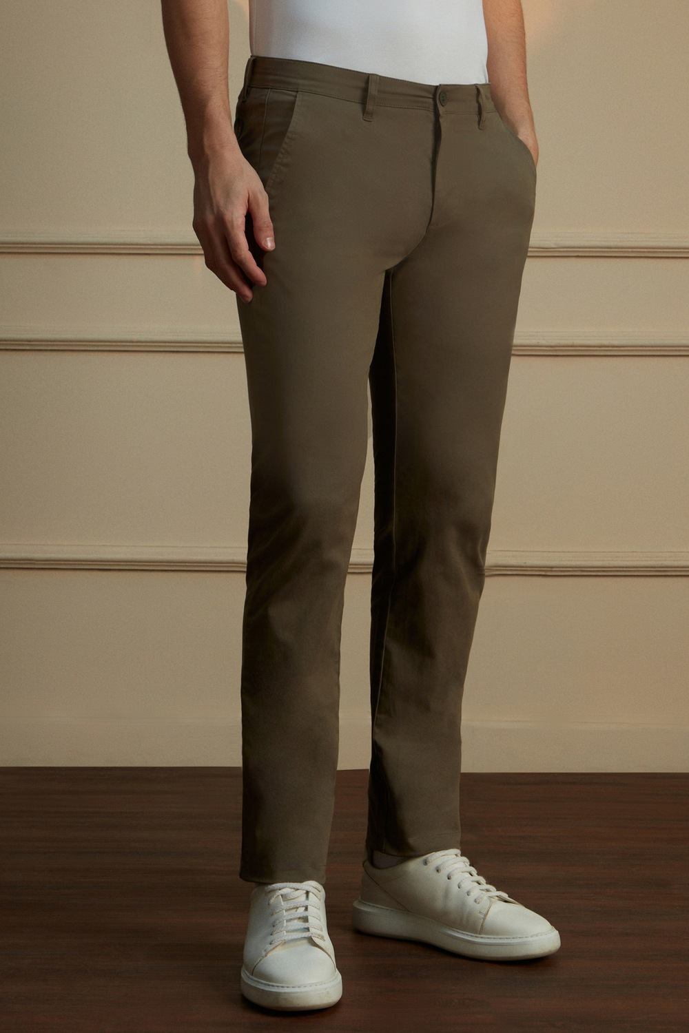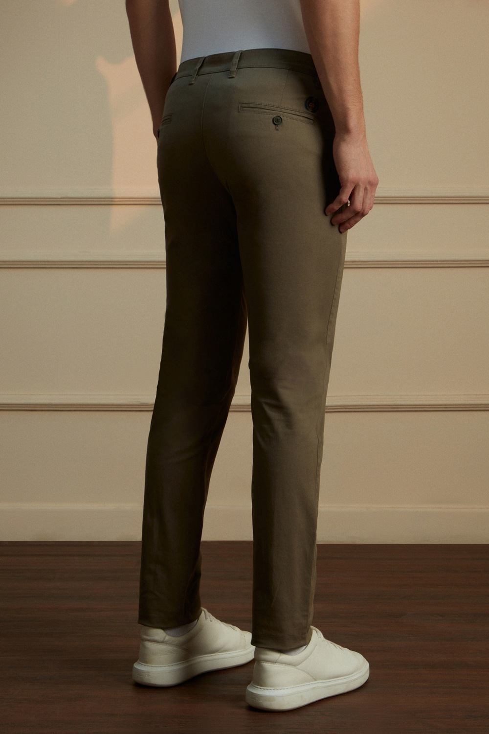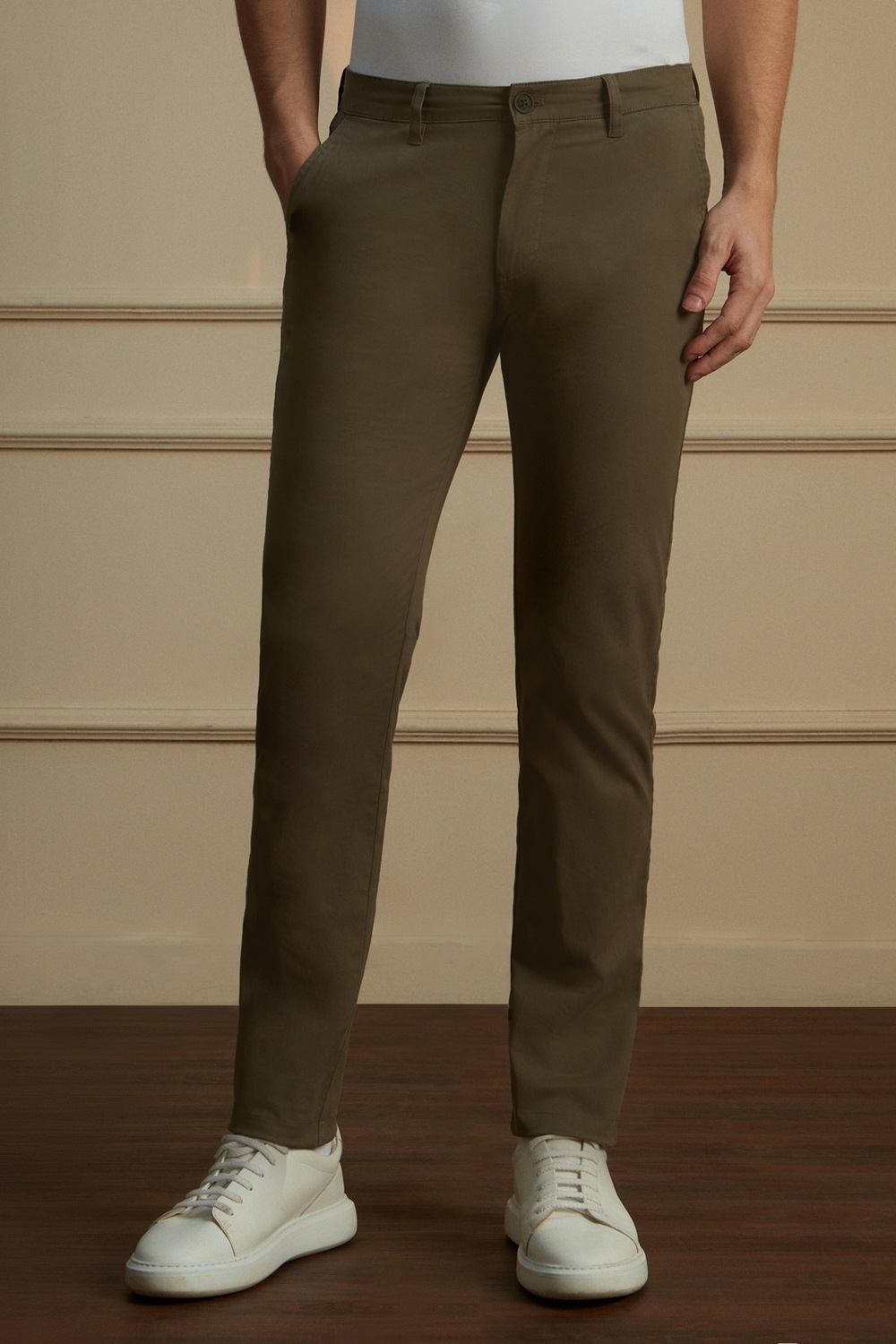 Introducing the Peter England Casuals olive super slim chinos, expertly crafted from a blend of cotton and spandex for ultimate comfort and flexibility. These solid-patterned trousers are a perfect choice for casual outings, providing a modern, tailored look that complements any ensemble. Featuring a flat front design, they ensure a polished appearance while allowing ease of movement. Elevate your casual wardrobe with these stylish essentials.
