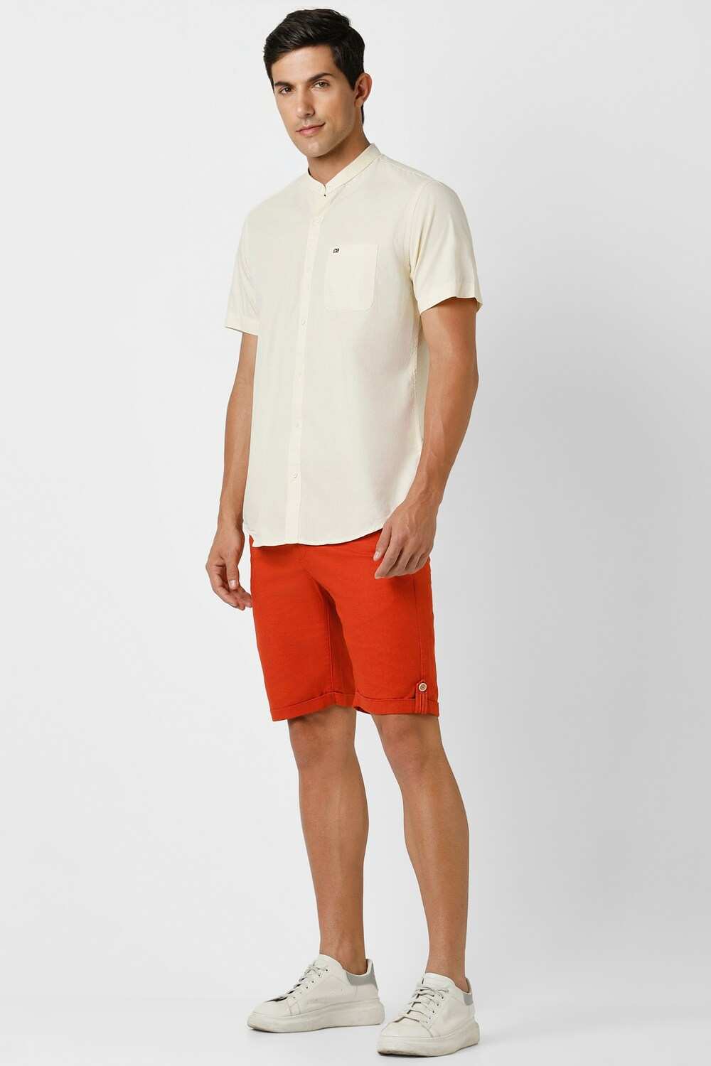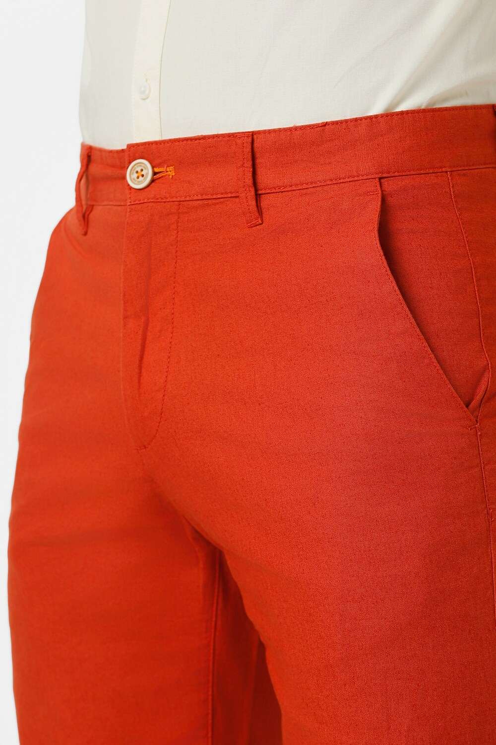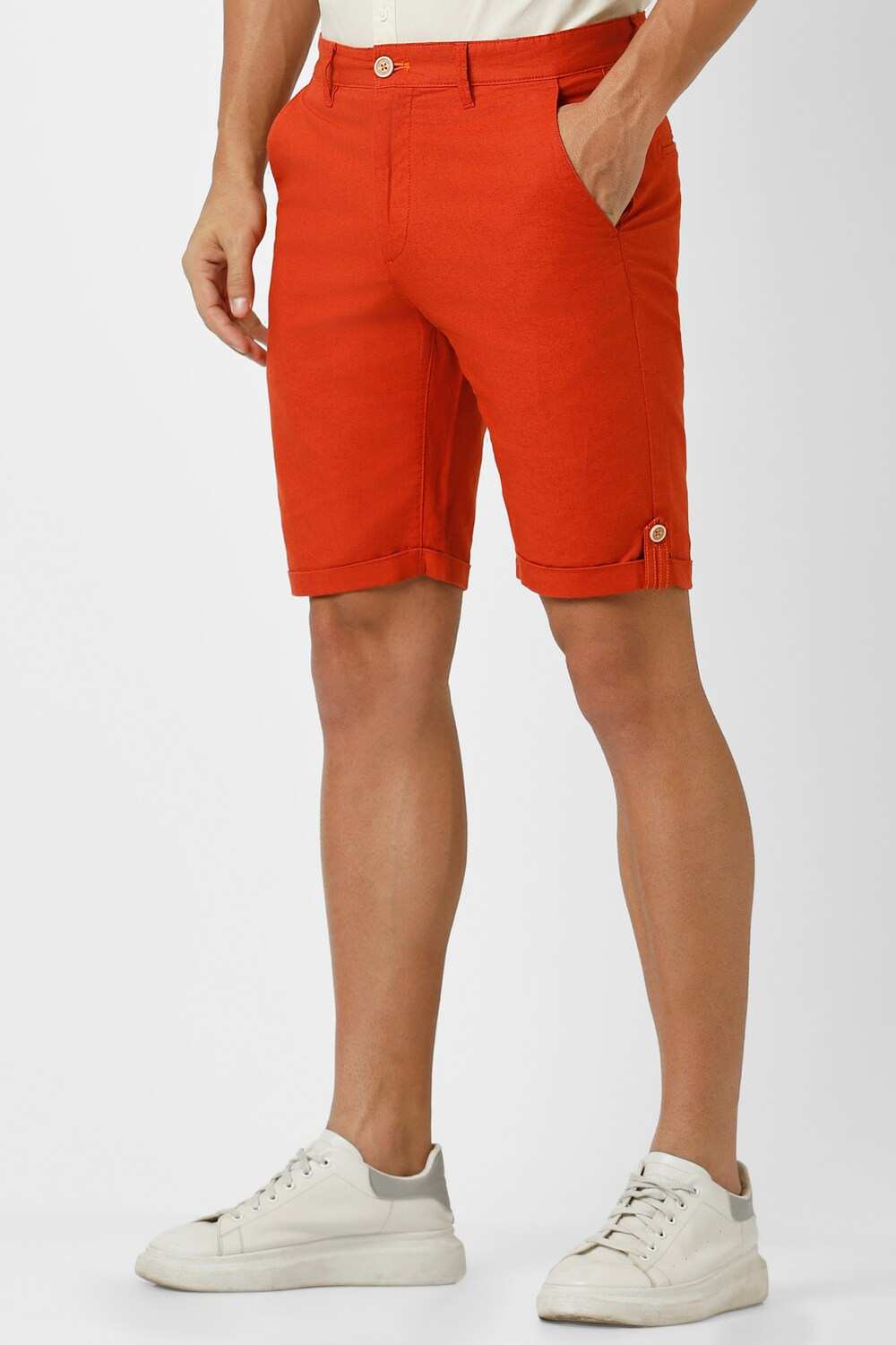 Experience comfort and style with Peter England Casuals men`s shorts. Crafted from a blend of linen and viscose, these solid orange shorts provide a regular fit, making them perfect for casual outings. The lightweight fabric offers breathability, ensuring you stay cool all day. Versatile and stylish, these shorts are an essential addition to your summer wardrobe, seamlessly transitioning from beach days to backyard BBQs. Embrace effortless style with every wear.