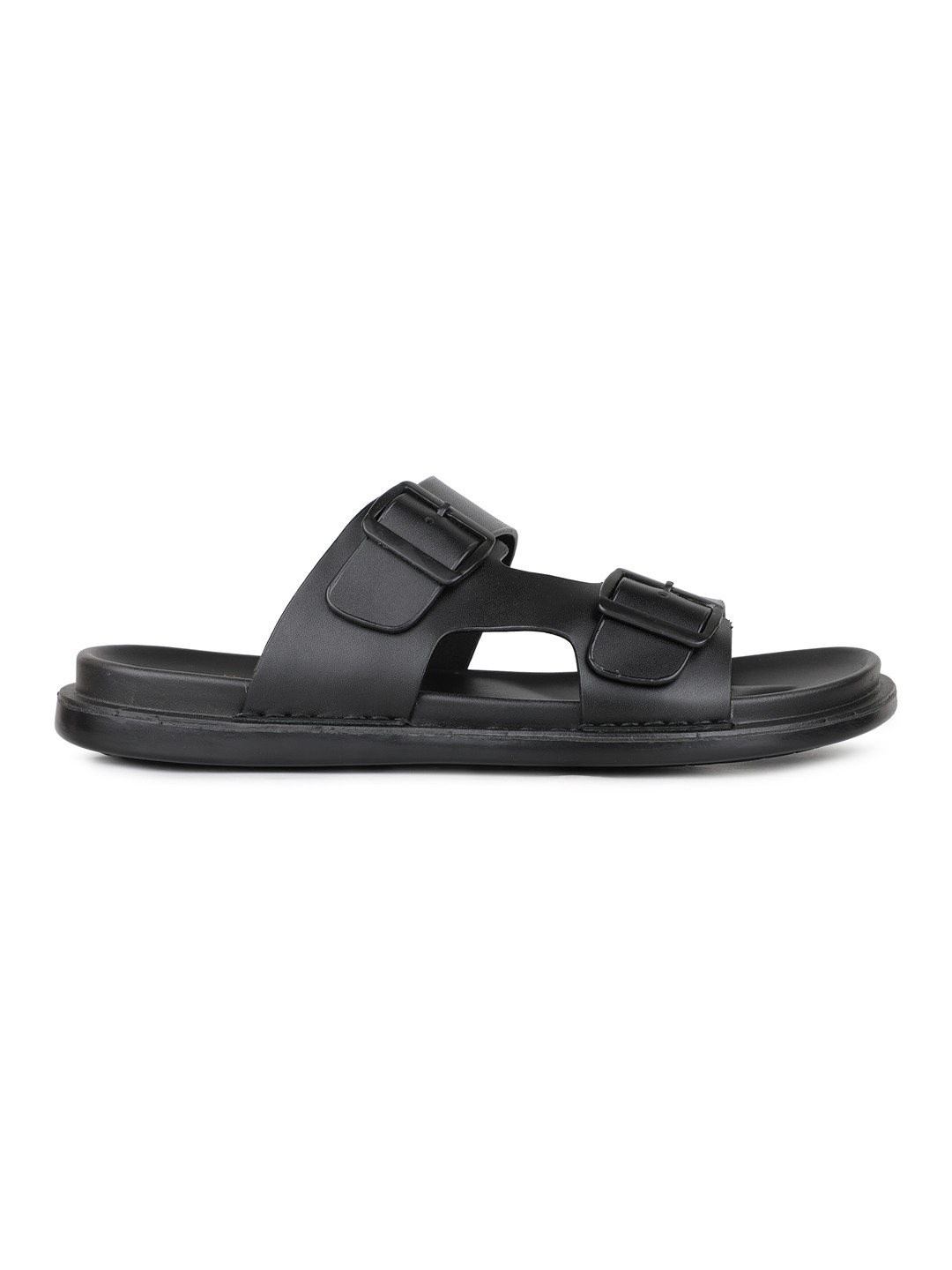 Mens Black Solid Round Toe Casual Flat Sandals