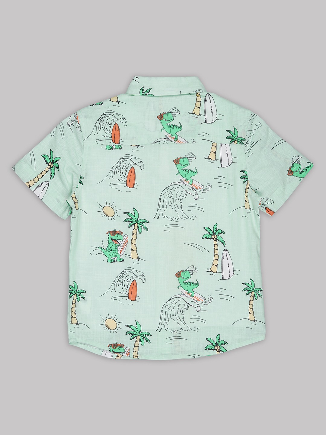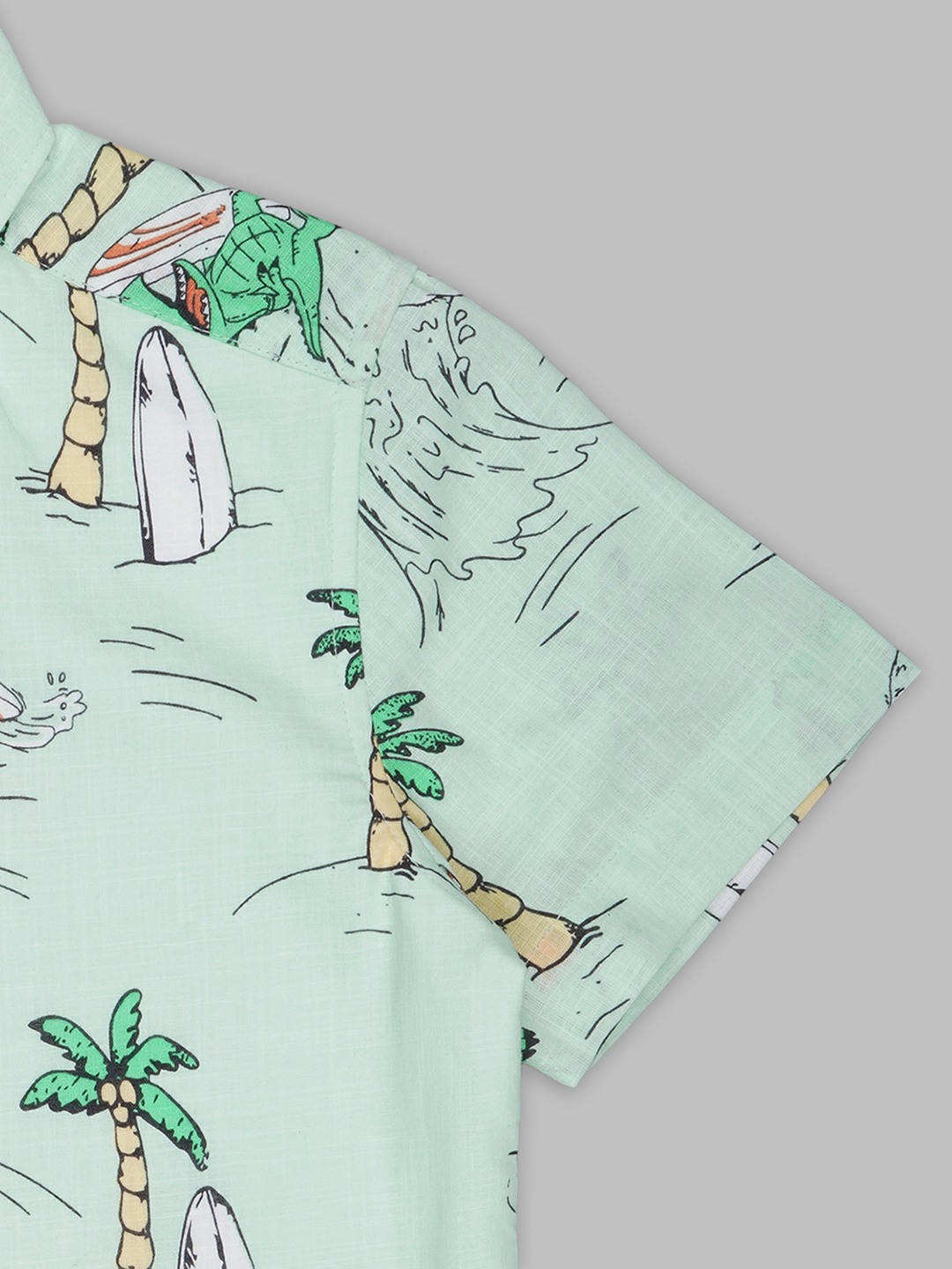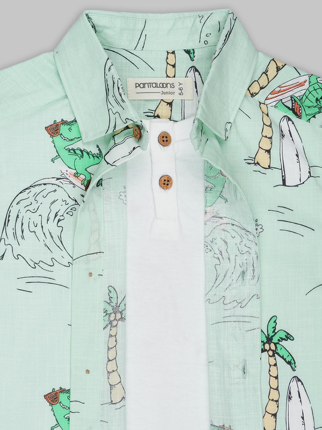 Set up with a smart layered look, this shirt delivers easy holiday energy in one piece. Designed with a collared neckline, half sleeves and an all-over tropical print, it features an attached solid white inner panel that creates a neat layered effect without added bulk. Made from a lightweight woven fabric that feels breathable and comfortable through the day.