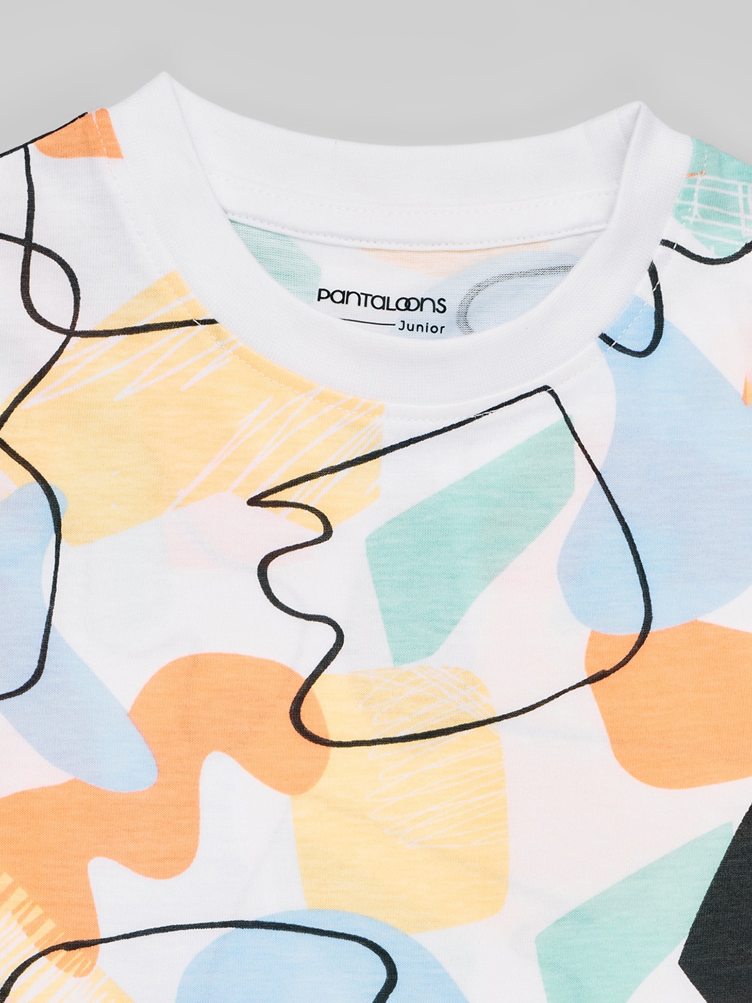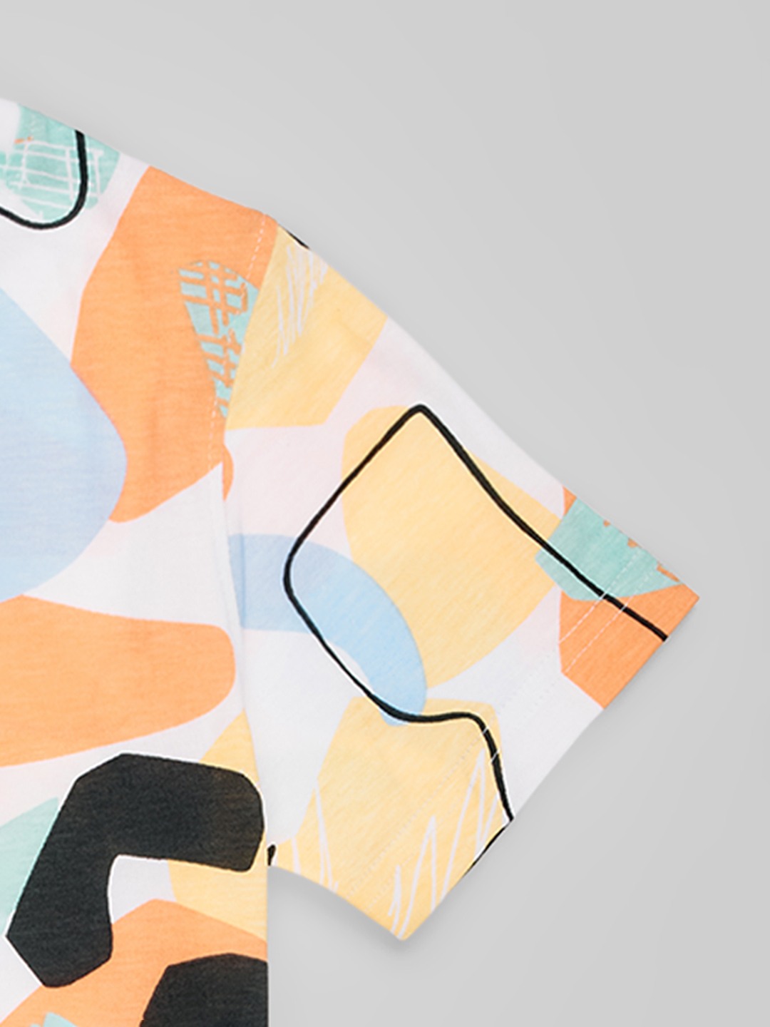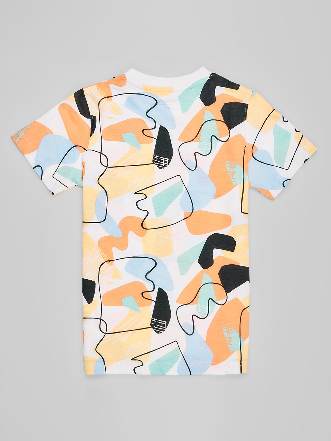 Vibrant and artsy, this T-shirt bursts with abstract shapes in pastel tones and bold outlines. Made from soft, breathable fabric with a crew neckline and half sleeves, it blends everyday comfort with creative flair. A standout piece that adds colour and personality to casual dressing.