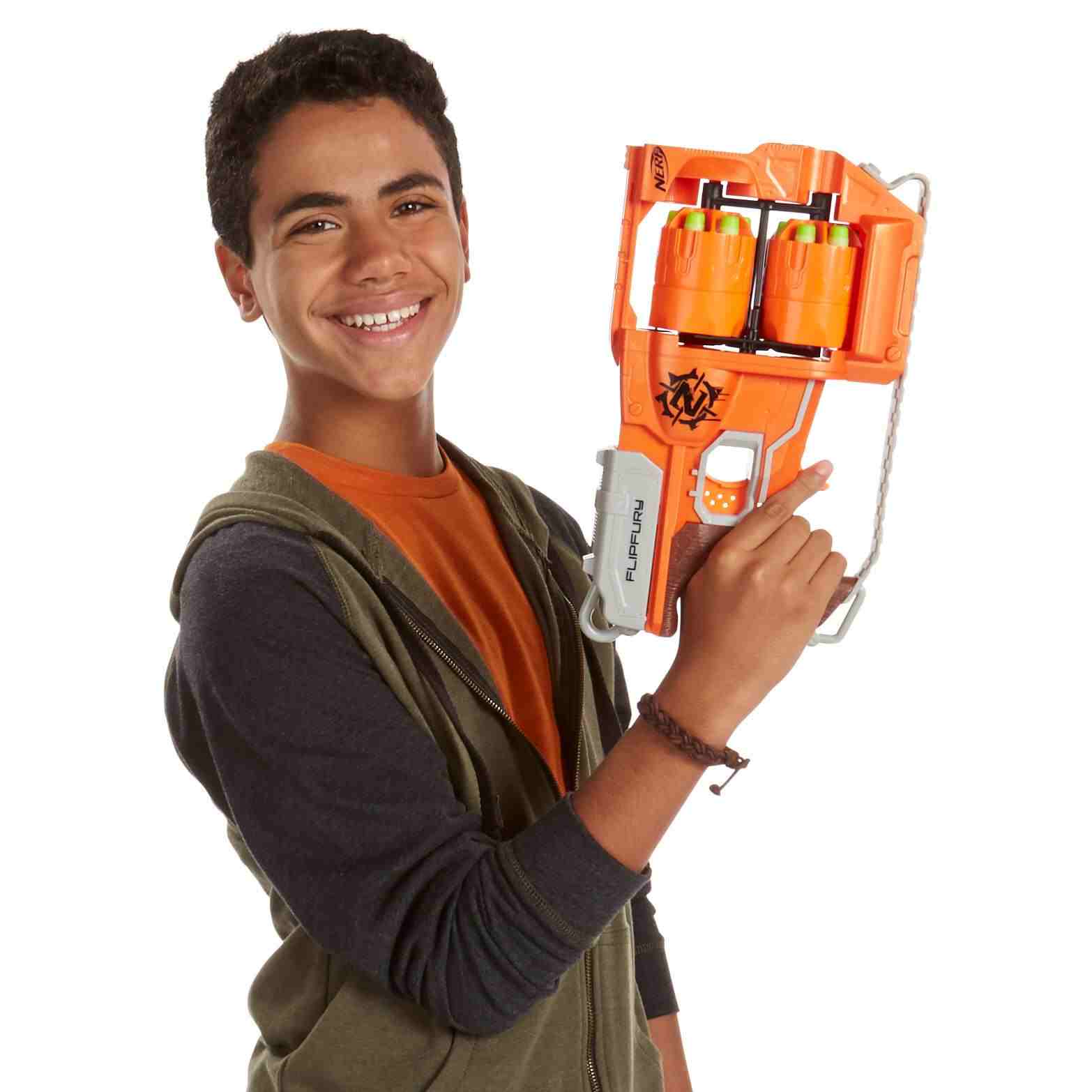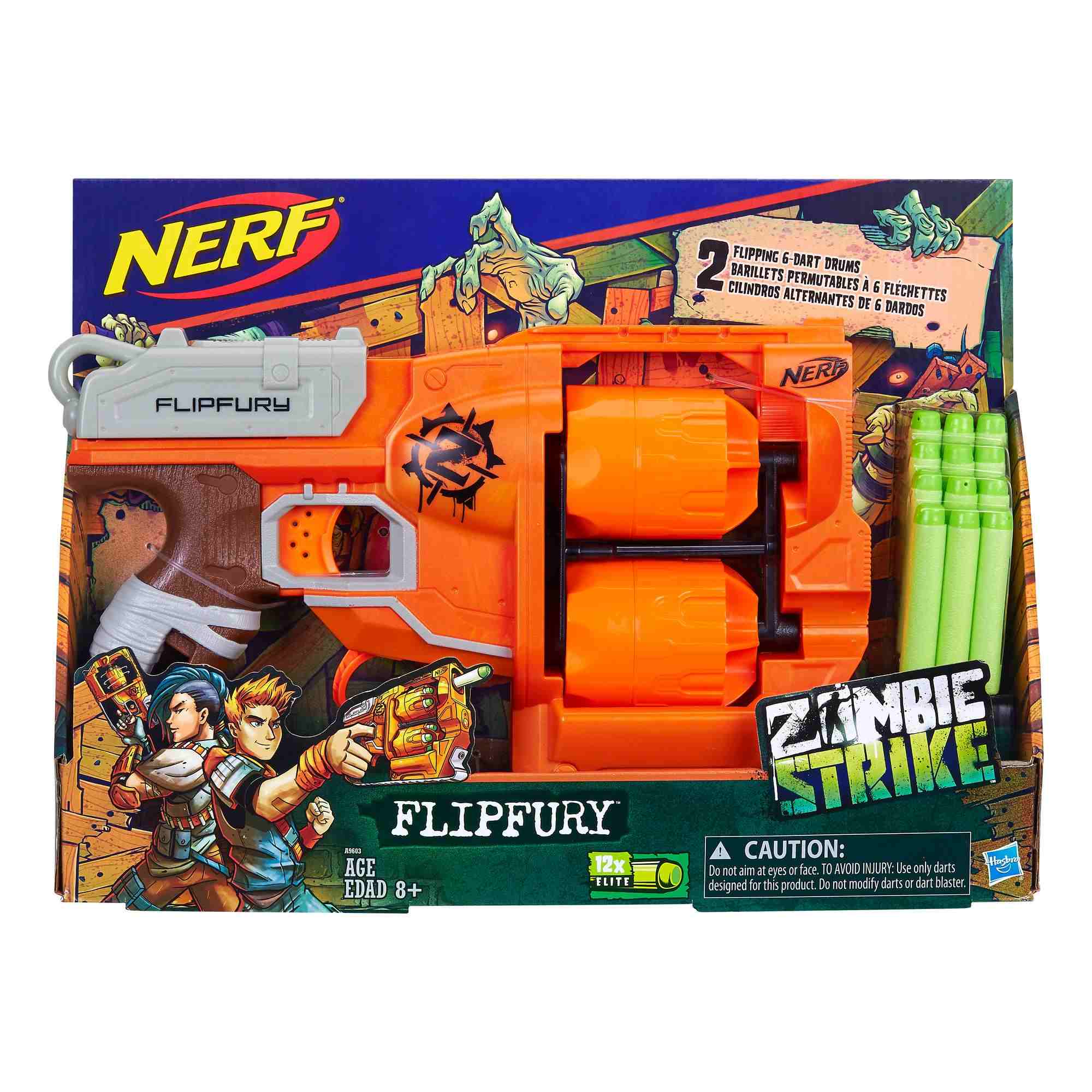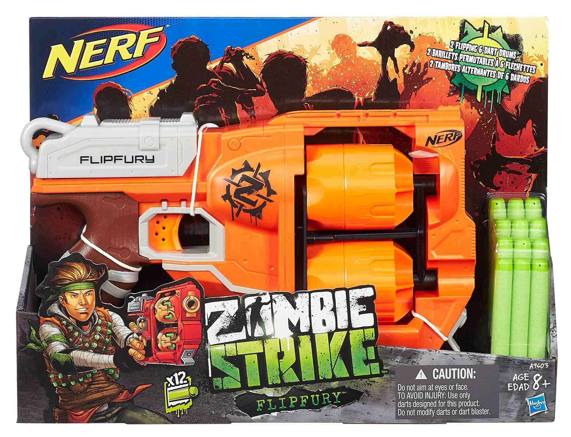 Experience non-stop zombie blasting action with the Nerf Zombie Strike Flipfury Blasters. These blasters feature dual flipping 6-dart drums, allowing you to fire 6 darts, flip the drums, and fire 6 more without pausing. With a total of 12 Zombie Strike darts included, you'll be well-equipped to take on any undead horde. Designed for boys aged 8 years and above, this blaster offers thrilling dart firing excitement, perfect for Nerf battles and zombie-themed play. It's easy to reload, operate, and customize with other Nerf accessories, making it a must-have for active play, improved hand-eye coordination, and imaginative gameplay. Get ready to unleash dart-flipping mayhem and conquer the zombie apocalypse!