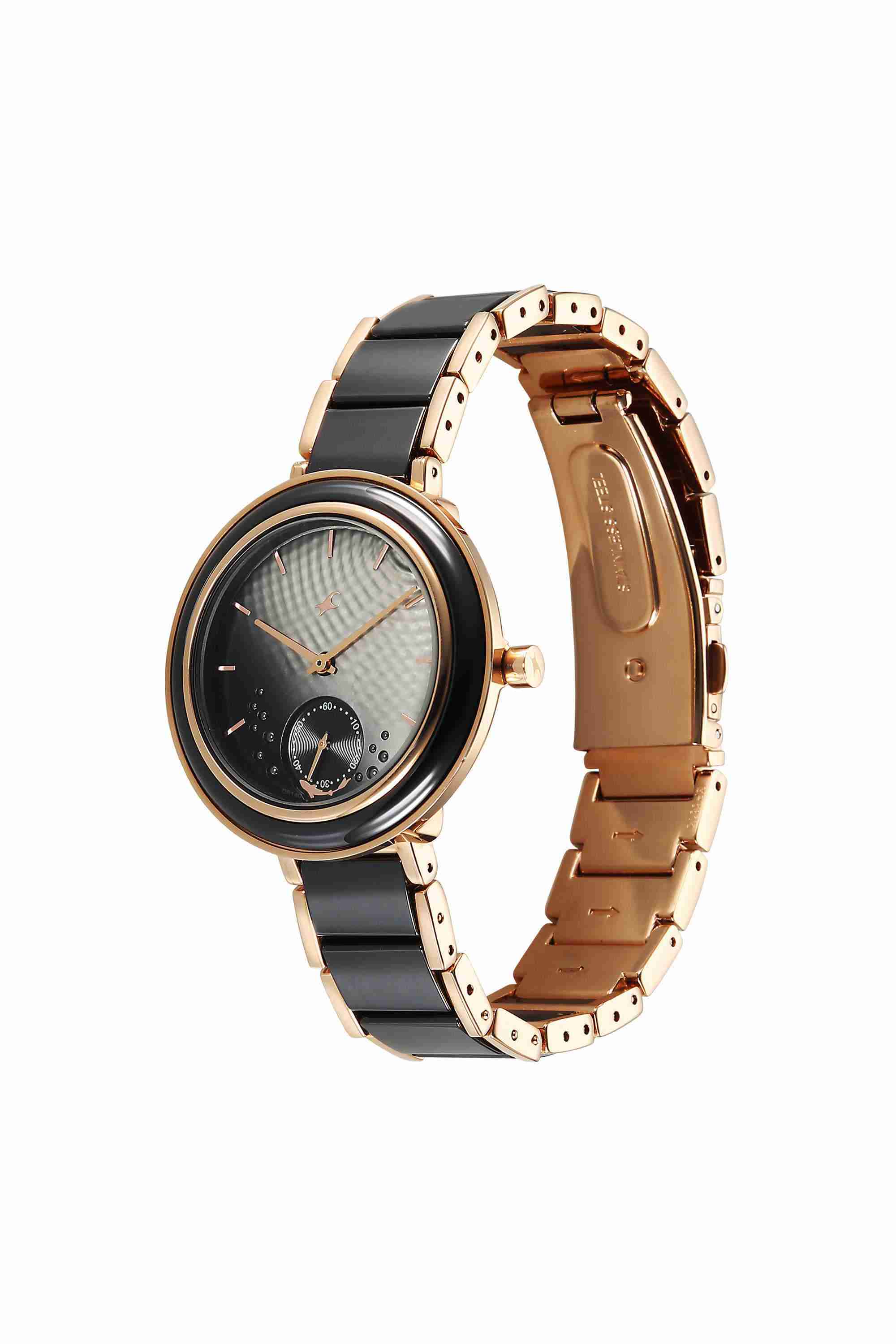 Home/Analog Watches/fastrack/oceanic 37.5 mm black dial brass analogue wrist watch for women - 6315kd03