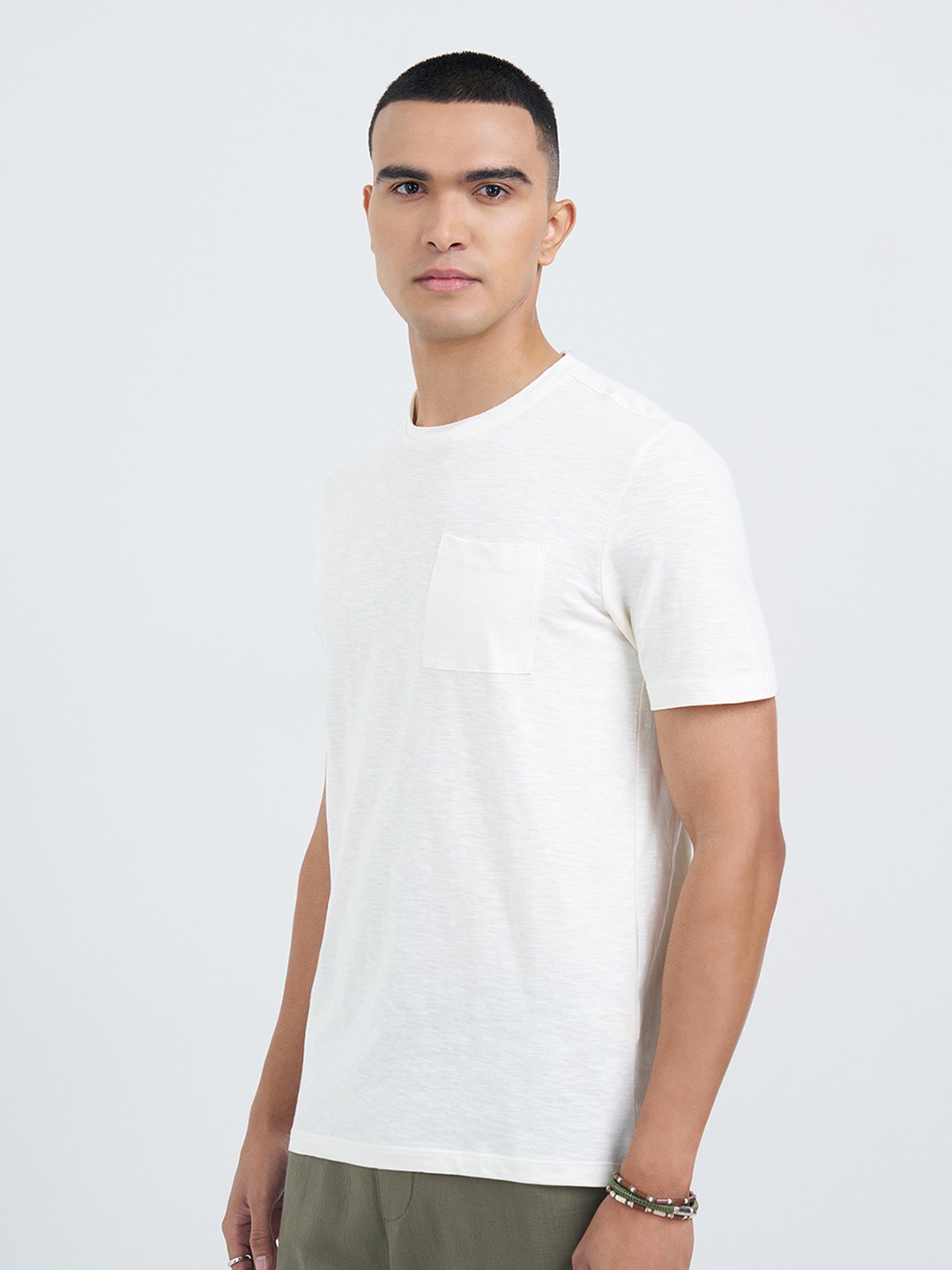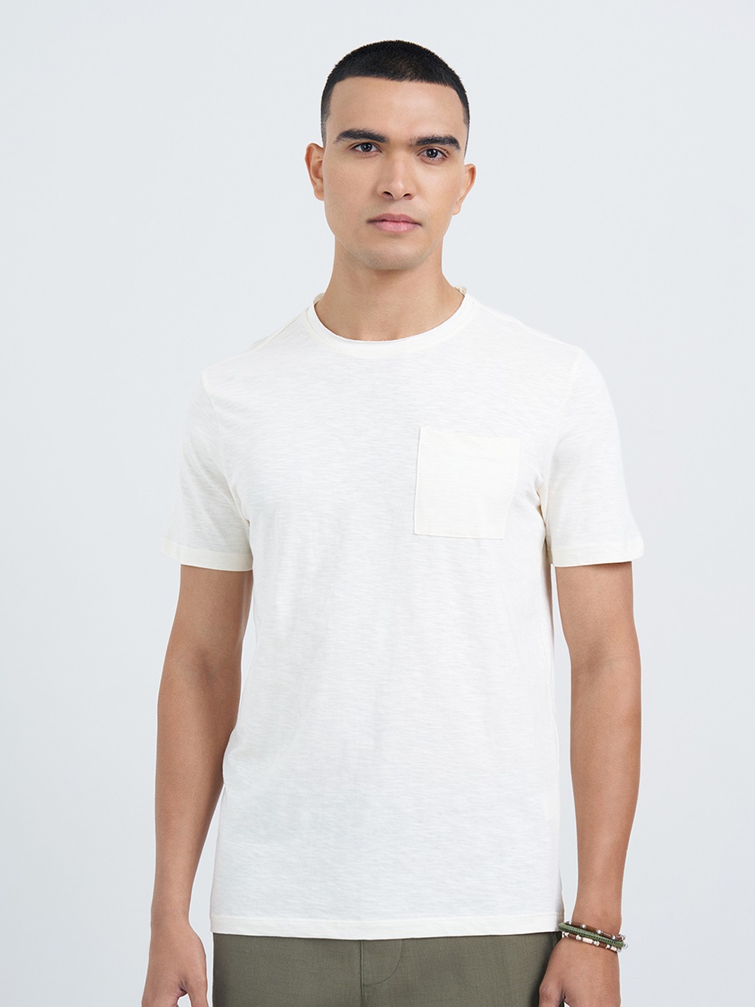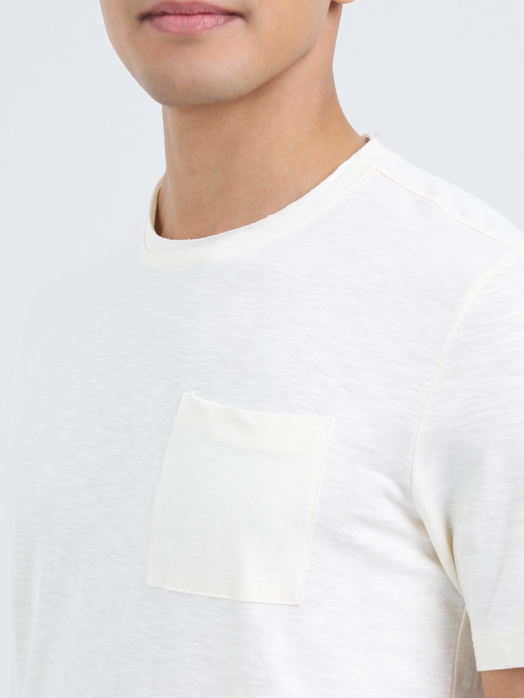 Stripped back and intentional, this essential piece focuses on clean lines and everyday versatility. Designed with a crew neckline and half sleeves, it features a single chest pocket that adds subtle utility without disrupting the minimal silhouette. The smooth knit construction keeps the look easy, breathable and endlessly wearable.