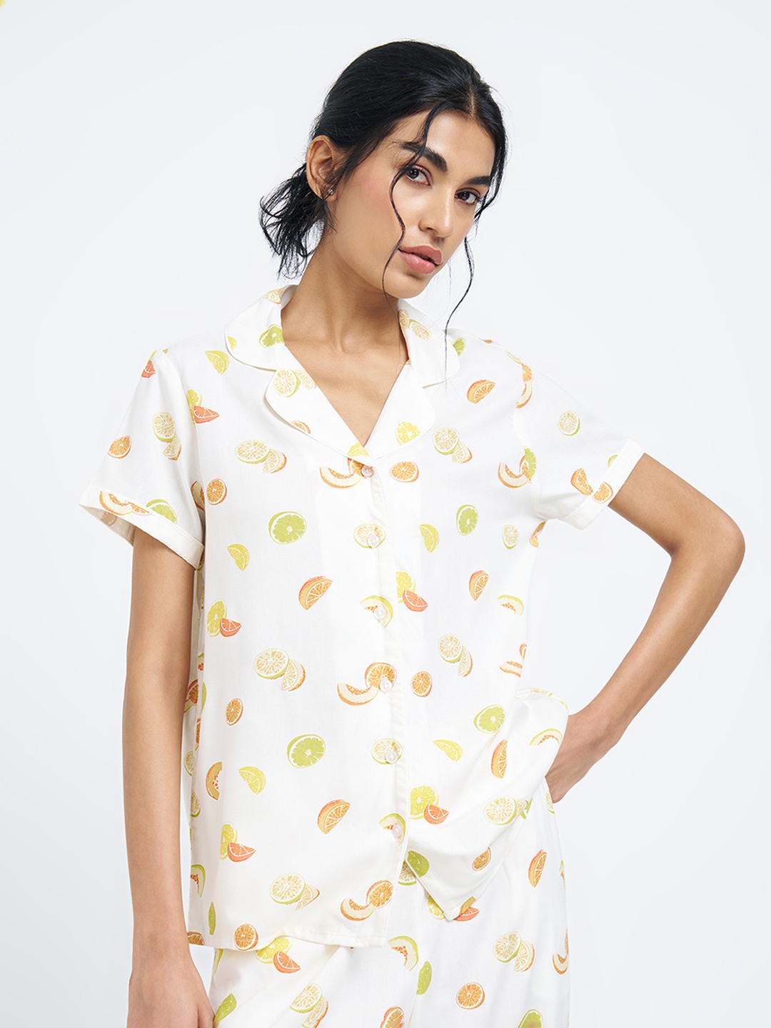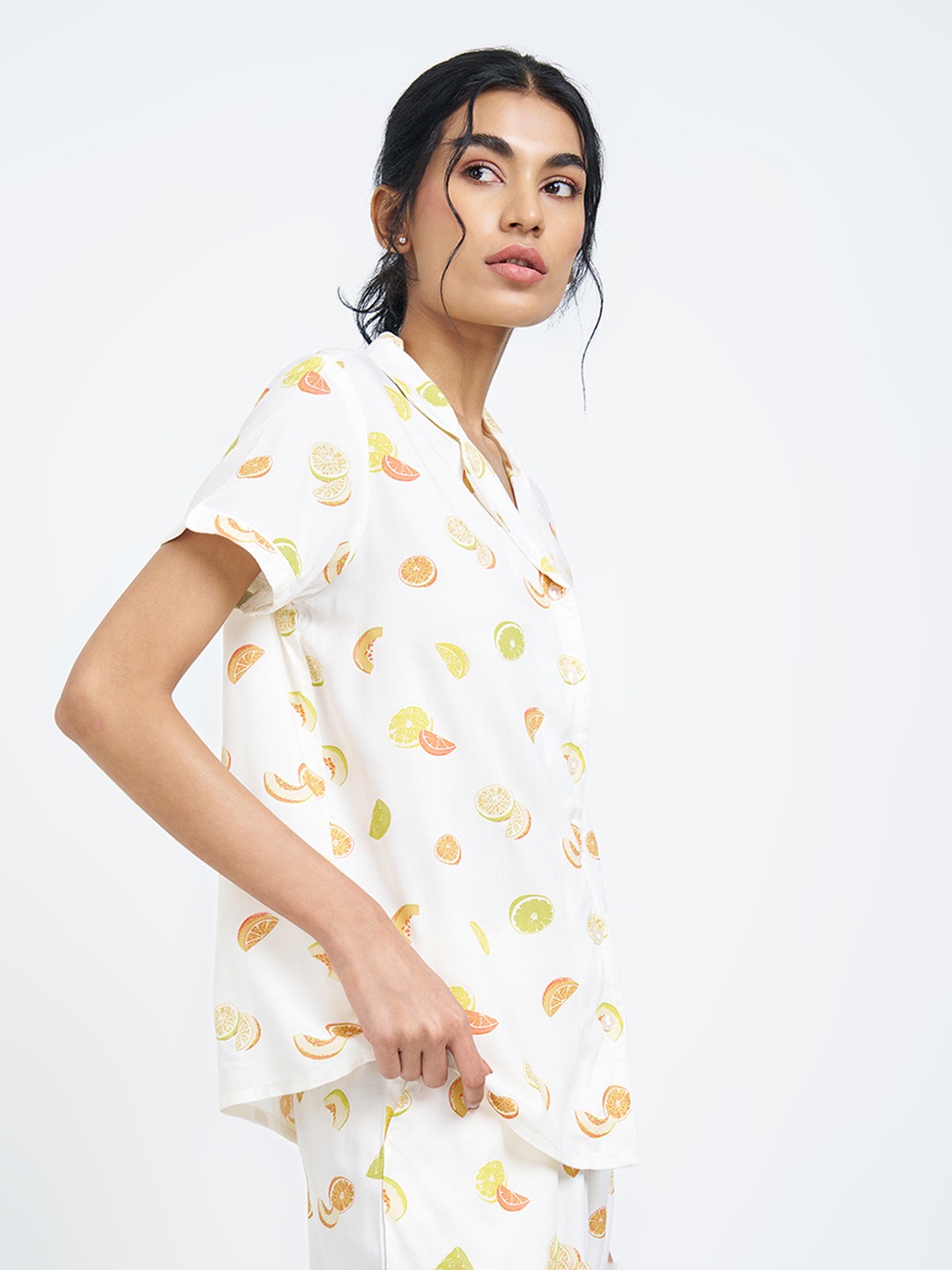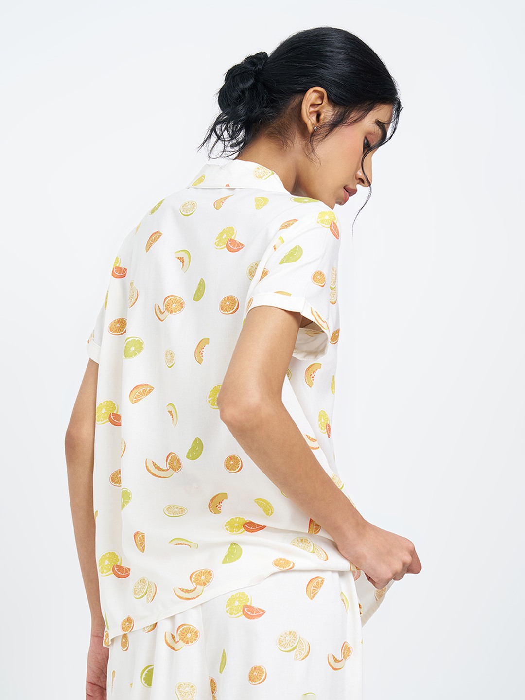 Find your Zen in our laid-back tops. This shirt has a camp collar with a button placket, half sleeves and an easy body with a fresh all-over print. Crafted with excellent quality fabric, this shirt will surely become your ultimate choice for relaxing.