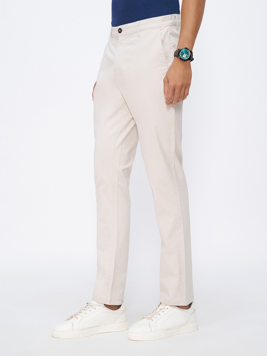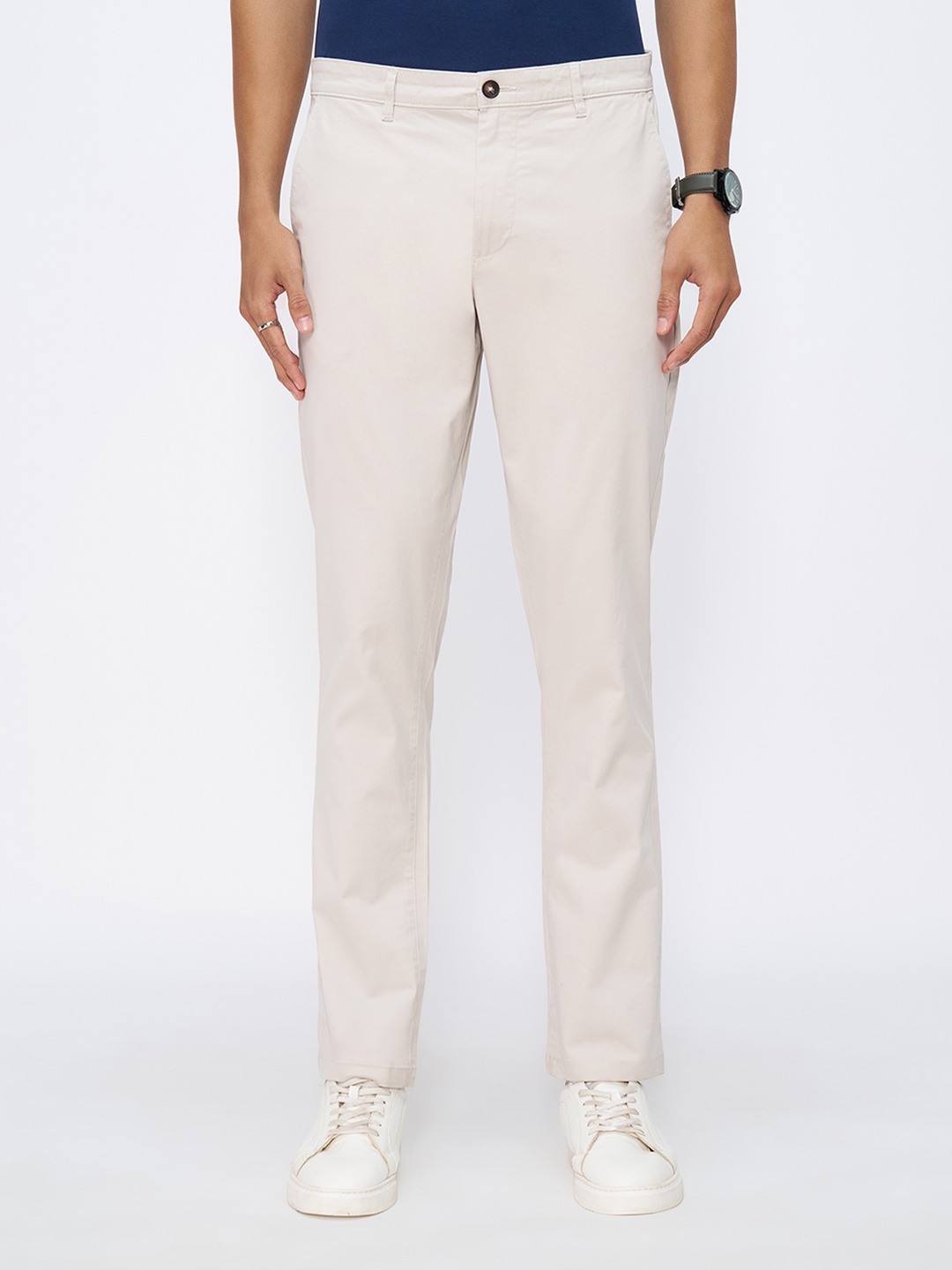 Clean tailoring and a versatile neutral tone define these slim fit chinos with a refined everyday appeal. Cut to sit neatly through the leg, they feature a flat front, belt loops, and a secure button-zip fastening, delivering a sharp yet easy silhouette. The twill fabric keeps the look crisp while remaining comfortable for long hours of wear.