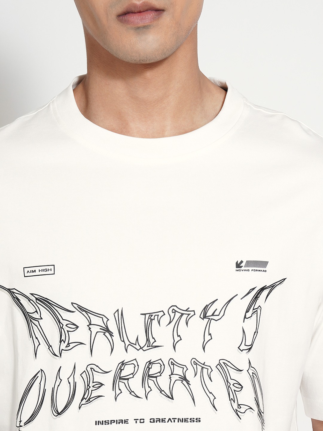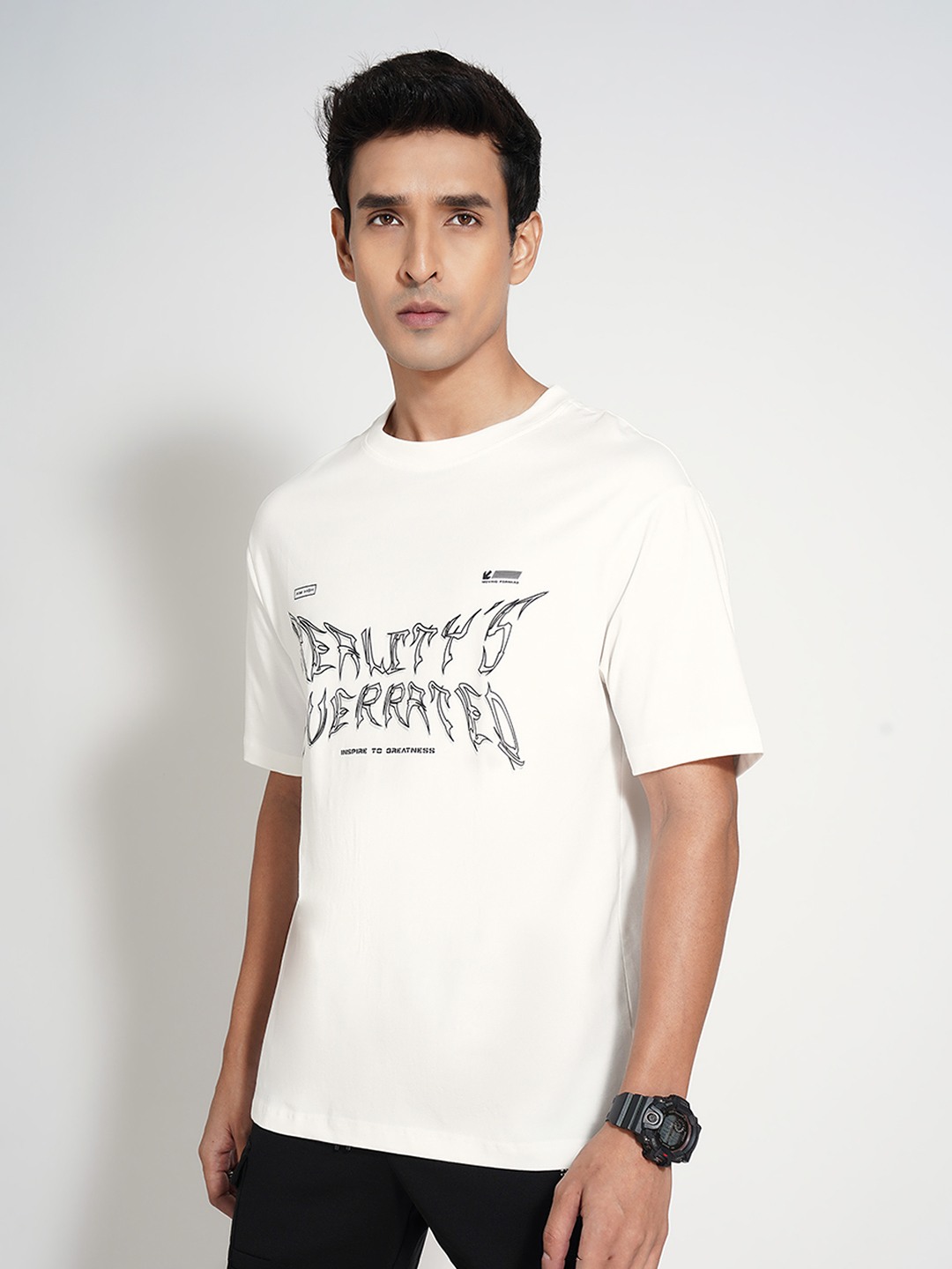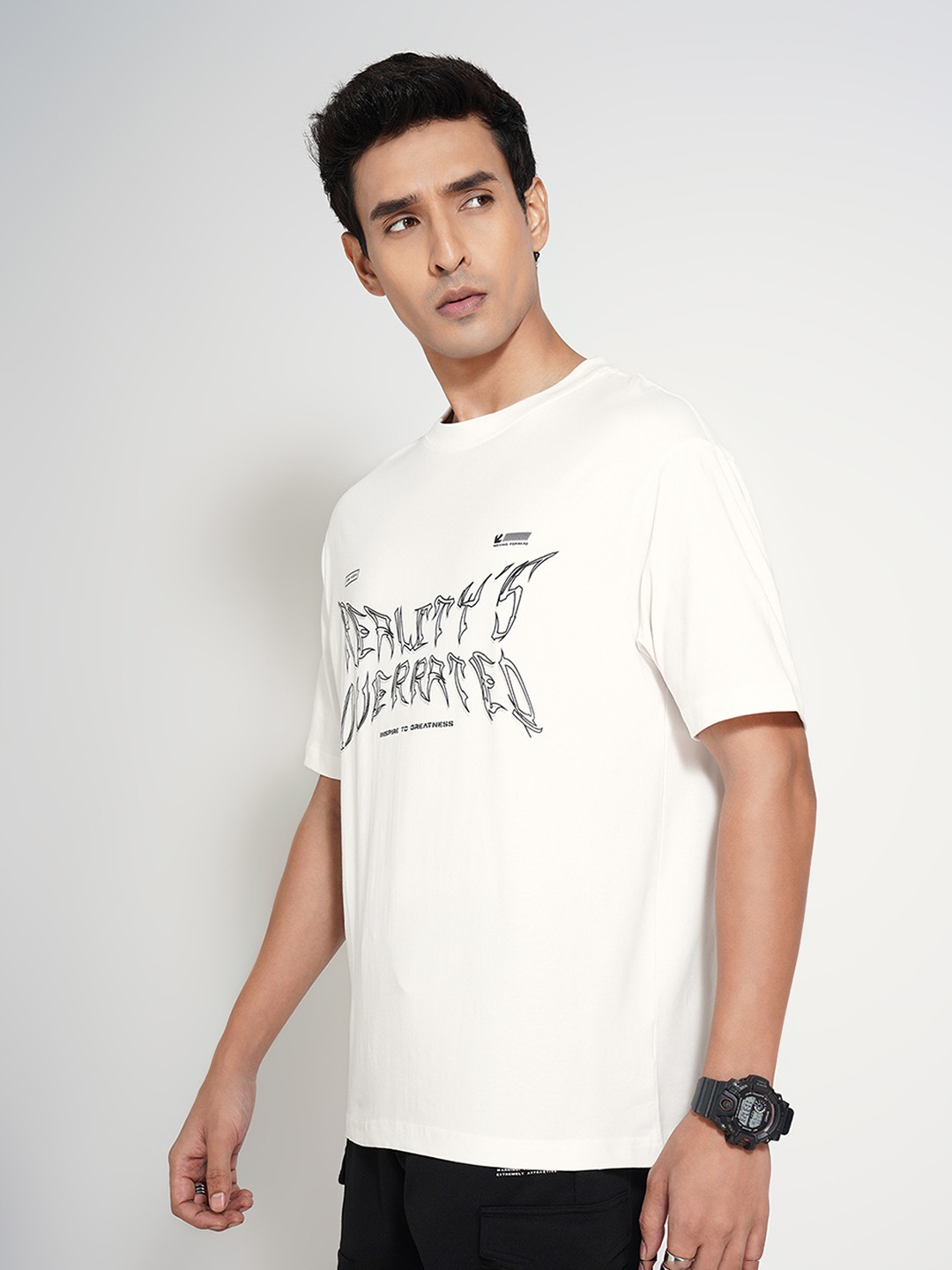 Home/T-Shirts/Street 808 by Pantaloons/off-white typographic print oversized t-shirt