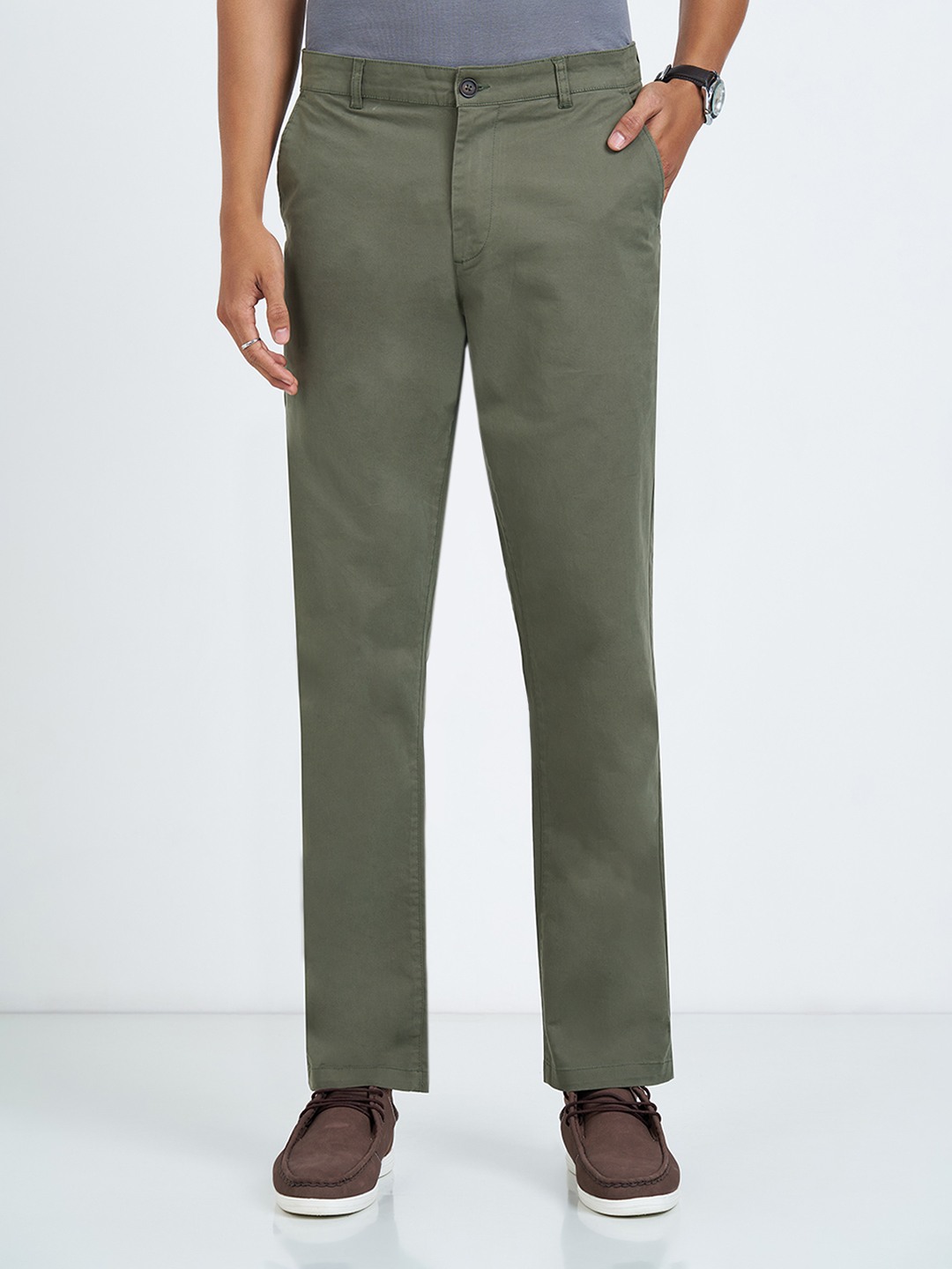 Clean lines meet everyday versatility in this sharp chino silhouette. Cut in a slim fit with a structured waistband, button closure, multiple pockets, and a tapered leg for a refined profile. Finished in a smooth woven fabric that balances comfort with structure, making it easy to dress up or pare back.