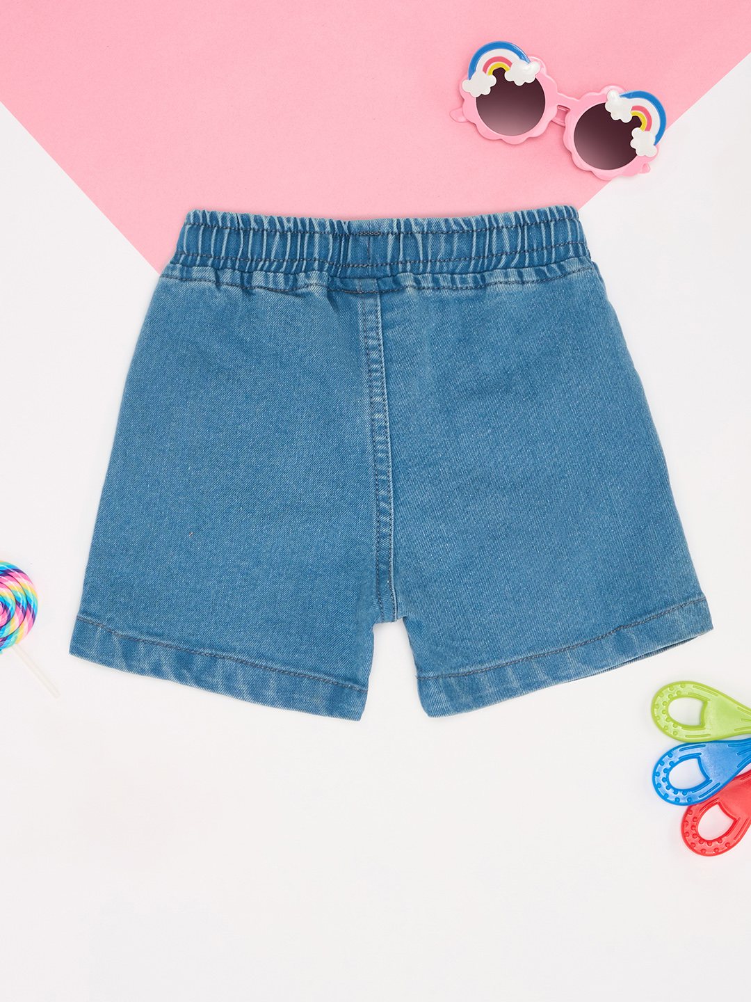 A fun staple with a refreshed look. The shorts have an elasticated waistband, multiple pockets and a stone-washed body with cute elements. Crafted in a premium denim fabric that provides remarkable breathability and ease of movement.