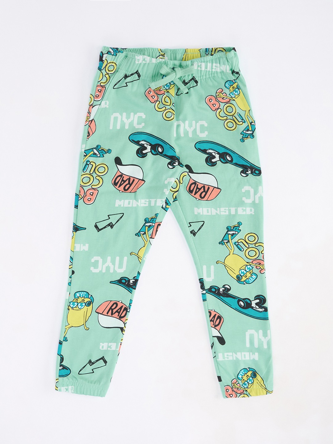 Let your young one enjoy the unmatched comfort offered by these joggers. This pair has an elasticated waistband, side pockets and an easy, tapered body with a colourful print. Constructed in a breathable knit fabric with a remarkable wearing experience.