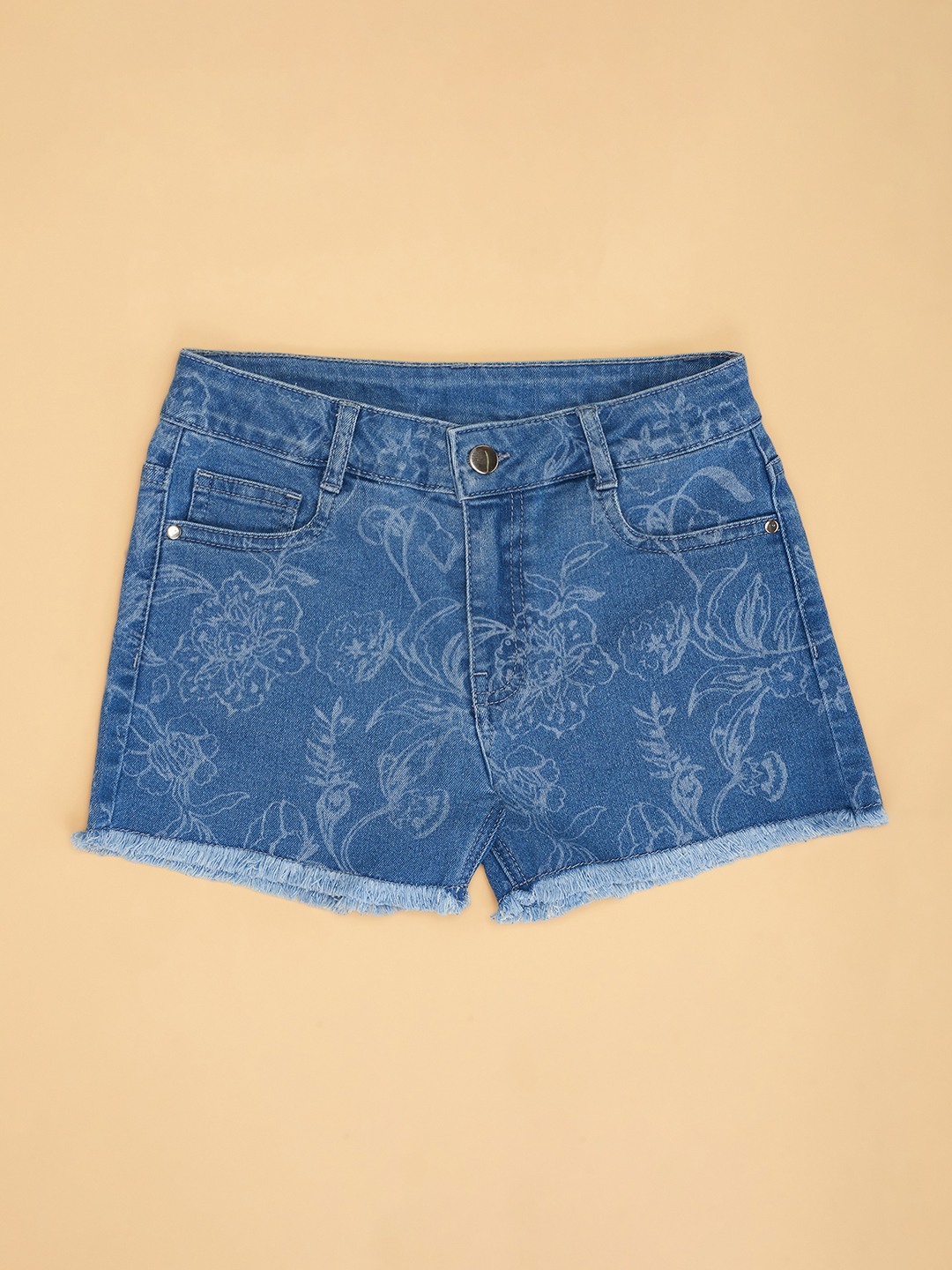 Let your young one charm everyone in these shorts. It features a front opening, multiple pockets, frayed hemline and a floral print. The shorts are made from denim fabric to keep your kid fresh and comfortable.