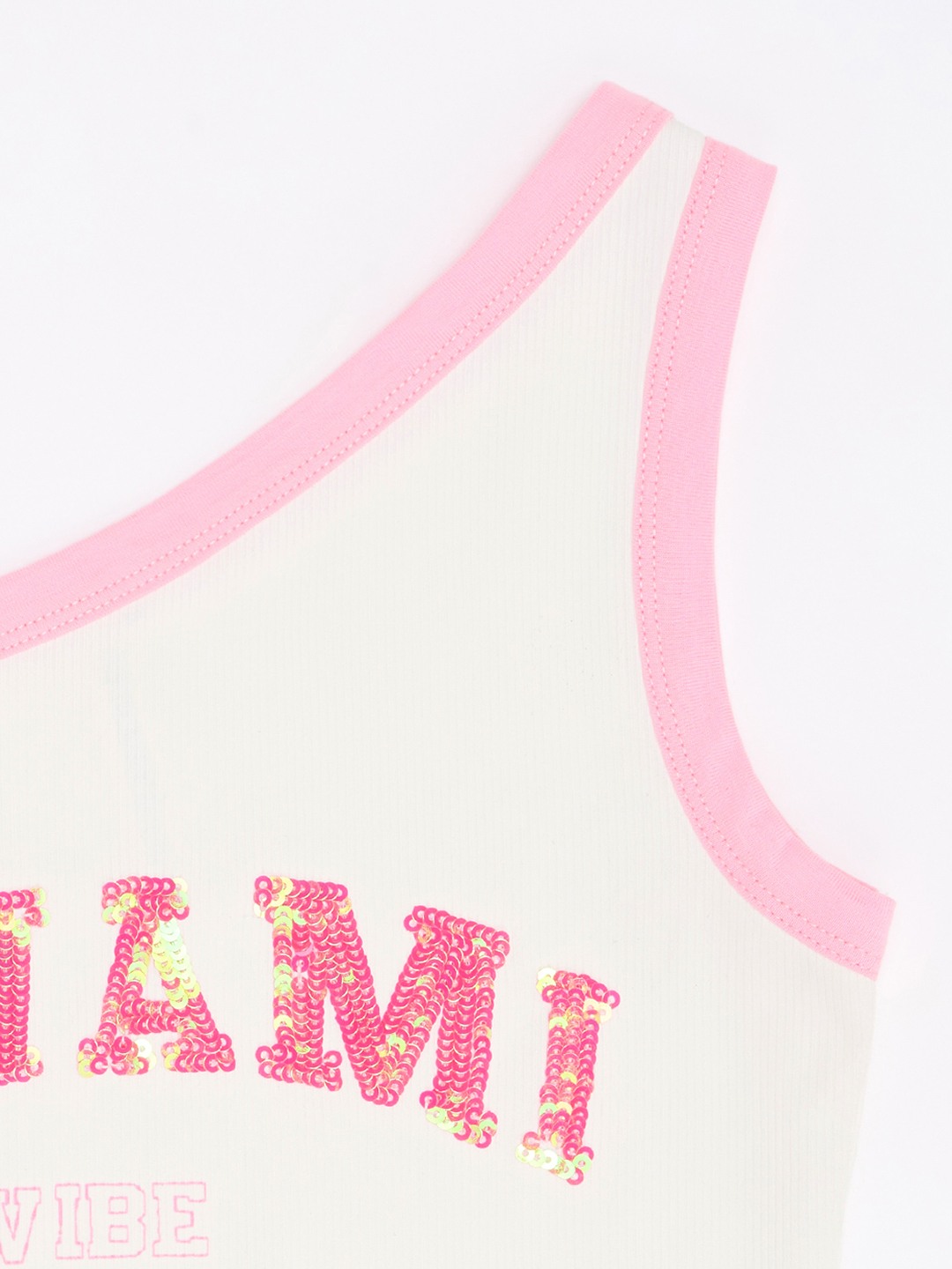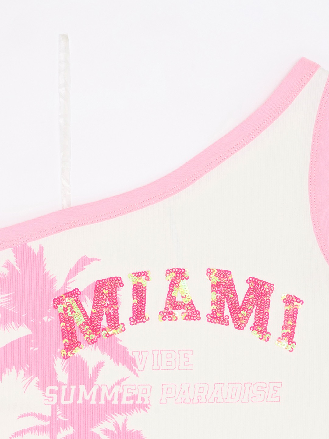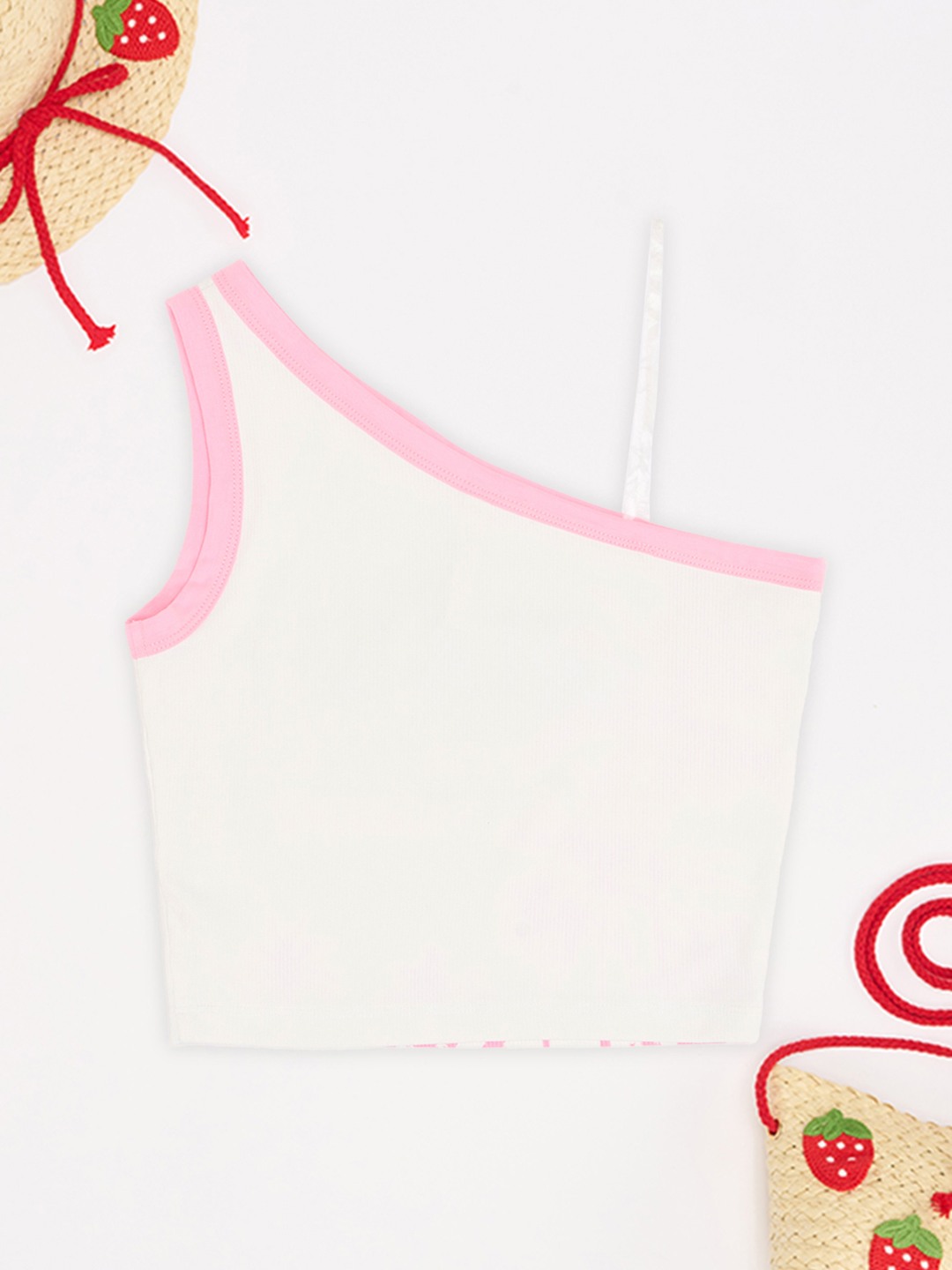 Add an element of style to your kid's look with this top. The design has a one-shoulder neckline and a trim, sleeveless body with summer graphics. Put together in a premium fabric to maintain a perfect balance of comfort and ease.
