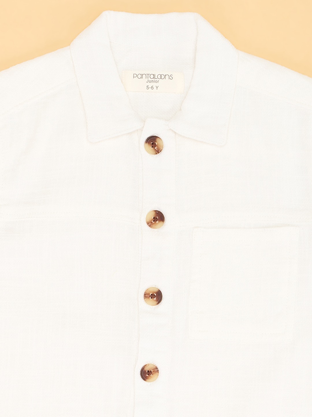 Spruce up your child's appearance with this dashing jacket. This style has a convertible collar with a button placket, cuffed full sleeves, multiple pockets and a clean, solid body. Constructed from high-quality fabric that will elevate your kid's look on any occasion.