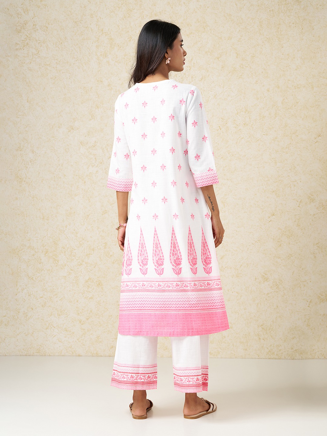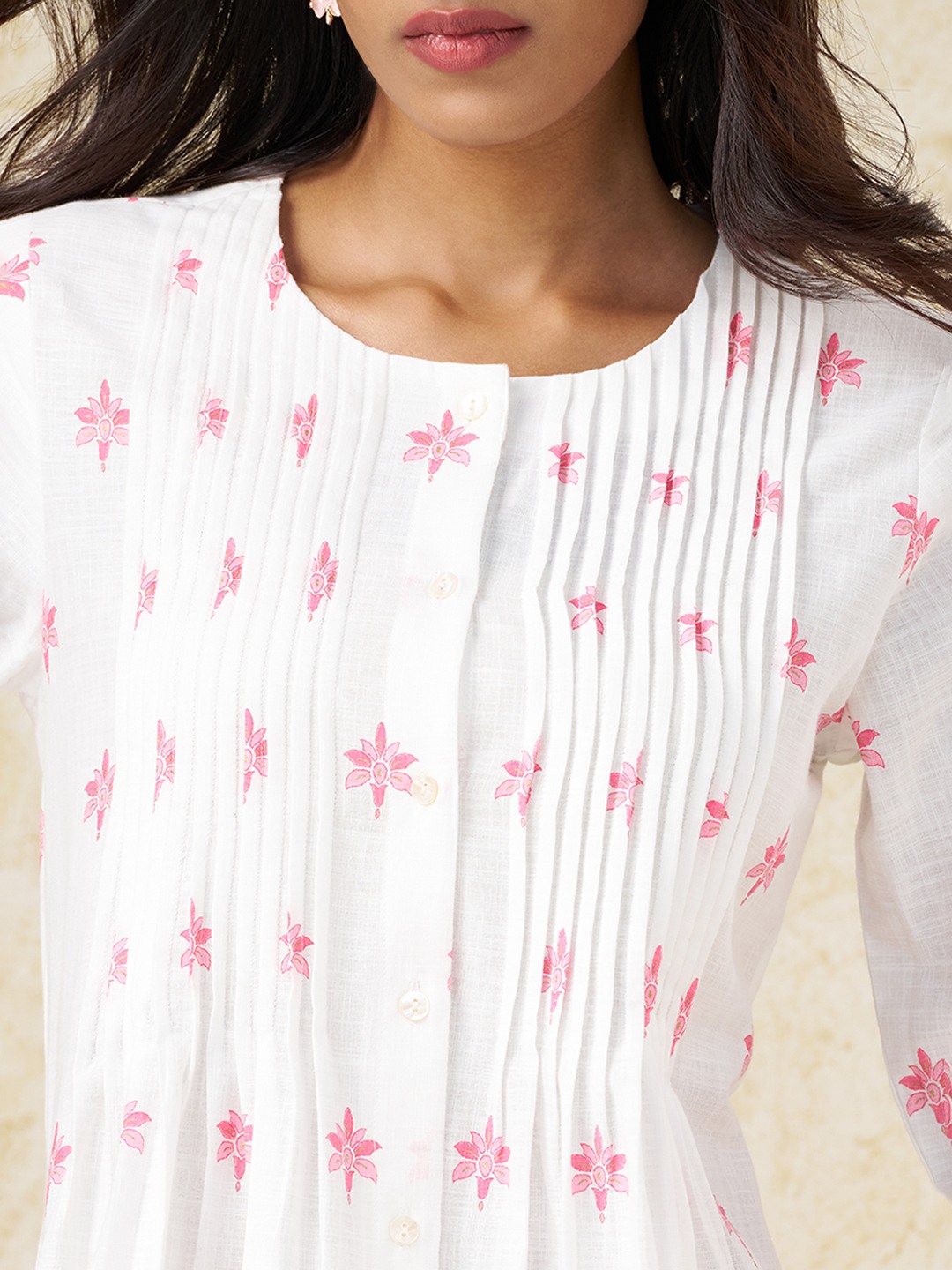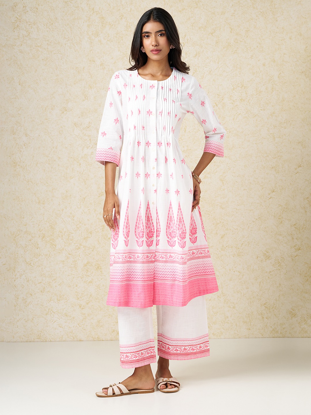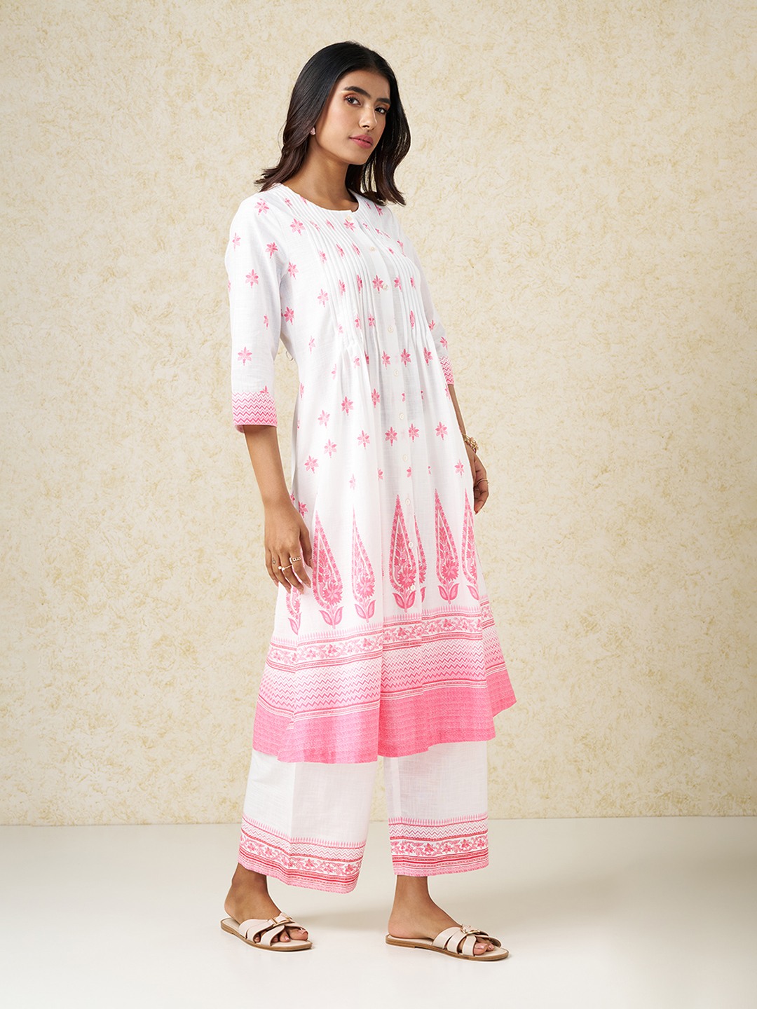Home/Kurtas/RANGMANCH by Pantaloons/pink floral print pintuck kurta