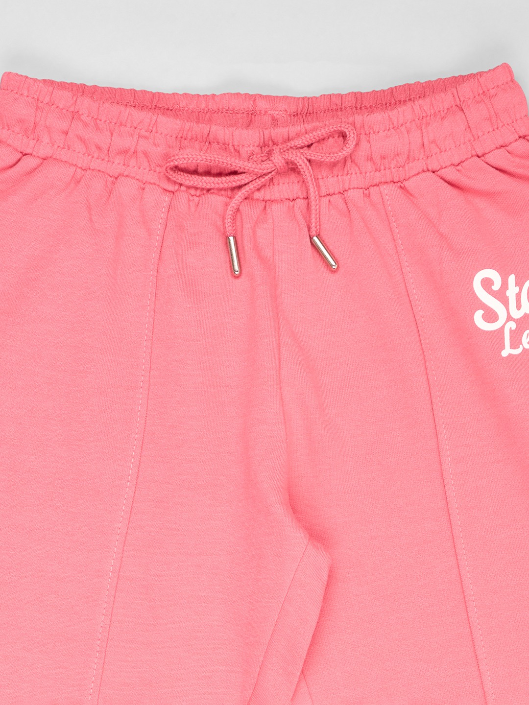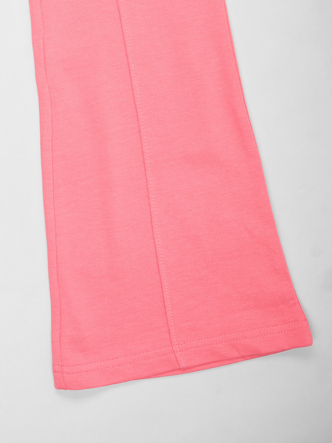 Playful retro energy with a sporty twist. Designed with an elasticated waistband, adjustable drawstring, vertical seam detailing and a flared bell-bottom silhouette, finished with a subtle slogan print at the hip. Made from soft stretch jersey fabric for easy movement.