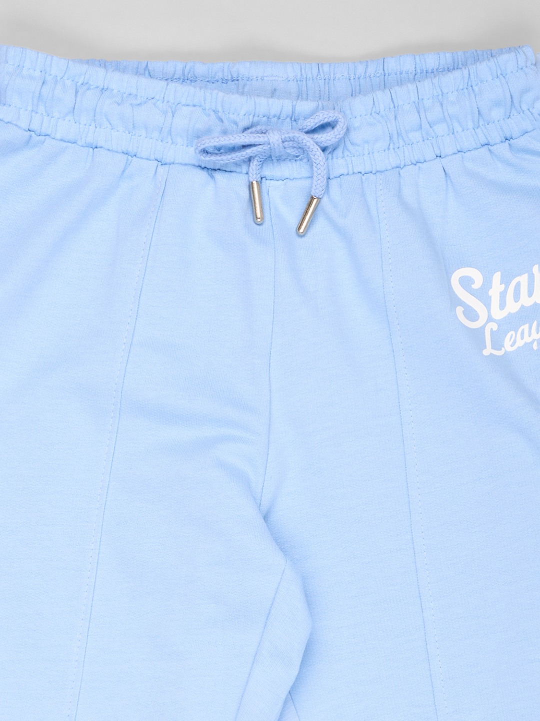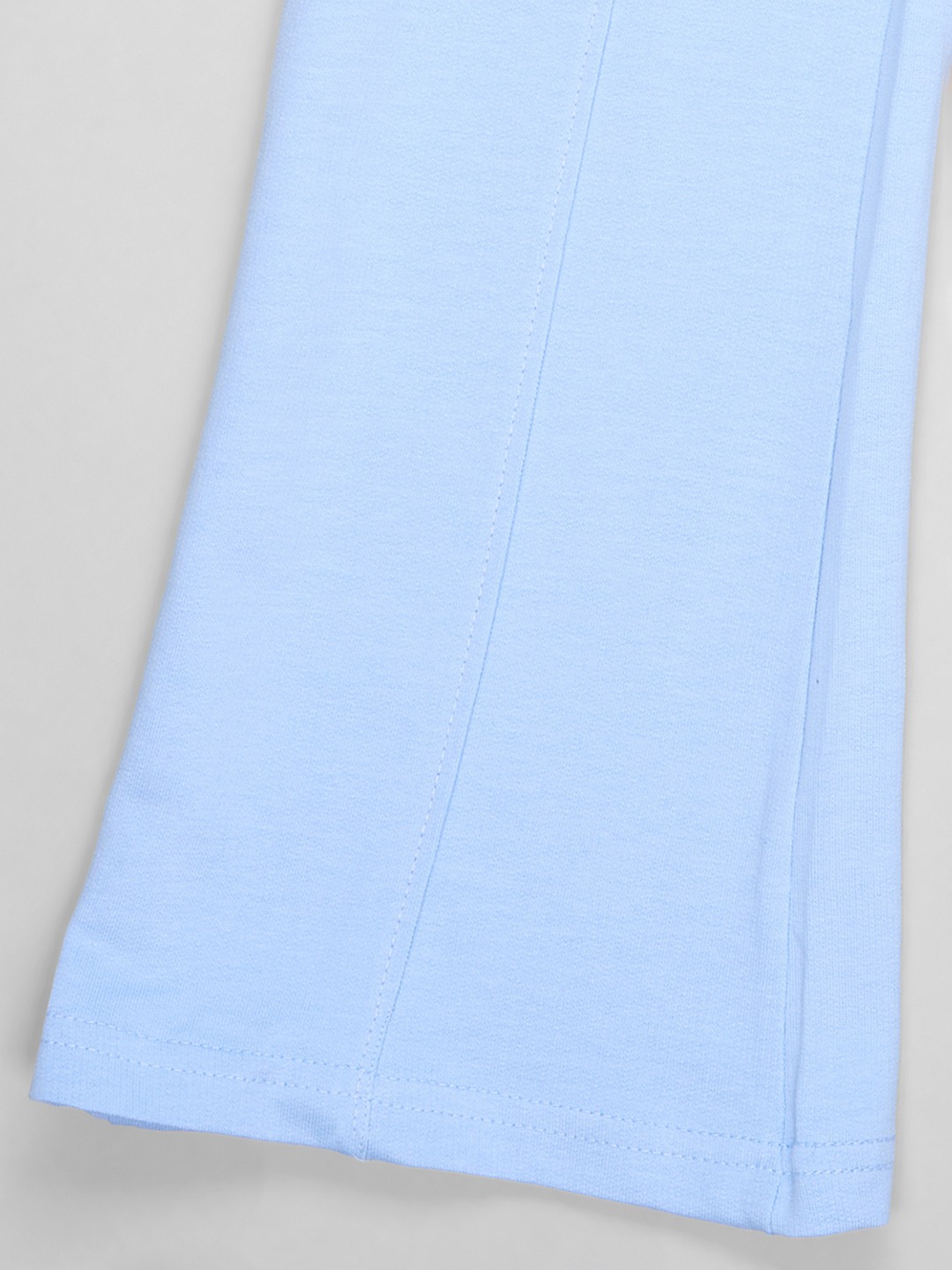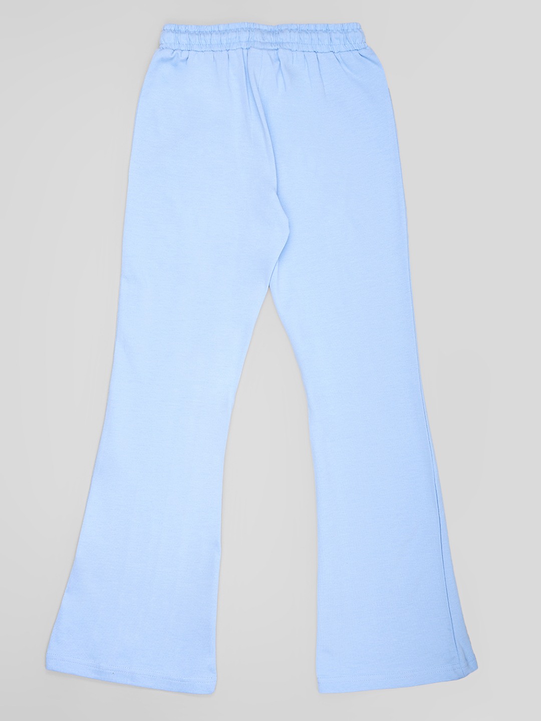 Playful retro energy with a sporty twist. Designed with an elasticated waistband, adjustable drawstring, vertical seam detailing and a flared bell-bottom silhouette, finished with a subtle slogan print at the hip. Made from soft stretch jersey fabric for easy movement.