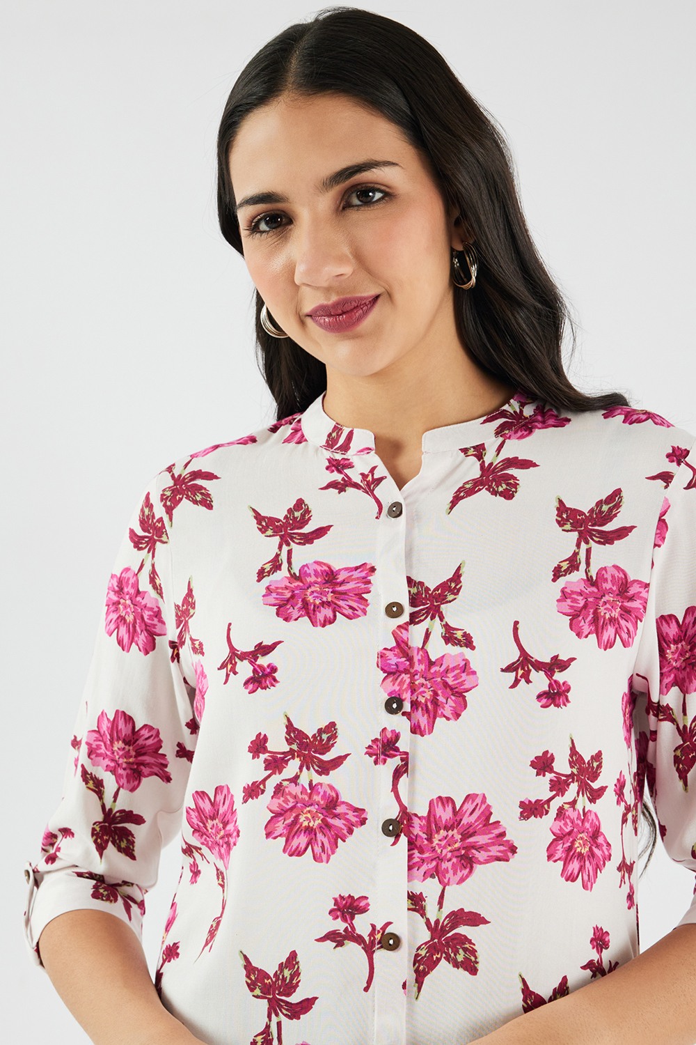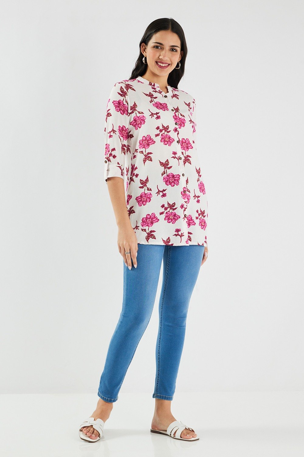 Home/Tunics/Haute Curry/printed rayon collared women's tunic