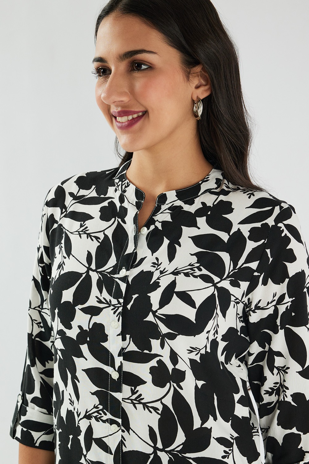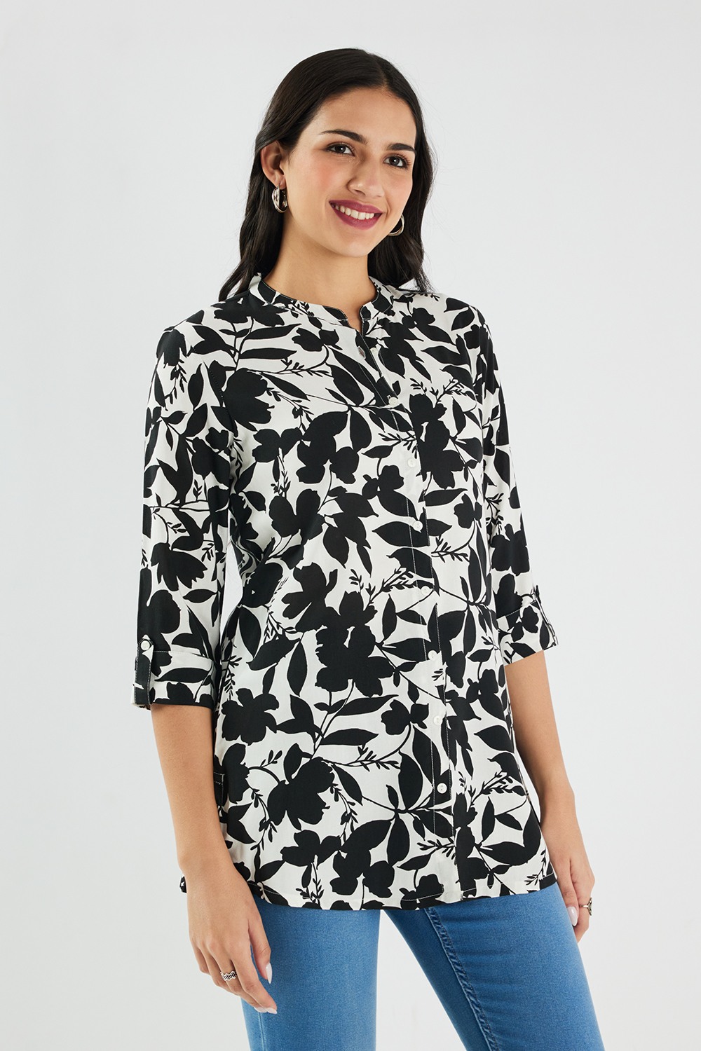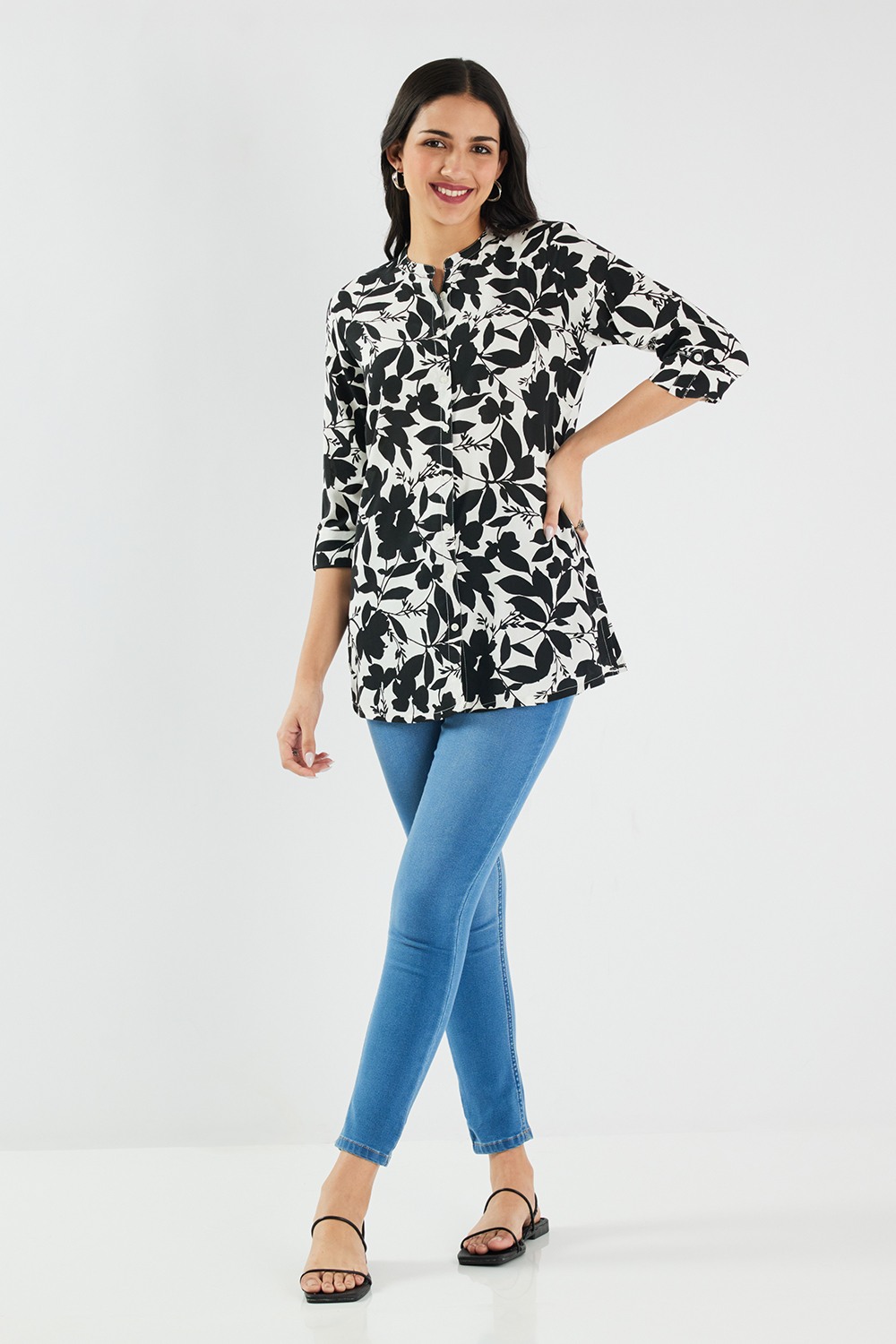 Home/Tunics/Haute Curry/printed rayon collared women's tunic