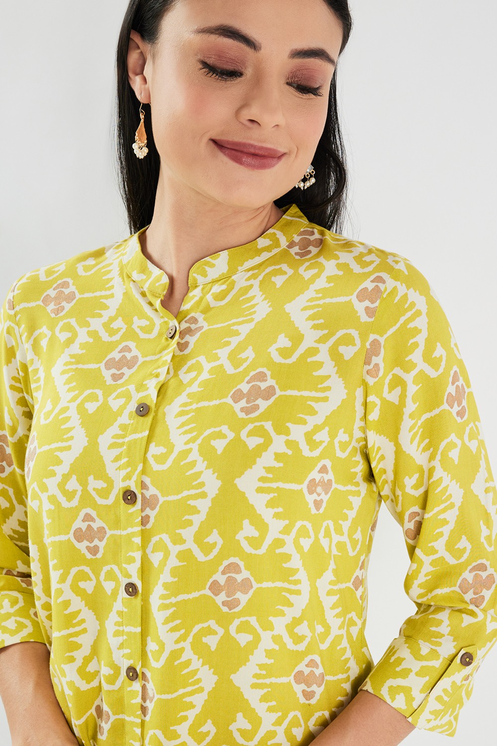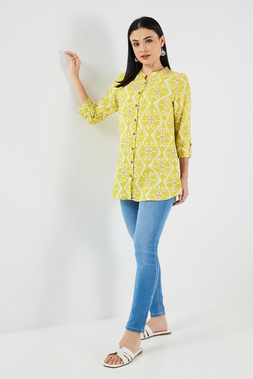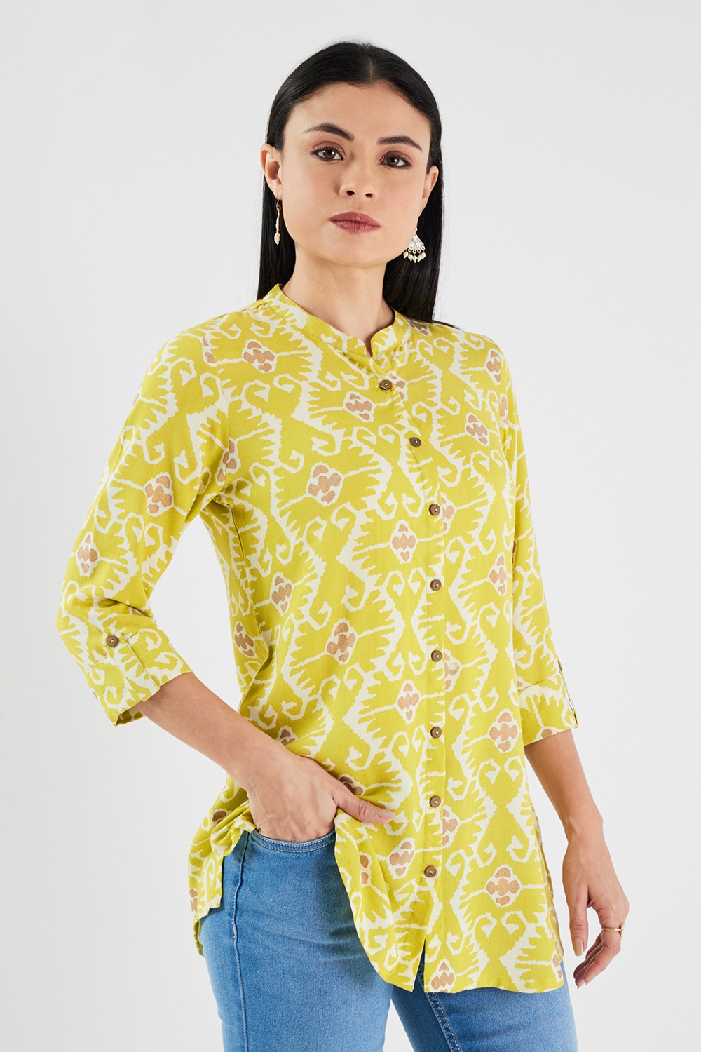 Home/Tunics/Haute Curry/printed rayon collared women's tunic