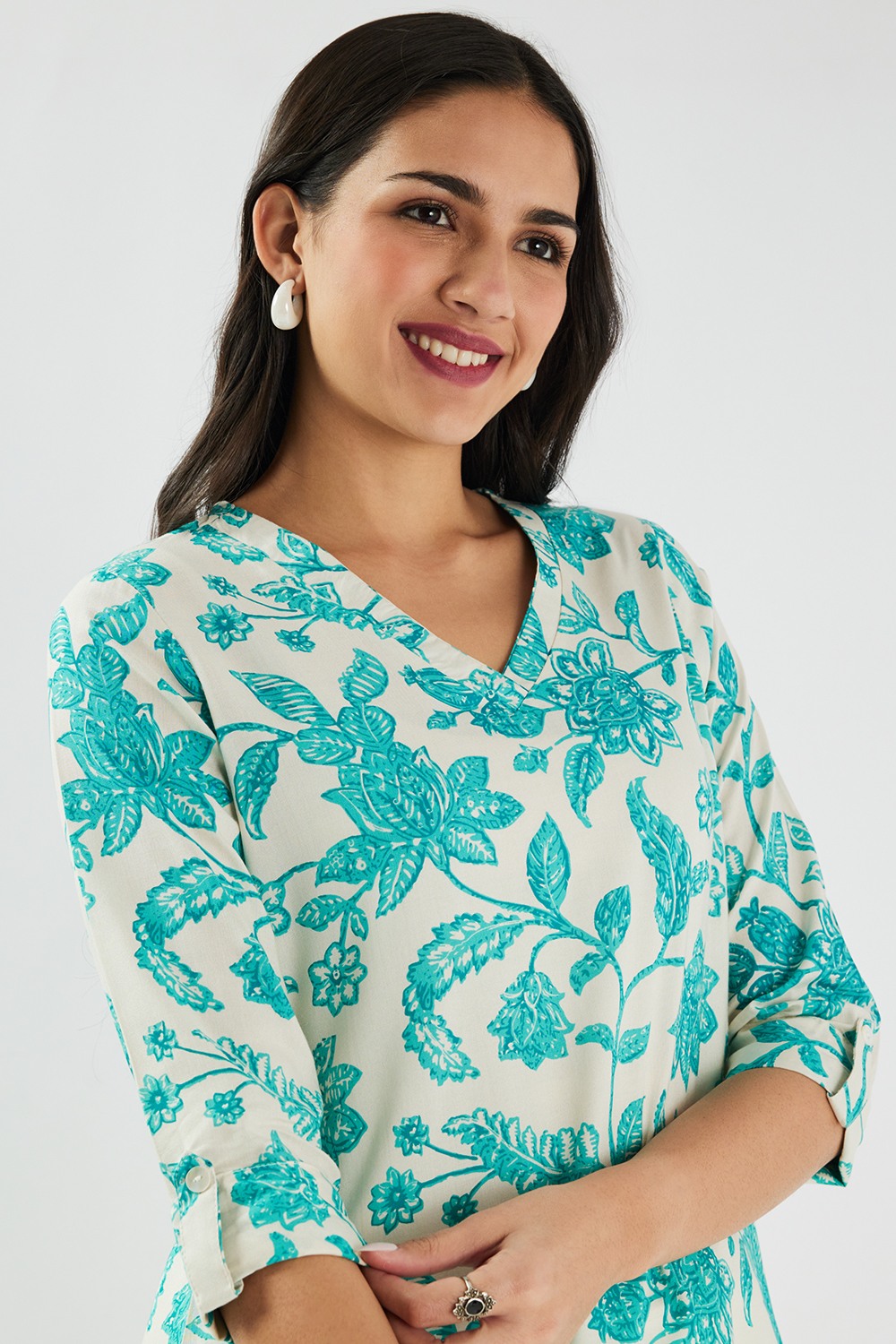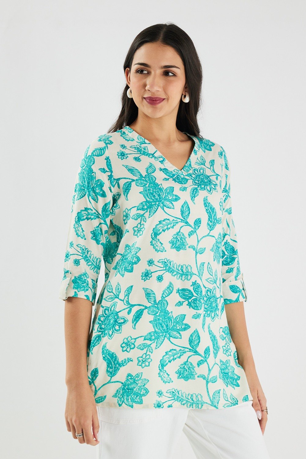 Home/Tunics/Haute Curry/printed rayon v-neck women's tunic